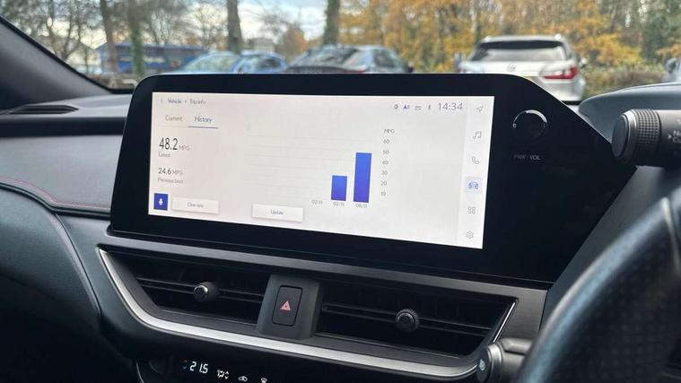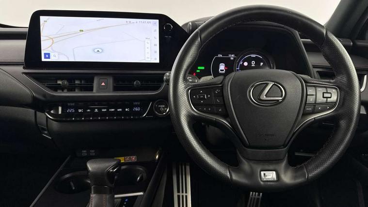 4 driving modes EV/Eco/Normal/Sport, 7" Lexus media display, 8" LFA inspired TFT meters with movable meter ring, Analogue clock with GPS function, Apple car play/Android Auto, Compatible mobile phone bluetooth with audio streaming, E-call, Electric power steering (EPS) with speed sensitive features, Front and rear parking sensor with intelligent clearance sonar, Lane change flasher function, Lexus link connected services, Lexus navigation system, Lexus safety systems + includes dynamic radar cruise control, pre collision system day and night, lane tracing assist, road sign assist, Push button start, Remote touch interface, Reversing camera with back guide lines, Trip computer, F Sport suspension tuning and rear performance dampers, Vehicle Dynamics Integrated Management (VDIM), Vehicle Stability Control (VSC), 2 front USB and 2 rear USB charging points, 6 speakers, AM/FM and DAB radio, AUX socket with VTR compatibility, CD player, Acoustic windscreen, Aero stabilising arch mouldings, Aero stabilising rear lights, Aero ventilated wheels, Aluminium roof rails, Auto dimming interior rear view mirror, Bi-LED (low and high beam) headlights with Auto High Beam (AHB), Black roof drip mouldings, Body adhesive, laser screw welding and laser brazed roof structure, Body coloured bumpers, Colour coded wheel arches, Electric adjustable/heated door mirrors, F SPORT exterior styling consists of black Mesh front grille, enhanced side rockers, metallic coated front bumper and F SPORT badging, Front and rear one touch power windows, with anti-jam protection, Headlight cleaners, LED cornering headlights, LED daytime running lights, LED front and rear fog lights, LED tail lights, LED third brake light, Privacy glass, rear doors and tailgate, Rain sensor windscreen wipers, Rear side wing doors, Rear wiper, Shark fin roof aerial, Single hidden exhaust pipe, Towing preparation, Variable front intermittent wipers, 12V accessory port centre console and luggage compartment, 2 cup holders in the front and rear centre console, 2 way electrical lumbar adjustment for driver, 2 x folding shopping bag hooks in boot, 2 x sun visors with vanity mirror and lamp, 3 seat bench in 2nd row, 4 x tie down hooks in the boot, 5 headrests, 60/40 split folding rear seat, 8 way driver/passenger electrically adjustable front seats, Active sound control, Card holder installed in driver and passengers sun visors, Centre armrest with storage, Driver and passenger door pocket, Dual zone electronic climate control + Nano-E humidity sensor, F Sport aluminium sports pedals, F SPORT dimpled leather gear lever, F SPORT front seat headrest adjustable forwards and backwards, F Sport interior styling, F Sport leather steering wheel with paddle shifts, Fabric/Tahara leather upholstery, Glovebox, Heated steering wheel, Illuminated entry system, LED interior illumination, Map pockets in the rear of passenger's front seat, Rear air vents with 2 USB chargers, Rear armrest with 2 cupholders, Single front passenger seat, Storage tray under audio panel, Textile carpet mats, Tilt/reach adjustable steering column, Under deck storage, Under desk side storage, 2 x Isofix child rear seat restraints, 3x3 point rear seatbelts, Anti-lock braking system (ABS), BAS (Brake Assist System), Driver and front passenger 2 stage airbag, Driver and front passenger knee airbag, Driver/front passenger side airbags, EBD - Electronic brakeforce distribution, ECB (Electronically Controlled Brake System), Electric child locks, Electric parking brake, Front adjustable seatbelt anchor points, Front and rear curtain shield airbags, Front outer seatbelt+pre-tensioners, force limiter+tension reduction: 3-point with active safety link to PCS, Hill start assist control (HAC), Passenger airbag cut-off device, Rear outer seatbelt+pre-tensioners, force limiter+tension reduction: 3-point with active safety link to PCS, Centre belt w/o pre tensioner+force limiter, Secondary Collision Brake (SCB), TRC (Traction Control), Tyre pressure warning, 2 x remote key fobs, Anti theft system : Alarm instruction sensor, glass breakage sensor and engine immobiliser, Locking wheel nuts, Remote central door locking, Speed sensitive auto door locking, Two motion door lock with double lock, VIN Window etching, 18" F Sport alloy wheels with run flat tyres,