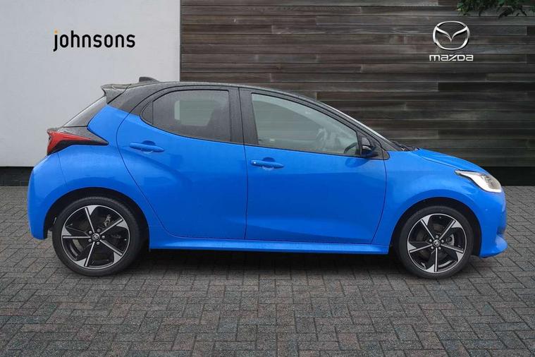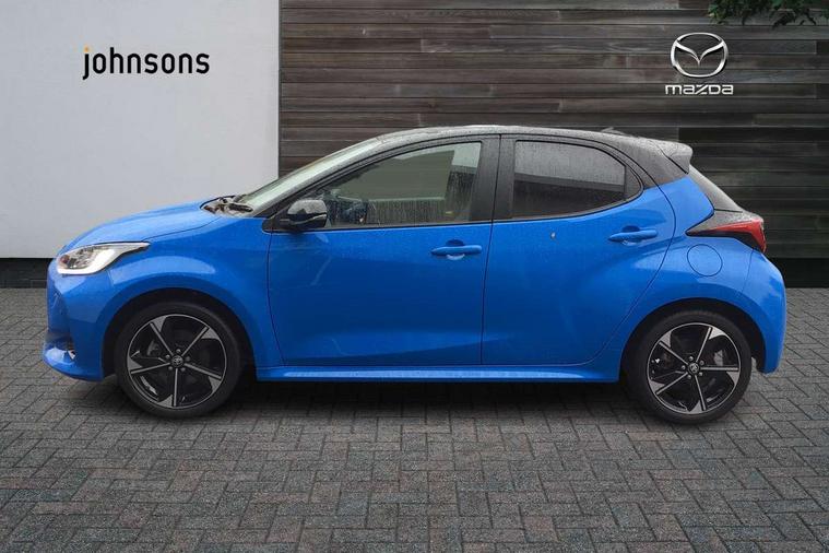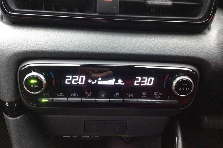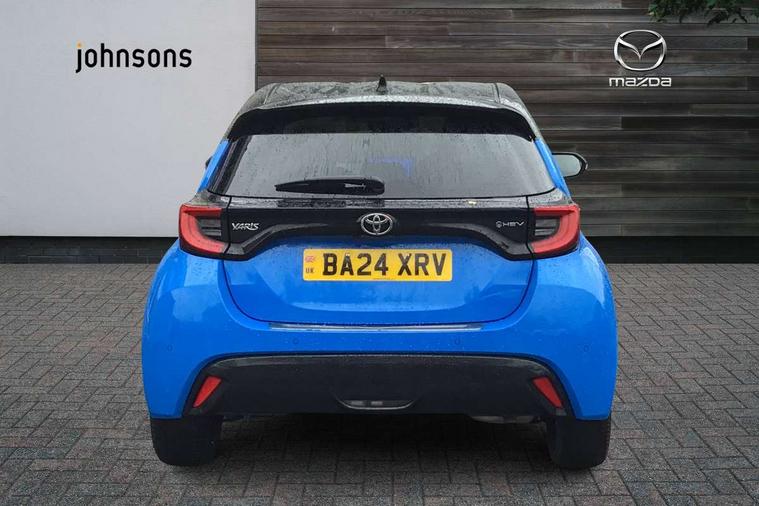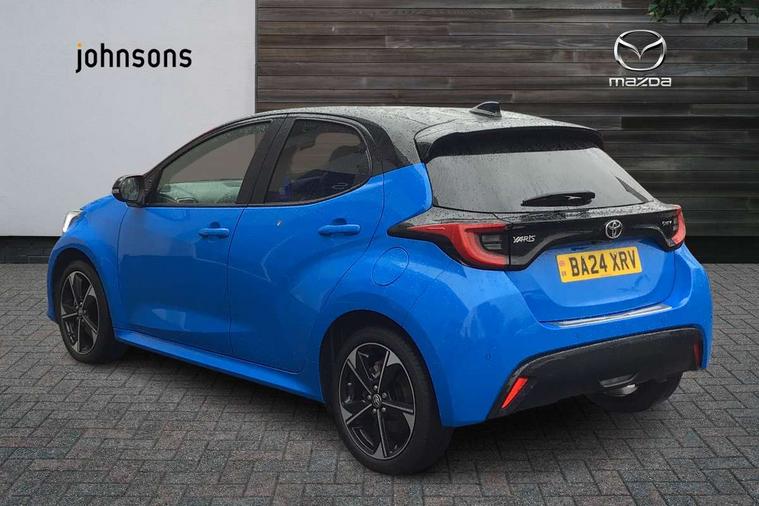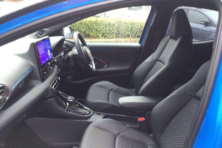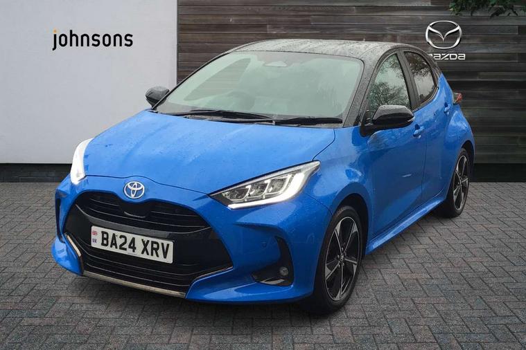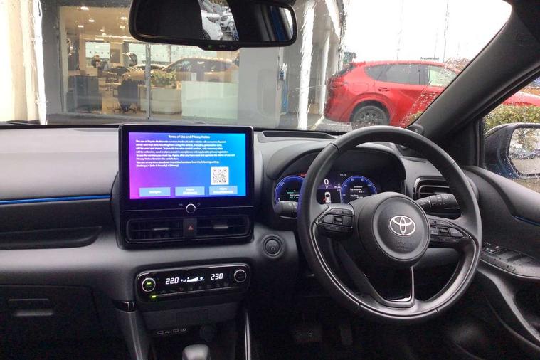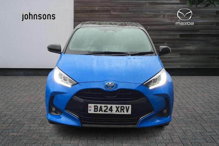 12.3" Digital Combimeter, Adaptive cruise control, Adjustable speed limit with speed warning, Bluetooth connectivity, Colour binocular inspired displays with digital speedometer, E-call, Electric power steering, Head up Display, Hybrid energy display, Multi information display switches on steering wheel, Reversing camera, Tailgate, Voice recognition, Wireless charger, Vehicle Stability Control (VSC), 10.5" Toyota smart connect multimedia with wireless smartphone integration incl apple car play and cloud Navigation, 6 speakers, 8 Speakers, JBL speaker system, Toyota Touch 3 system with DAB radio, USB connection, Acoustic windscreen glass, Auto windscreen wipers, Automatic headlights, Body coloured door mirrors, Dark chrome lower front grille, Electric adjustable heated door mirrors, Follow me home headlights, Front auto power windows with anti jam protection, Full LED rear lights, LED daytime running lights, LED front fog lights, LED front light guide, LED Headlights, LED High mounted stop lamp, LED Indicators, LED rear light guide, Manual headlight levelling, Painted chequered front grille with hot stamp in mesh design, Rain sensor, Rear auto power windows with anti jam protection, Rear privacy glass, Rear side wing doors, Rear spoiler, Rear wiper, Shark fin antenna, Turning signal integrated indicators in door mirrors, Variable front intermittent wipers, 3 adjustable rear headrests, 3 seat bench in 2nd row, 3 spoke leather steering wheel, 60/40 split folding rear seat, Active headrests, Adjustable boot height, Black roof lining, Coat hooks in rear grab handles, Cup holders (2 front & door), Data Communication Module (DCM) connected services, Dual zone automatic air conditioning, Front armrest, Front sport seats, Glovebox, Height adjustable driver's seat, Height adjustable passenger seat, Isofix seat fixing, Leather gearshift, Map pockets on the backs of the front seats, Nanoe-X air purifier, Partial leather upholstery, Pollen filter, Shopping bag hooks, Single front passenger seat, Tilt/telescopic steering column, Safety pack - Yaris, 3 point seatbelts on all rear seats, ABS+EBD+Brake assist, Electronic parking brake, Emergency brake light system (EBS), Front passenger airbag on/off switch, Front seatbelt reminder, Hill start assist control (HAC), Rear child proof door locks, Rear seat belt reminder, Supplemental Restraint System (SRS) 8 airbags: Driver & passenger's airbags, dual side curtain airbags, side impact airbags, front centre airbag, Toyota Safety Sense 3 with over the air updates, Tyre pressure warning system, 2x Master key, Alarm/immobiliser, Keyless smart entry with push button start, Remote AC via MyT, Remote locking via MyT, Remote powered central double locking doors, Smart digital key, Piano black interior trim, Soft touch instrument panel, 17" Black Machined-face, 5 double spoke alloys wheels, Space saver spare wheel,