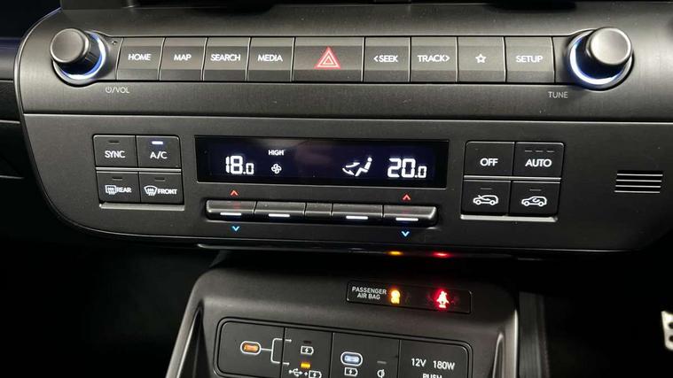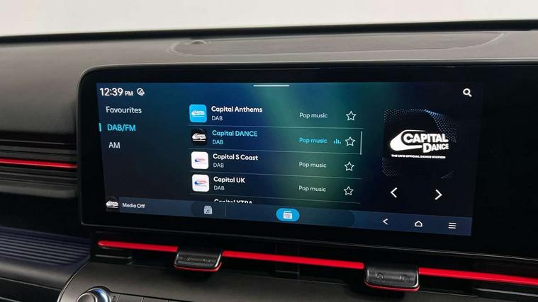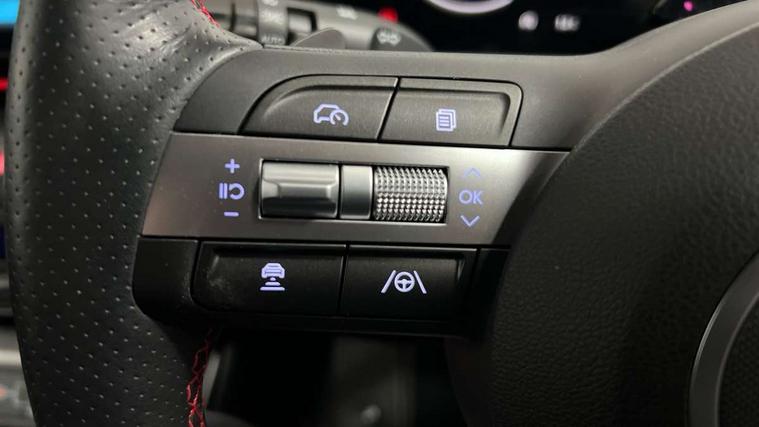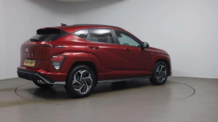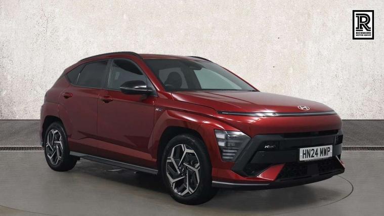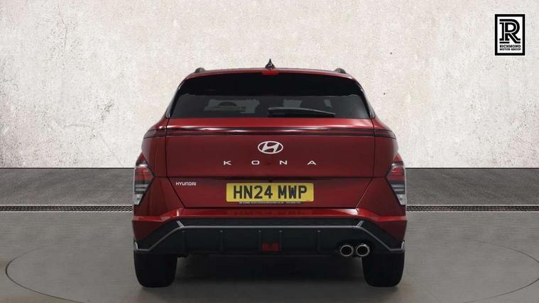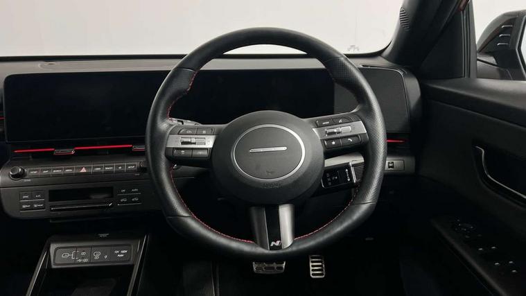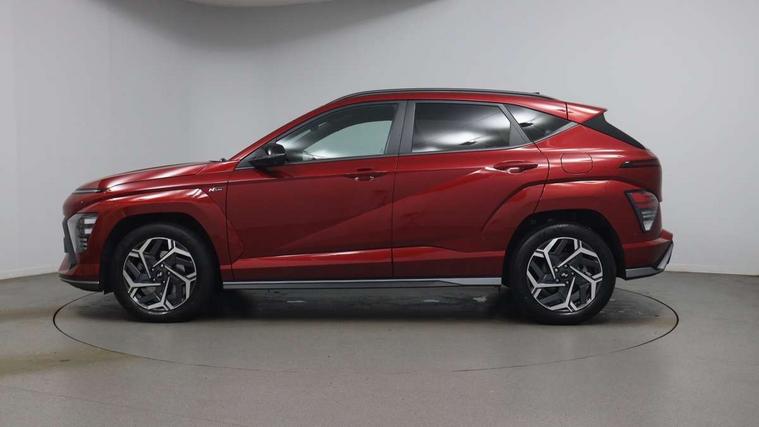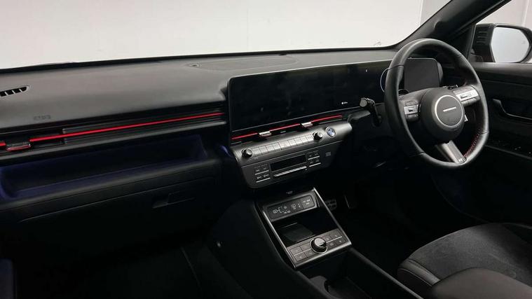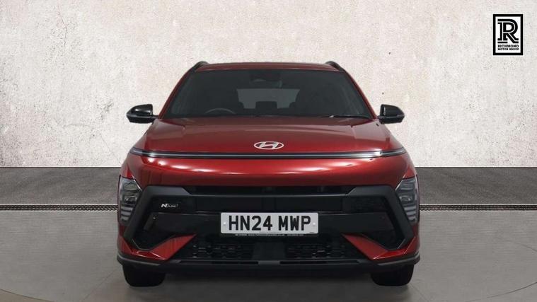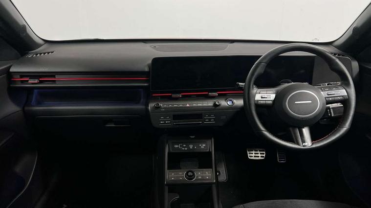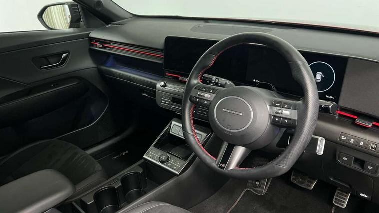 12.3" touchscreen centre console display satellite navigation with bluelink, live services and mapcare, Blind spot collision avoidance assist, Blind spot view monitor, Bluetooth connectivity with voice recognition, Digital clock, Driver status monitor (DSM), Driver supervision instrument cluster with 12.3" LCD display, eCall emergency call system, Feature on demand - Enabled, Forward collision avoidance assist (FCA 1.5) - Car, pededstrian, cycle and junction turning, Front parking sensor, HDA - Highway Drive Assist Level 1.5, Height adjustable power tailgate, Intelligent speed limit assist, Lane follow assist, Lane keep assist, Leading vehicle departure alert (LVDA), Parking Collision Avoidance Assist-Reverse (PCA-R), Parking distance warning - side, Parking system with rear camera and guidance system, PAS, Rear cross traffic collision avoidance (RCCA), Rear parking sensor, Roadside assistance, Safe exit warning (SEW), Smart cruise control with stop and go functionality, Surround view monitor, Windscreen washer fluid sensor and warning indicator, Wireless phone charging pad, Wireless Smartphone Integration includes Apple CarPlay and Android auto, 2 front USB C and 2 rear USB C charging points, Bose Premium Audio system with 7 premium speakers + subwoofer, DAB Digital radio, Steering wheel audio, phone and cruise controls, Auto dimming rear view mirror, Automatic headlights with dusk sensor, Automatic windscreen wipers with rain sensor, Body colour bumpers, Body colour exterior door handles, Body coloured wheel arch inserts, Door mirror LED indicator lights, Electric front windows with anti-trap mechanism and one touch control, Electric rear windows, Electrically adjustable and heated door mirrors, Gloss black door mirrors, Horizon centre LED DRL, LED projector headlights, LED upper and lower rear lights, Power folding door mirrors, Privacy glass - Rear windows and tailgate, Rear roof spoiler with integrated LED brake light, Rear side wing doors, Rear wiper, Roof rails, Solar glass with front door glass and windscreen, Tinted glass in front and rear doors, Windscreen auto defog function, 12V power outlet in front console, 2 zone climate control, 3 seat bench in 2nd row, 40/20/40 split folding rear seat, Adjustable head restraints, Aluminium pedals, Ambient lighting, Driver and passenger front seat pockets, Driver's seat electric adjustments, Driver's seat lumbar support, Driver/passenger sunvisors and illuminated vanity mirrors, Floor mats, Front passenger's seat electric adjustments, Heated front seats, Heated rear seats, Heated steering wheel, Height/reach adjustable steering column, Isofix rear child seat fastenings, Leather wrapped steering wheel, LED centre interior light, LED front interior light, Luggage compartment LED lighting, Luggage net, Luggage shelf, Metal paint effect interior door handles, N Line Alcantara/leather upholstery, Parcel shelf, Rear centre armrest, Rear centre console with air vents, Shift by wire SBW, Single front passenger seat, Ventilated front seats, Vertical adjustment rear head restraints, N Line exterior design pack - Kona, Trailer wiring package - Kona, Airbag - front, front side, curtain and centre front airbag, Anti-lock brake system (ABS), Childproof rear door locks, Downhill brake control, EBD + Brake Assist, Electric parking brake, Electronic stability control, Fasten seatbelt reminder, Fixed 3 point for second row centre passenger seatbelt, Front seatbelt pretensioners, Height adjustable front seatbelts, Hill start assist control (HAC), Passenger airbag deactivate switch, Rear seat alert, Traction control, Tyre pressure monitoring system, Alarm/immobiliser, Deadlocks, Folding key, Locking wheel nuts, Remote central locking, Smart key with keyless entry and engine start/stop button, Five year annual vehicle health checks, Temporary mobility kit (TMK),