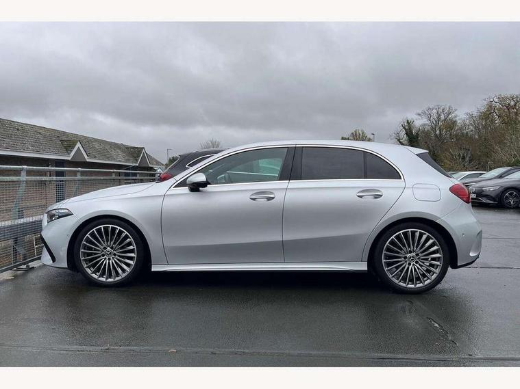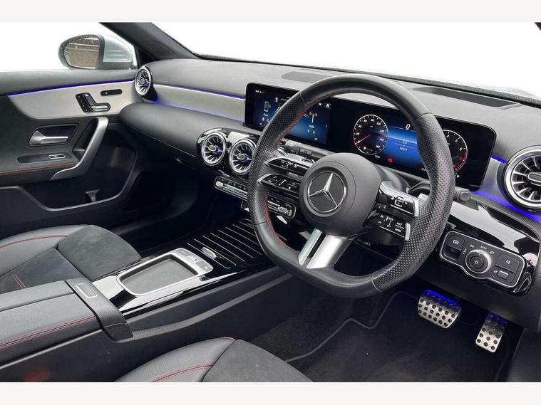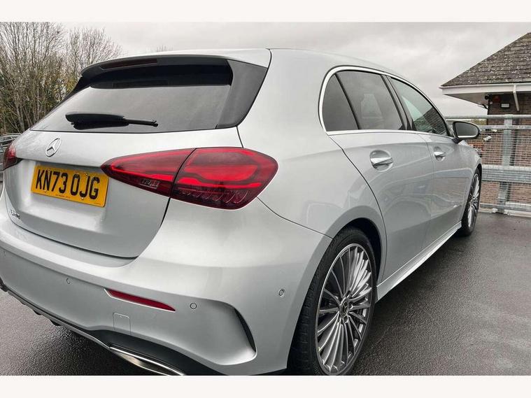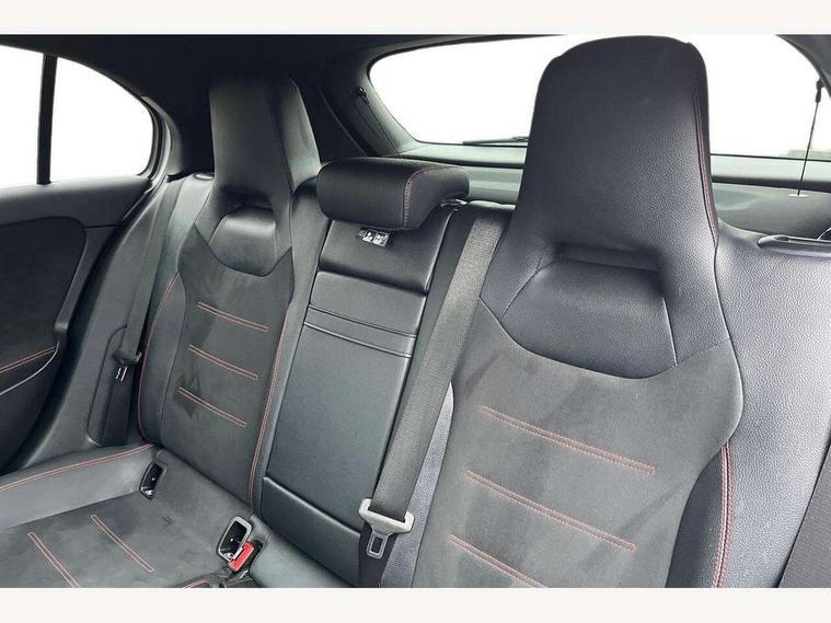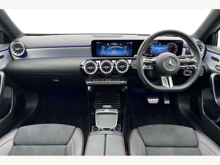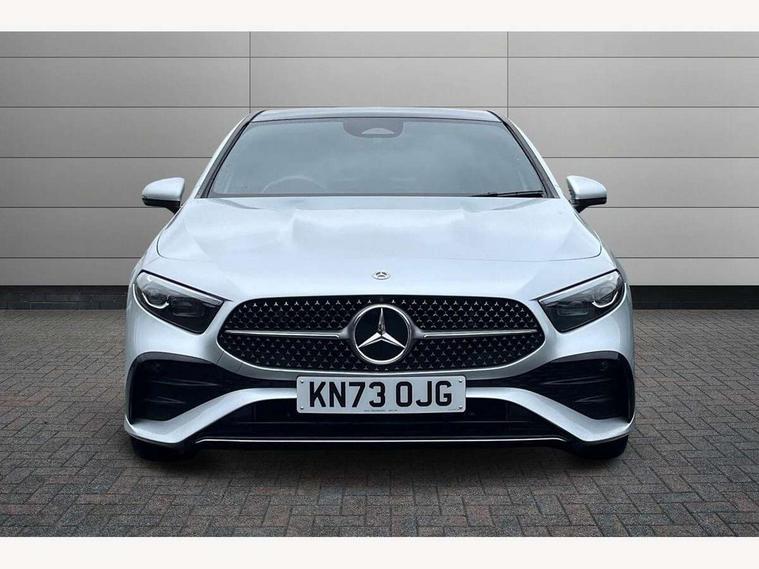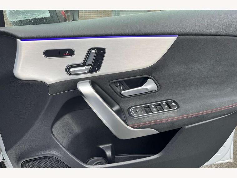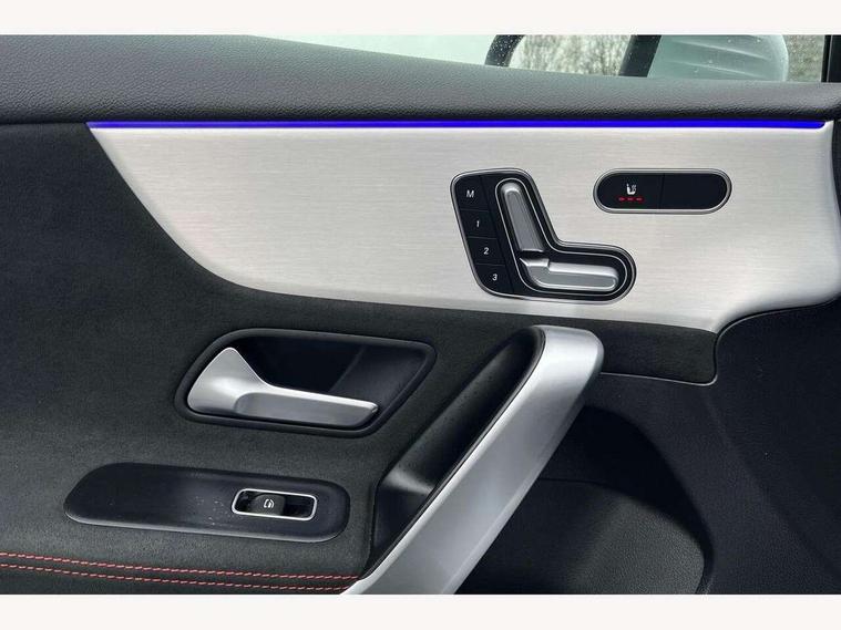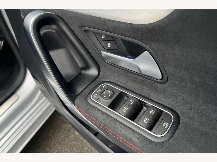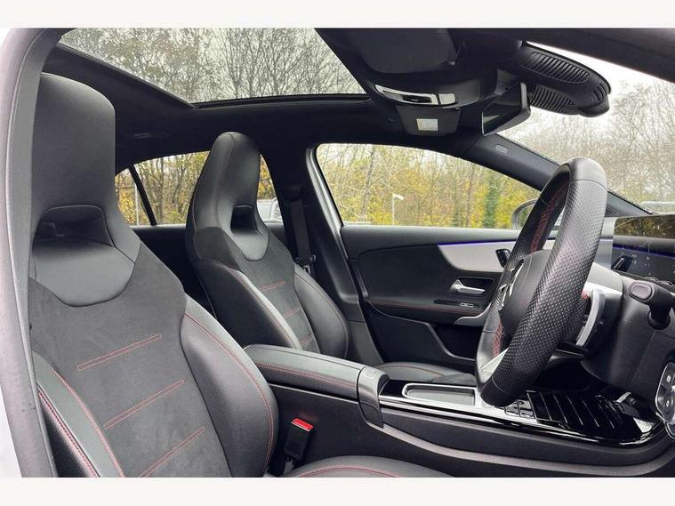 10.25 inch touchscreen central media display, 10.25" Digital instrument cluster display screen, Attention assist, Brake pad wear indicator warning light, Car wash mode, Cruise control + speed limiter, Direct steering, Direction indicators with lane change function, Dual bluetooth interfaces, DYNAMIC SELECT with a choice of driving modes (ECO, Comfort, Sport and Individual), Easy pack tailgate hands-free access, ECO start/stop function, Engine start/stop button, Fluid level warning indicator for fuel, oil, coolant and washer fluid, Hard-disk navigation, Head up Display, Hey Mercedes Voice activation, Lamp failure indicator, MBUX augmented reality for navigation, MBUX Interior assistant, Mercedes me connect including emergency call system, accident recovery, breakdown management and maintenance, Mercedes me remote services, Outside temperature gauge, Owners manual in English, Pre-installation of private car share, Preinstallation for Mercedes Benz link, Remote boot closing, Service indicator (ASSYST), Smartphone integration with Apple CarPlay and Android auto, Speed sensitive power steering, Trip computer in multifunction display with current consumption indicator, Wireless charging, Lowered comfort suspension, DAB Digital radio, MBUX multimedia system, Mercedes Benz advanced sound system (225 W) with 10 speakers, 1 central speaker, speakers on doors, a tweeter on door, one sub woofer + boost amplifier, 4 Electric Front and Rear windows, Adaptive brake lights, AMG body styling - AMG front apron with front splitter and AMG rear apron and visible exhaust tailpipe trim elements, Body colour bumpers, Body colour door handles with chrome inserts, Body colour side skirt, Body coloured door mirrors, Chrome beltline strips, Diamond radiator grille with pins in fine star pattern, Electric adjustable and heated door mirrors with integrated LED side indicators, Exhaust system with 2 visible tailpipe trim elements and rear apron, Headlamp assist automatic headlamp activation, Heat insulating dark tinted rear and rear side windows, Heated glass rear windscreen + timer control, LED daytime running lights, LED High level third brake light, LED tail lamp, Multibeam LED headlamps with adaptive highbeam assist and cornering function, Panoramic sliding sunroof, Privacy glass, Radio aerial, Rain sensing windscreen wipers with two sensitivity settings, Rear fog lights, Rear side wing doors, Rear windscreen wiper, Window line trim strip in chrome, 3 seat bench in 2nd row, 3 Spoke flat bottom leather multi function steering wheel with perforated leather in grip area, 40:20:40 split folding rear seats, AMG floor mats, Automatic child seat recognition sensor, Black air vents with surround in silver chrome, Black roof lining, Brushed stainless steel sports pedals with rubber studs, Electrically adjustable front memory seats including lumbar support and backrest inclination, Front centre armrest with stowage, Front seat backs luggage nets, Galvanished gear shift paddles on steering wheel, Heated front seats, Height/reach adjustable steering column, Illuminated Mercedes Benz lettering front door sills with changeable cover, Interior lighting - 64 colour Ambient lighting, Interior mirror with reading lamps in black and frameless, ISOFIX and top tether child seat fixing points in two outer rear seats, Rear armrest with 2 cupholders, Seat occupancy sensor for front passenger seat, Single front passenger seat, Sports seats with integrated headrests, Stowage compartment in centre console with retractable cover, Sunvisors with illuminated vanity mirrors, Twin front cupholders, Two zone thermotronic luxury automatic climate control, Light and sight pack - A Class, Mirror package - A Class, Parking pack with 360 degree camera - A Class, Seat comfort pack - A Class, USB pack plus - A Class, 3 rear 3 point seatbelts, ABS with Brake Assist, Active bonnet, Adaptive brake assist with hold function and hill start assist, Black seatbelts, Bonnet with power domes, Childproof locks manually operated for rear doors and electrically operated for rear power windows, Crash responsive emergency lighting, Driver and passenger head and side airbags, Drivers knee airbag, Dual stage driver/passenger airbags, Electronic parking brake, ESP curve dynamic assist, ESP with ASR, Exit warning, Front and rear seatbelt reminder, Tyre pressure monitoring system, Warning triangle and first aid kit, Window airbags, Alarm system/interior protection/immobiliser, Guard 360 degree vehicle protection, Keyless entry lock/unlock, Keyless Go, Remote central locking and crash sensor with emergency opening function, Light longitudinal grain aluminium trim, 19" AMG multi-spoke light alloy wheels, aerodynamically optimised, painted in titanium grey with high sheen finish, Summer tyres, Tirefit sealant kit,