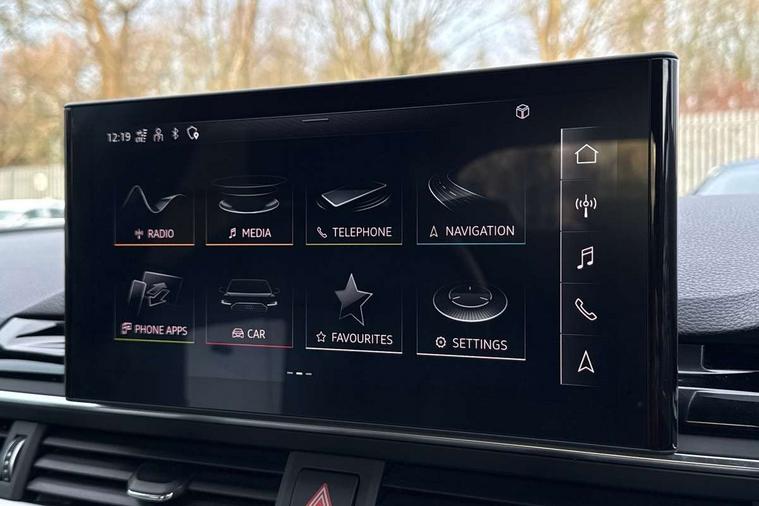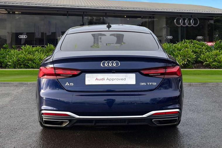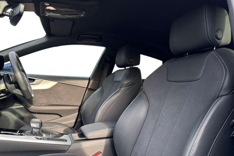 Audi connect safety and service (e-call), Audi connect with Amazon Alexa Integration, Audi drive select (Auto, Comfort, Dynamic and Individual), Audi parking system plus with front and rear sensors, Audi smartphone interface, Audi virtual cockpit - 12.3" full colour digital instrument cluster, vehicle/engine speed, Radio/media information+Driver assistance systems, Automatic start-stop system with coasting functionality and efficiency programme, Bluetooth interface, Electro-mechanical power steering, Email, calendar and text messages displayed via MMI, MMI nav+ with MMI touch - 10.1" high resolution MMI display, touch sensitive, 3D map, route/country info, dynamic route guide, personal route assist, Power operated tailgate, Rear view camera, Service interval indicator, Voice control system, Sports suspension lowered by 23mm, 8 passive loudspeakers, CD player, DAB digital radio reception, Two additional USB ports for rear passenger in rear centre console, Two SDXC card slots, Audi matrix LED headlights with LED rear lights + dynamic front and rear indicators, Auto dimming door mirrors, Auto dimming rear view mirror, Body colour bumpers, Body colour door handles, Body colour front spoiler lip, Body colour side sill trim, Body coloured door mirrors, Electric adjustable heated door mirrors, Electric folding door mirrors, Electric front windows, Front fog lights, Honeycomb structure radiator grille in grained matt black, Kerb-view function for passenger side, LED daytime running lights, LED side indicator lights integrated into door mirrors, LED third brake light, Matt aluminium silver tailpipe trim, Privacy glass, Rain and light sensors, Rear side wing doors, S line badges on front wings, S line front and rear bumpers with side skirts, S Line rear diffuser in matt titanium black with trim strip in matt aluminium silver, Side air inlets in grained matt black with matt aluminium silver inlay, Variable front intermittent wipers, Windscreen with acoustic glazing, 3 seat bench in 2nd row, 4 way electric lumbar support for driver and front passenger, 40/20/40 split folding 3 seater rear bench seat, Adjustable steering column, Black cloth headlining, Black perforated leather gearknob, Contrast stitching on seats, steering wheel and gear lever gaiter, Deluxe 3 zone electronic climate control, Front centre armrest, Front head restraints, Front/rear floor mats, Heated front seats, Illuminated door sill trim with S logo, ISOFIX child seat mounting and top tether, Luggage compartment mat, Manual seat adjustment, Rear centre armrest, Rear headrests, Single front passenger seat, Stainless steel pedals, Sunvisors with vanity mirrors, LED interior light pack - A5/RS5, 3x3 point rear seatbelts, 6 airbags - Driver, front passenger, curtain and side airbags, Electromechanical parking brake, Electronic Stabilisation Control (ESC) including ABS, ASR and EDL, Front passenger airbag deactivation, Height adjustable front seatbelts, Hill hold assist, Manual child lock in rear doors, Multi collision brake assist, Pop-up bonnet for pedestrian protection, Pre sense city, Seatbelt monitoring, Tyre pressure warning, Variable restraint system, Warning triangle and first aid kit, Anti theft alarm system, Anti theft wheel bolts, Immobiliser, Keyless Go, Remote central locking, Matt brushed aluminium inlays, Tool kit, Tyre repair kit,