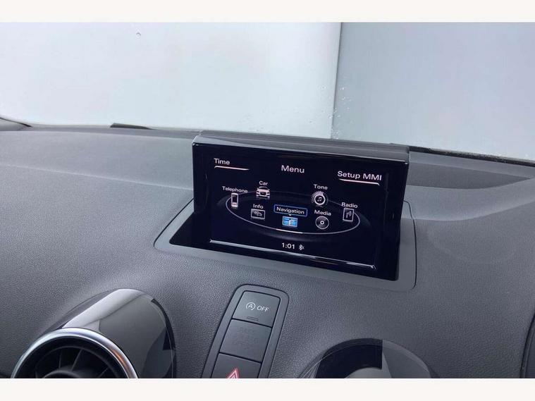 Electro-mechanical PAS, Low washer fluid indicator, Service interval indicator, Voice control system, Additional SD card reader, Audi music interface, Bluetooth audio streaming, DAB Digital radio, Adaptive brake lights, Electric adjustable door mirrors, Electric front windows, Electric rear windows, Front fog lights, Heat insulating glass, Heated door mirrors, Heated rear windscreen, Rear wiper, 12V Accessory socket in centre console, 3 spoke leather multi-function sport steering wheel including paddle shift, Adjustable rear head restraints, Cupholders in centre console, Door sills trims with aluminium inlays, Front floor mats, Front head restraints, Front sports seats, Height adjustable front seats, Illuminated glovebox, Isofix attachments on outer rear seats, Jack and tool kit, Leather gear knob, Leather handbrake, Lumbar adjustment for front seats, Rake/reach adjustable steering wheel, Split folding rear seats, Connectivity pack - A1, ABS/EBD, Brake assist function, Driver and passenger side airbags, Driver/Front Passenger airbags, EDL, ESP with ASR, First aid kit, Front and rear seatbelt reminder, Front passenger airbag deactivation, Head airbags, Height adjustable front seatbelts, Hill hold assist, Tyre pressure monitor, Warning triangle, Locking wheel bolts, Remote control central locking, Thatcham category 1 alarm + immobiliser, Tyre repair kit,