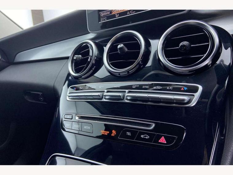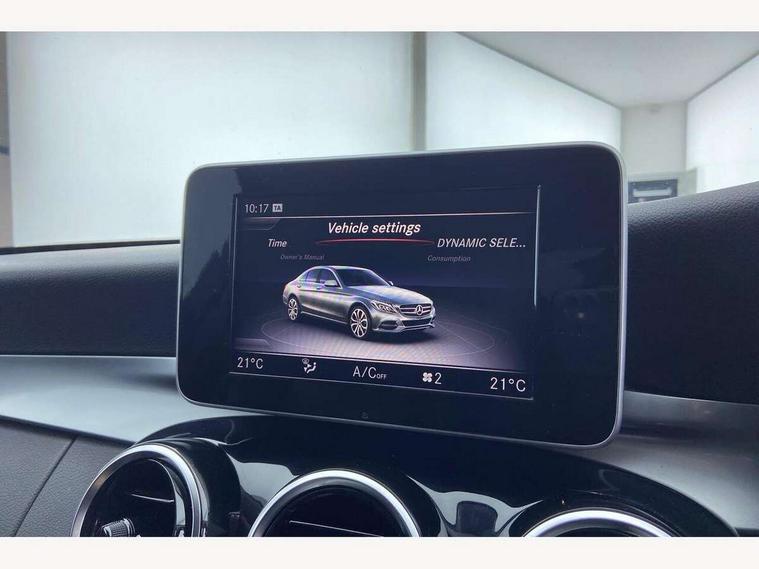 Active park assist with parktronic system, Attention assist, Bluetooth system, Collision prevention assist, Cruise control with speedtronic variable speed limiter, DYNAMIC SELECT with a choice of driving modes (ECO, Comfort, Sport, Sport+ and Individual), Garmin Map Pilot navigation system with SD card, touchpad and voice control, Multi function trip computer, Multifunction colour display, Outside temperature gauge, Remote boot release, Reversing camera, Service indicator (ASSYST PLUS), Speed sensitive steering, Agility control suspension with selective damping system, Diesel particulate filter, 2 USB ports in centre console, DAB Digital radio, Frontbass loudspeakers, Mercedes Audio 20 radio/single CD + telephone keypad, SD card slot, Adaptive brake lights, Body coloured bumpers, Electric windows one touch open/close, Electrically adjustable and heated door mirrors, Green tinted glass, LED daytime running lights, LED tail lights, Radiator grille with integral star and 2 louvres in matt iridium silver, Rain sensor windscreen wipers, Side windows surround in matt black, 2 cupholders in front centre console, 3 spoke leather steering wheel, Artico man-made leather upholstery, Auto Mercedes-Benz child seat recognition sensor, Dual zone automatic climate control, Electric front seat height adjustment, Front and rear head restraints, Front centre armrest with storage compartment, Gearshift paddles, Heated front seats, Height/reach adjustable steering column, Illuminated glovebox, Lumbar support, Multifunction steering wheel, Rear top tether child seat ISOFIX attachment, Mirror pack - C Class, Seat comfort pack - C Class, Stowage space pack - C Class, 3 rear 3 point seatbelts, ABS with Brake Assist, Active bonnet, Adaptive brake system, Child proof door locks, Drivers knee airbag, Dual stage driver/passenger airbags, Electronic parking brake, ESP with ASR, Front passenger seat occupancy sensor, Front side airbags, Hill start assist, Rear seatbelt warning indicator, Tyre pressure monitoring system, Warning triangle and first aid kit, Window airbags, Alarm system/interior protection/immobiliser, Chrome surround in electric key, Remote central locking, Black high gloss trim, 17" 5 twin spoke alloy wheels in vanadium silver, Tyre inflation kit,