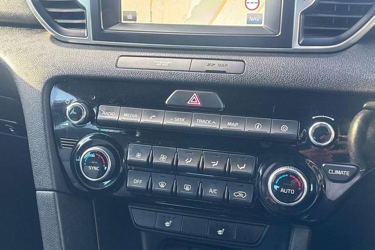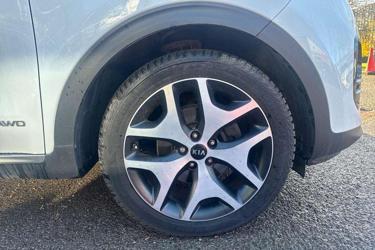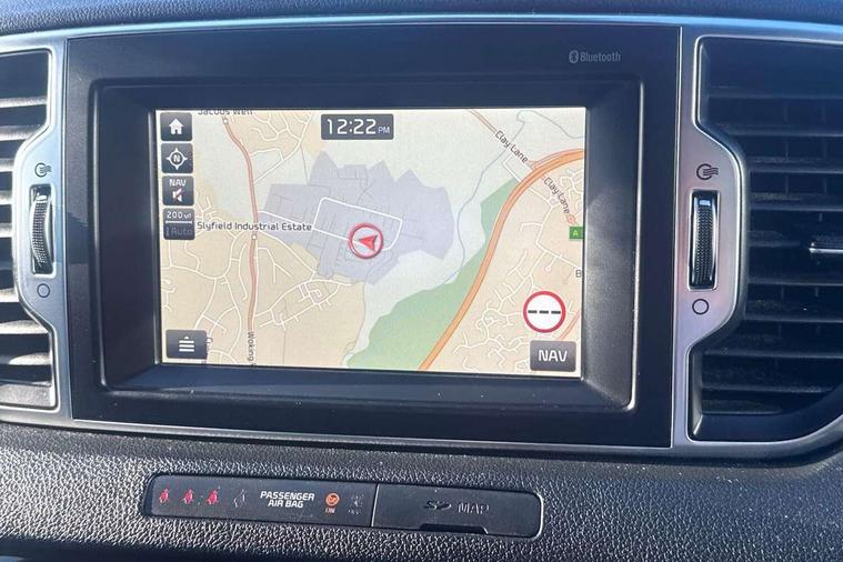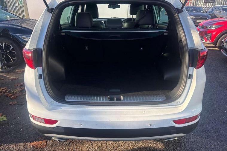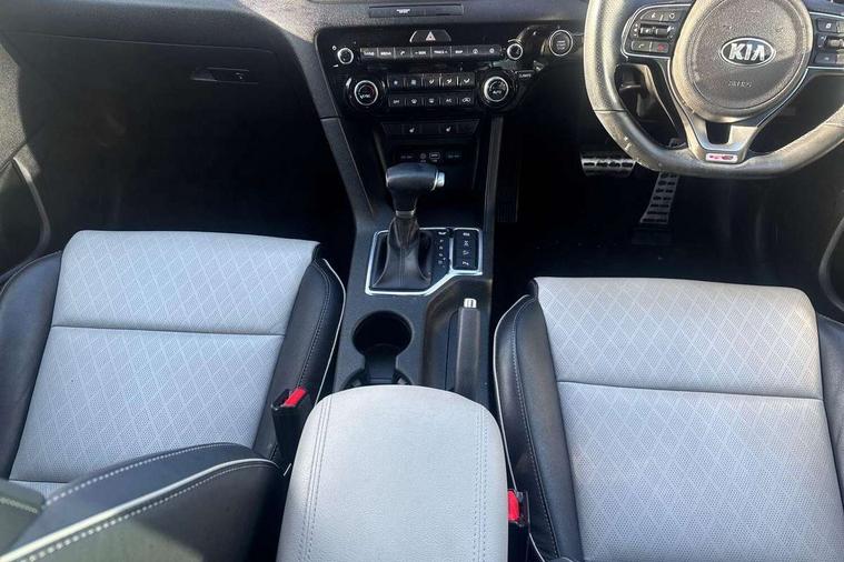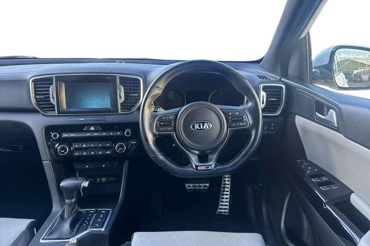 7" touch screen, Apple car play/Android Auto, Bluetooth connectivity with voice control, Colour information display, Cruise control + speed limiter, Digital clock, Drive mode selector, Emergency stop signalling system, Front and rear parking sensors, Kia connected services, Lane keep assist, Satellite navigation with rear view parking camera, Speed limit display, Speed sensitive power steering, Stop/start button, Trip computer, 6 speakers, Bluetooth audio streaming, DAB Radio with MP3, Steering wheel mounted audio controls, USB/iPod/auxiliary input connections, Auto dimming rear view mirror, Automatic defog system, Automatic front rain sensing wipers, Automatic headlights, Black side sill moulding, Body colour bumpers, Body colour electric adjustable door mirrors, Cornering light, Dual exhaust pipes, Electric folding door mirrors, Electric windows, Follow me home headlights, Front drivers side windows/one touch up/down, Headlamp levelling, Heated door mirrors, High beam assist, LED daytime running lights, LED indicators in door mirrors, LED rear lights, Privacy glass (rear side windows and rear screen), Rear spoiler, Rear wiper, Roof rails, Shark fin roof aerial, Speed sensitive front wipers, Tinted glass, Trailer stability assist, Welcome home function, Wide angle drivers door mirror, 12V power in rear centre console, 12V power point front, 3 passenger grab handles, 60/40 split folding rear seat, Air filter, Centre console storage box/armrest, Centre room lamp, Door armrest in leather, Door courtesy lamps, Driver's lumbar support, Driver's seat height adjuster, Driver/passenger sunvisors with ticket holders, Dual zone automatic air conditioning, Front and rear door pockets, Front map lights, Front seat and rear pockets, Heated front and outer rear seats, Height adjustable headrests, Illuminated glovebox, Illuminated vanity mirrors, Isofix child seat preparation, Leather trimmed gearshift, Leather upholstery, Luggage area lamp, Luggage compartment cover, Luggage net with hooks, Paddle shift controls, Rear centre armrest with cupholder, Rear coat hooks, Rear headrests, Satin chrome interior door handles, Stainless Steel Scuff Plates, Tilt/telescopic adjustable steering wheel, Ventilation ducts to rear compartment, Exterior Styling Pack - GT-Line, Interior Styling Pack - Sportage GT-Line/GT-Line S, 3 point front seat belts, 3x3 point rear seatbelts, ABS/EBD, Active front headrests, Automatic unlocking of doors in case of impact, Dual front airbags, ESP + traction control, Front seatbelt pretensioners + load limiters, Front side airbags, Full size curtain airbags, Height adjustable front seatbelts, Hill start assist control (HAC), Passenger airbag deactivate switch, Rear child proof door locks, Tyre pressure monitoring system, Anti theft alarm, Deadlocks, Immobiliser, Locking wheel nuts, Smart keyless entry, Speed sensitive auto door locking, High gloss black centre fascia, 19" alloy Wheels B-type, Temporary spare wheel,