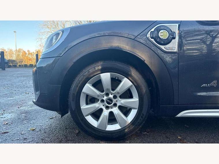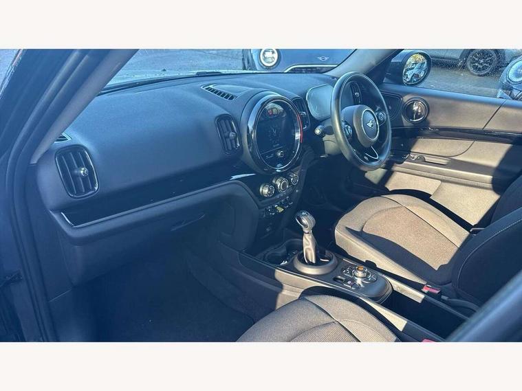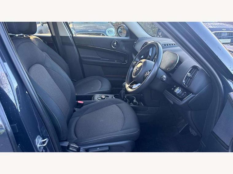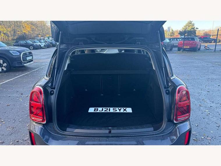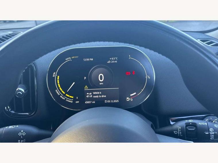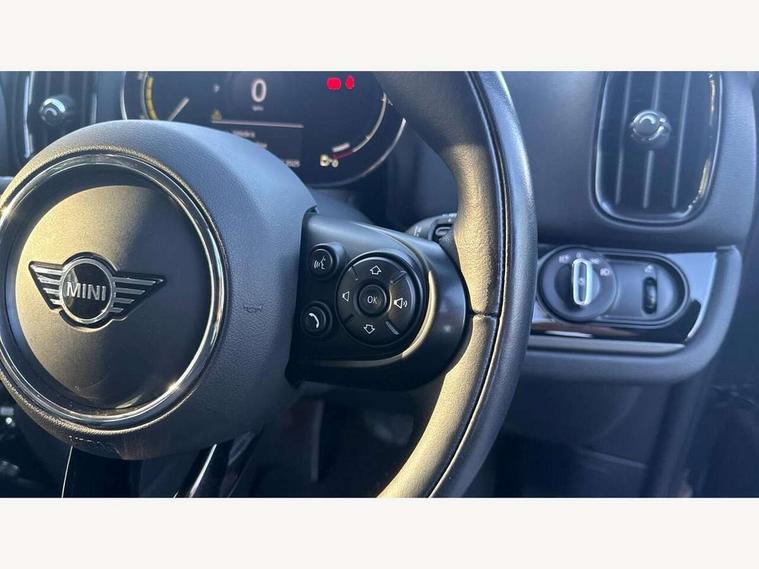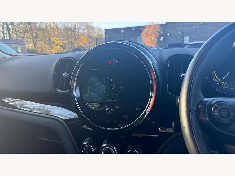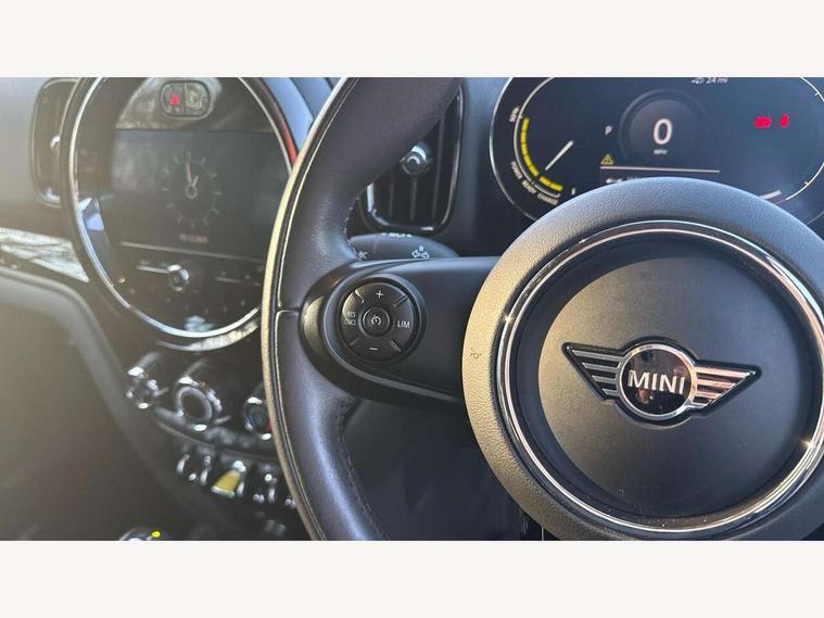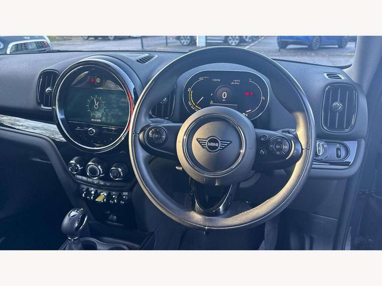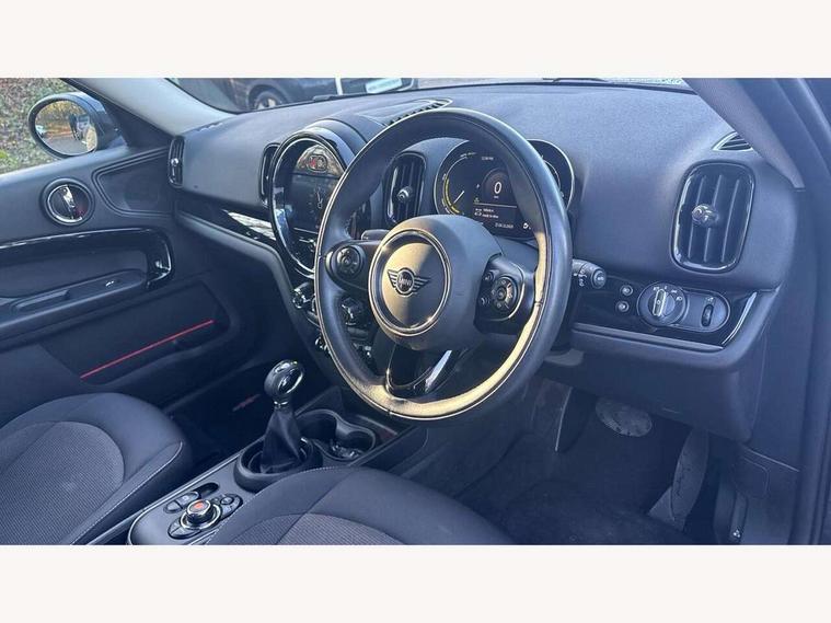 Active Guard incl speed limiting and lane departure functions with auto steering, and front collision warning with brake intervention, Automatic start/stop function with brake energy recuperation, Compatible mobile phone bluetooth with audio streaming, eDrive button, Electro-mechanical speed dependant steering assistance, Instrument cluster, On board computer, Rear parking distance control, 36L fuel tank, Automatic transmission, Charging flap on front left lower A-panel, Double Vanos system, Fully variable valve control, High precision injection, Home charging cable, Performance Control, Public charging cable, FM tuner and DAB digital radio, Bonnet scoop, Chrome border honeycomb structure radiator grille with S badge, Chrome fuel filler cap, Day time driving lights, Dynamic brake lights, Electric windows, Heated rear window, Heated windscreen washer jets, LED fog lights, LED Headlights, Metal door sill strips with Cooper S imprint, Model logo, Model logo on Tailgate, Rain sensor with auto headlights, Rear fog lights, Rear window wiper, Side scuttle panel with integrated indicator, Split rear doors, Sun/heat protection glass, Twin exhaust tailpipe, White indicator lenses, 12V socket in centre console, 3 spoke sport leather steering wheel + limiter function and audio controls, 360L luggage compartment capacity, 4 lashing eyes in luggage compartment, 40:20:40 split folding rear seats, Chrome interior highlights, Colour line - Carbon black, Cupholders, English handbook, Floor mats, Front headrests, Glove compartment, Headliner with grab handles and clothes hooks, Height and length steering column adjustment, Interior lighting with 12 basic colours selectable via toggle switch in roof, Isofix rear child seat preparation, Leather gearshift lever and handbrake gaiters, LED reading lights, vanity mirror lights, front foot well light and spotlight on front seats, Manual air conditioning, Mechanical seat adjustment, driver seat height adjust, forward/back and front seats backrest, Multifunction steering wheel, Passenger seat height adjuster, Rear headrests, Storage compartments in doors, Sunvisors with vanity mirrors, Excitement pack - Countryman, Navigation pack - Countryman, 2 tone horn, 3 point seatbelts on all seats, 6 Airbags - front, side, head and seat belt tensioners, Acoustic pedestrian protection, Anti-lock braking system (ABS), DSC - Dynamic Stability Control, Electronic handbrake, Front and rear disc brakes, Hill start assist, Tyre pressure monitoring system, Alarm system with tilt sensor, monitoring doors, bonnet interior and tailgate, Auto drive away locking, Deadlocking function, Electronic vehicle immobiliser, Locking wheel bolts, Start/stop toggle with keyless go, Piano black interior trim, Tool kit,