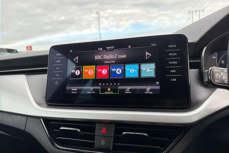 Amundsen satellite navigation with 9.2" touchscreen display, voice control, virtual cockpit and web radio, Bluetooth system, E-call, Front assist system, Lane assist, PAS, Service indicator, Speed limiter, Trip computer, Virtual cockpit with 10.25" display, Wireless SmartLink for apple car play, android auto and mirrorlink, 2 USB - C ports with 1x adaptor cable, Auxiliary input socket, DAB Digital radio, Auto dimming rear view mirror, Body colour bumpers, Body colour door mirrors and handles, Chrome grille surround, Electric folding door mirrors, Electrically adjustable and heated door mirrors, Front and rear electric windows, Headlight range control, Heated rear window, High functionality rear led lights with dynamic indicators, Privacy glass, Rear fog lights, Rear wiper, 12V Accessory socket in centre console, Chrome inner door handles, Dual zone climate control, Front gesture control, Front head restraints, Glove compartment with illumination, Ice scraper, Isofix child seat fittings on outer rear seats, ISOFIX on front passenger seat, Manual lumbar support for front seats, Pollen filter, Rake/reach adjustable steering wheel, Reading lights for driver and front passenger, Sun visor with make up mirror for front passenger, Textile floor mats, Third rear headrest, Top tether for front passenger seat, Umbrella in driver's door, 3x3 point rear seatbelts, Airbags - driver and front passenger, ESP, Front passenger airbag deactivation switch, Front side airbags with curtain airbags, Hill hold control, Manual parking brake, One tone horn, Rear disc brakes, Seatbelt reminder for driver an co-driver, Traction control, Tyre pressure monitor, Alarm with interior monitoring, back up horn and tilt sensor with safe function and towing protection, Anti-theft wheel bolts, Immobiliser, Remote central locking with SAFE system,