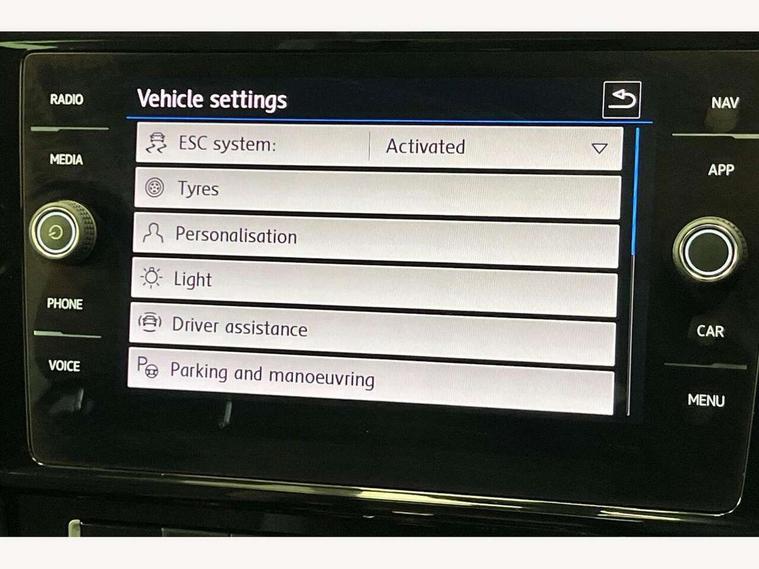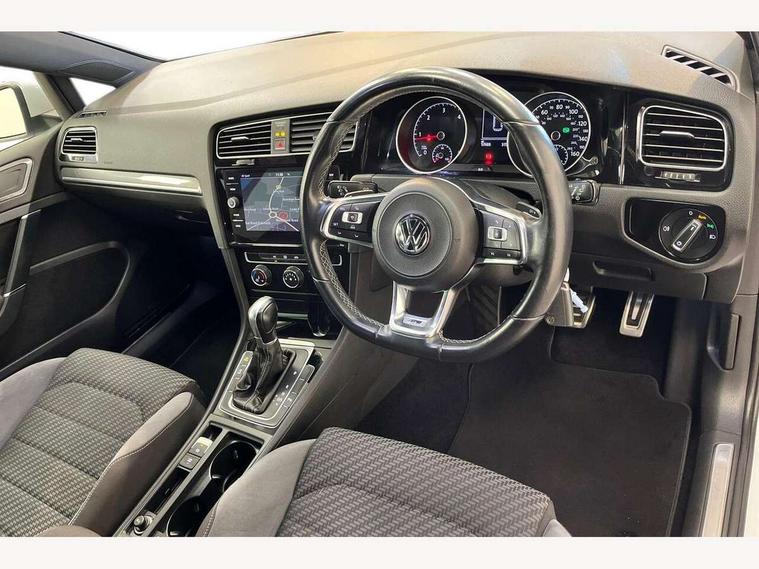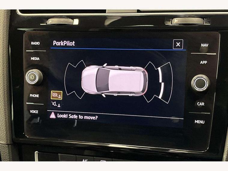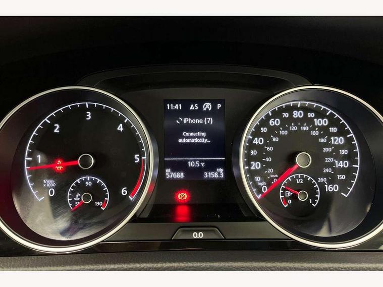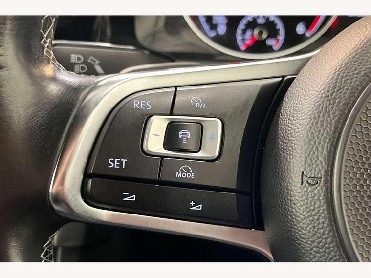 App-Connect, 'Lights On' Reminder warning buzzer, 8" colour touch screen, ACC - Adaptive cruise control with front assist, forward collision warning, distance monitoring, city emergency brake and speed limiter, Bluetooth hands free telephone connection, Brake pad wear indicator warning light, Driver alert system, Driver profile selection, Exterior temperature gauge, Front assistant collision mitigation, Instrument cluster in white, Misfuelling protection device, Multifunction computer, PAS - speed related, Power assisted speed sensitive electro-mechanical steering, Rev counter, Stop/start system, Trip and service interval display, Ultrasonic front and rear optical and audible parking sensors, Warning buzzer and light for front seatbelts unfastened, Battery regeneration during braking, Diesel particulate filter, Lowered sports suspension, XDS electronic differential lock, CD/MP3/WMA, USB and SD card reader, aux-in, Composition media system, DAB Digital radio receiver, Automatic coming/leaving home lighting function and rain sensor, Automatic dimming rear view mirror/rain sensor, Automatic headlights, Black front air intake and radiator grille with chrome insert, Black sports rear diffuser, Body colour bumpers, Body colour door handles, Body colour door mirrors with integrated indicators, Body colour rear roof spoiler, Chrome grille surround, Chrome trapezoidal exhaust, Electric front windows, Electric rear windows, Electrically adjustable and heated door mirrors, Halogen headlights range adjustable via infotainment system with LED daytime running lights, Heated rear windscreen, High level 3rd brake light incorporating LED Technology, LED rear lights, Rain sensor, Rear number plate lights incorporating LED technology, Rear tinted glass 65% light absorbing from B pillar backwards, Rear window aerial, Rear window wash/wipe with intermittent wipe, Reflectors in all doors, Side skirts, Stainless steel door sill protection, Windscreen wipers/ intermittent wipe + 4 position delay, 12V socket in luggage compartment, 3 rear headrests, 60/40 split folding rear seat backrest, Bag hook in luggage compartment, Black headlining, Boot lashing points, Cooled glovebox, Courtesy light delay, Cover for storage compartment in centre, Driver/front passenger seat height adjustment, Dust/pollen filter, Front + rear carpet mats, Front centre armrest with storage compartment and two rear air vents, Front seat back storage pockets, Grab handles front x 2, rear x 2 with integrated coat hooks, Height/reach adjust steering wheel, Illuminated vanity mirrors, Instrument lighting white adjustable panel illumination, Isofix preparation for 2 rear child seats, Load through provision with rear centre armrest and cupholders x2, Luggage compartment cover, Luggage compartment light, Multifunction leather steering wheel with grey stitching leather trimmed gear knob including paddle shift, Multifunction leather steering wheel with leather trimmed gear knob including paddle shift, Overhead storage box, Stainless steel pedals, Storage box in luggage compartment, Storage compartments in doors, Storage compartments in front doors, Storage compartments in rear doors, Sun visors, Three spoke multi-function leather trimmed steering wheel and gearknob, Three spoke steering wheel, Variable boot floor, height adjustable and removable, Ambient lighting pack - Golf, Mirror pack - Golf, 3 rear three point seatbelts, Anti-lock braking system (ABS), Automatic post collision braking system, Child locks on rear doors, Driver/Passenger optimised head restraints, Drivers and Front Passengers airbags with front passengers airbag deactivation switch, Drivers knee airbag, Electronic stability control (ESC) including Electronic differential lock (EDL) and ASR (Traction control) with deactivation via infotainment system, Front and rear curtain airbags, Front seat side impact airbags, HBA (Hydraulic Brake Assist), Pre crash preventive occupant protection, Three point height adjustable front seatbelts with tensioners, Tyre pressure loss indicator, Alarm with interior protection, Electronic engine immobiliser, Remote central locking with 2 remote folding keys, Dark Diamond decorative inserts in dash and door panels, Piano black centre console with aluminium inlay, Steel space saver spare wheel,