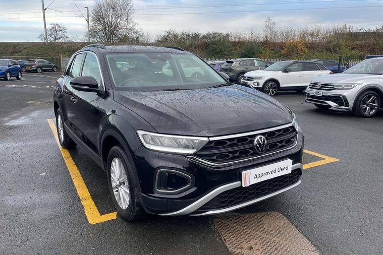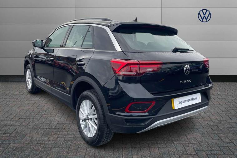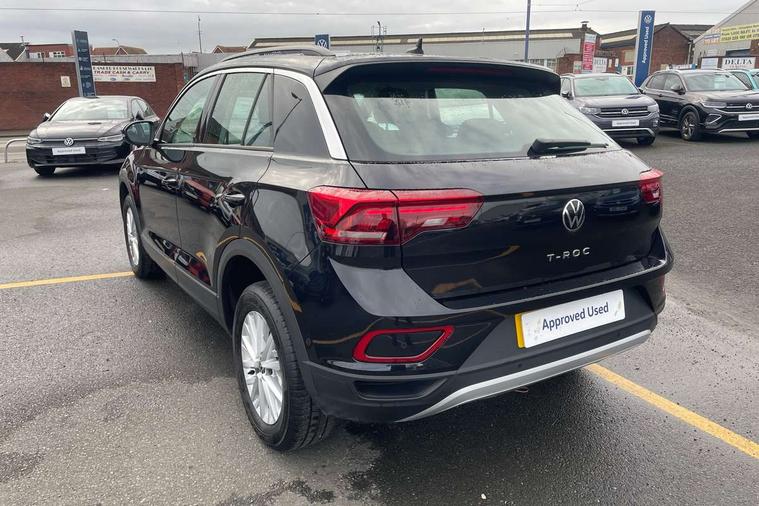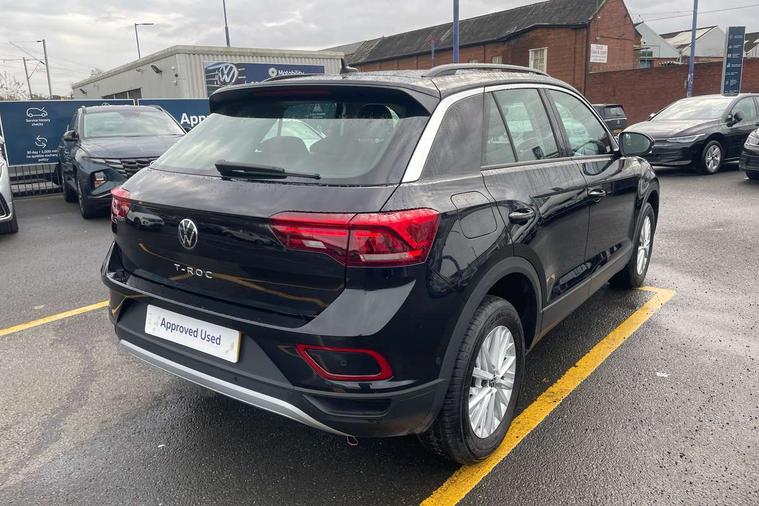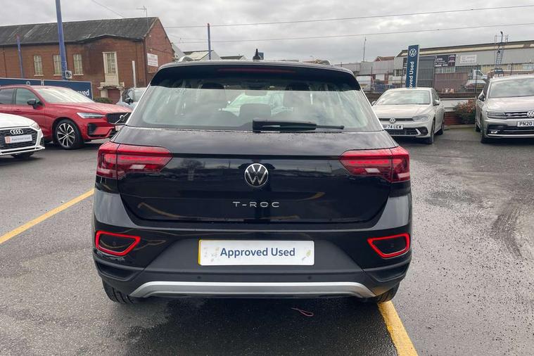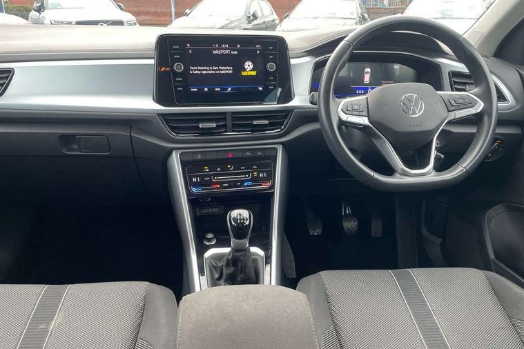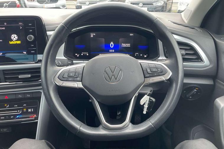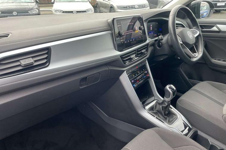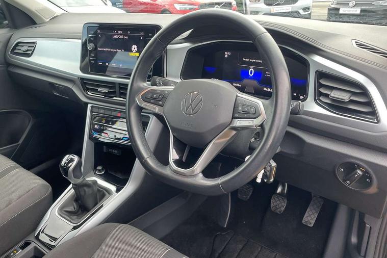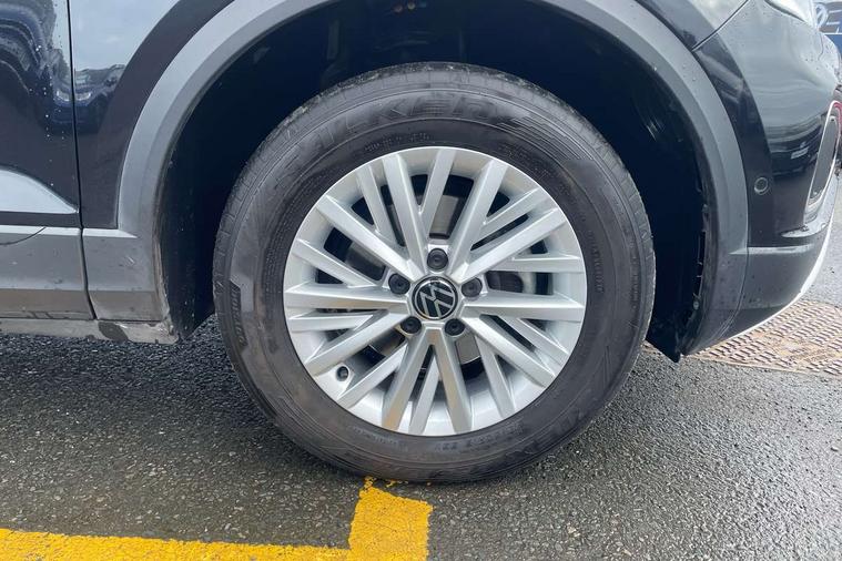 Bluetooth mobile phone interface, Driver alert system with fatigue detection, Driver tips and journey analysis, Emergency call service, Lane keeping system Lane Assist, Modified key software - reduce switch off time for key status change to Long no motion, Online services, Park assist including front and rear parking sensors, Power assisted speed sensitive steering, Service interval indicator, Tailgate/trunk lid release from outside, Think blue trainer driver tips and journey analysis, Warning sound and light for front seatbelts unfastened, Wireless app connect, Battery regeneration during braking, Front shock absorption, Rear shock absorption chassis with increased ride height, Start/stop function with battery regeneration, DAB Digital radio, Diversity antenna for FM reception, Front and rear 6 speakers, Music playback - MP3, WMA and AAC files, Premium USB cable in choice of either Apple or Android smartphone compatibility, SD card slot, Simultaneous pairing of 2 compatible mobile devices, Title and cover art display, We Connect and We Connect Plus functionality, 3rd brake light, Auto dimming interior rear view mirror, Automatic hazard lights activation under emergency braking, Automatic headlight control with LED separate daytime running lights with coming/leaving home function, Black roof rails, Body coloured bumpers and radiator grille with chrome trim and front fog lamps with chrome bezel, Body coloured exterior mirror housings and door handles, Extended roof spoiler, Exterior mirrors aspherical on driver side, convex on front passenger side, External USB type C socket and charging sockets, Front windscreen wiper with intermittent wipe and 4 position delay, Heated rear window, LED Headlights, LED rear combination lamps, LED rear number plate lights, LED tail lamp rear comination lamps, Power windows with comfort operation and circuit breaker, Rain sensor, Rear exhaust tailpipe, Rear fog light on one side and reversing lights on both sides, Rear side wing doors, Rear wash/wipe with intermittent wipe setting, Remote electrically foldable door mirrors, puddle lights and reverse activated passenger's door mirror, 12V power socket in centre console, 3 rear head restraints, 3 seat bench in 2nd row, 4 load lashing points in luggage compartment, Air care climatronic air conditoning system with active combination filter and 2-zone temperature control, Ambient lighting with mirror logo projection, Cloth upholstery, Door and side trim panel in cloth, Drawer under drivers seat, Driver/front passenger seat height adjustment, Front centre armrest, Front comfort sports seats, Front cupholders x 2, Front reading light, Instrument lighting, white adjustable panel illumination, Interior light delay, Isofix child seat preparation, Leather gearshift handle, Load-through provision with cup holder when folded down ('Unsplit rear seat bench, split folding backrest, with centre armrest), Luggage compartment lighting, Lumbar support for driver's and front passengers seat, Non-folding front passenger seat backrest, Single front passenger seat, Storage compartment in left and right luggage area, Storage compartment in rear doors, Storage compartments in driver and front passenger doors, Sunvisors with illuminated vanity mirrors, Variable boot floor, height adjustable and removable, Driver assistance pack without proactive passenger protection - T-Roc, 3 point height adj front seatbelts + pretensioners, 3 point seatbelts in outer rear with ECE label, ABS, Child locks on rear doors, Driver and front passenger airbag with front passenger airbag deactivation, Driver and front passenger safety-optimised head restraints, Drivers seatbelt reminder, Electronic parking brake, Electronic Stability Control (ESC) inc EDL (Electronic Differential Lock) and ASR (Traction Control), Front and rear passengers curtain airbag system including front side airbags, Front assist with city emergency braking and pedestrian monitoring, Front disc brakes, Front seat side impact airbags, Hill start assist, Predictive pedestrian protection, Rear disc brakes, Single tone horn, Tyre pressure loss indicator, Volkswagen roadside assistance, Alarm with interior protection, Anti-theft alarm system with interior monitoring, backup horn, and towing protection, Remote central locking with SAFELOCK, radio remote control with 2 remote control folding keys, Pewter matt decorative inserts for intrument panel, centre console and door panels at the front, Trims for alloy wheels,