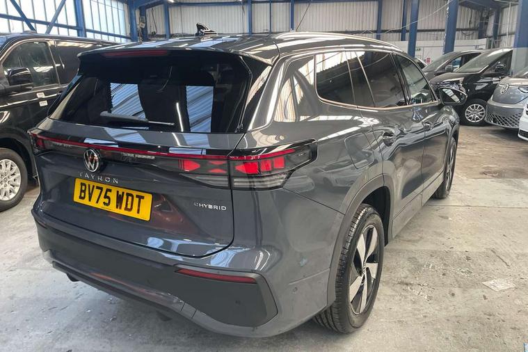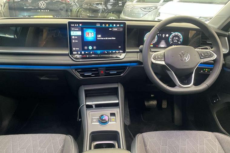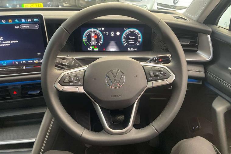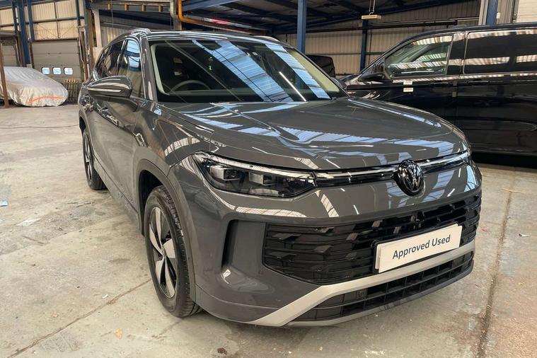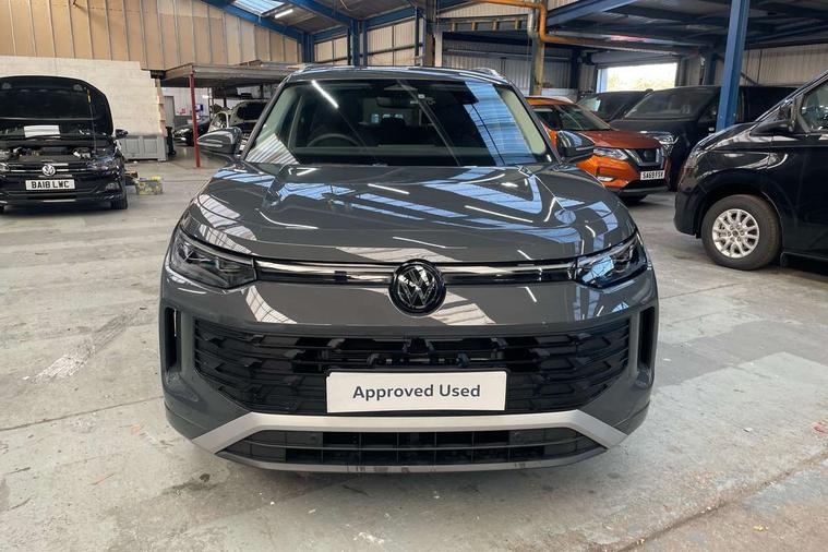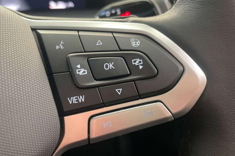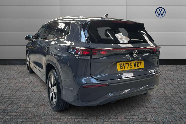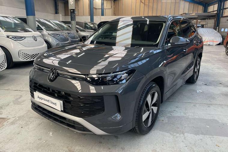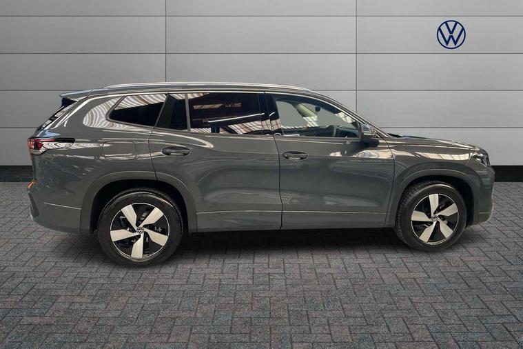Adaptive cruise control (ACC), Digital Cockpit Pro - 10.25" high resolution dash display screen with customisable menus and information, Driver alert system, Driver attention monitoring system, Dynamic road sign display, E-Sim card for online connectivity, eCall emergency call system, Lane change system, Side assist, Rear traffic alert and Exit warning system, Multifunction front facing camera, Oncoming vehicle braking when turning including swerve support, Power assisted steering with speed sensitive, Start/stop system with regenerative braking, Voice activation spoken voice commands for telephone and navigation system, Warning signal and warning light for front and rear seatbelts not fastened, Wireless App-Connect, Adaptive chassis control DCC pro includes driving mode selection, Charging cable Mode 2 Type 2 / G (10A), Charging cable Mode 3 Type 2 / 3 (16A), Front shock absorption G08, Front wheel drive, Rear shock absorption, Digital radio reception (DAB), Diversity antenna for FM reception, Auto dimming interior rear view mirror, Automatic headlight control system, Body colour door handles, Body-coloured exterior mirror housings, Chrome moldings on the side windows, Comfort bumpers, Coming/leaving home lighting function, Exterior mirrors convex on the left and aspherical on the right, Heat insulating glass in side and rear windows, Laminated safety glass windshield, heat insulating, LED 3rd brake light, Puddle lights, Rain sensor windscreen wipers, Rear fog light on one side, reversing light on both sides, Rear side wing doors, Rear wiper, Reverse activated passenger's door mirror, Surround lighting with welcome light, Tilting and sliding panoramic sunroof with rear panoramic sunroof, 12V outlet in center console rear and in luggage compartment, 3 rear headrests, 3 rear seat bench in 2nd row, split folding, longitudinally movable and folding with load-through hatch, Carpet mats, front and rear, Centre console with illuminated storage compartment with sliding cover and two drinks holders, Door and side trim panel with leatherette insert, Flat luggage compartment floor, Front centre armrest, ISOFIX anchors for child seats on outer rear seats and front passenger seat compatible with i-Size, Mechanical rear seat release, Power adjustable lumbar support in front, Single front passenger seat, Sun visors with illuminated vanity mirrors, Comfort package with park assist pro - Tayron, 3 Point seat belts in front with pretensioners, 3 point seatbelts in outer rear with ECE label, Autonomous emergency braking front assist with pedestrian and cyclist monitoring, Driver and front passenger airbag with front passenger airbag deactivation, Electronic parking brake with auto hold, First aid kit with warning triangle and safety vest, Front and rear curtain airbags, Front and rear side airbags, Front centre airbag, Front disc brakes, Hill start assist, Rear disc brakes, Two tone horn, Decorative material set, Tool kit for tyre mobility set, Tyre mobility kit including compressor and sealing foam. In lieu of spare wheel,