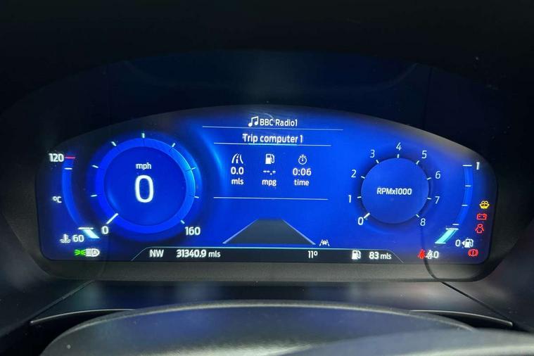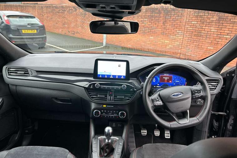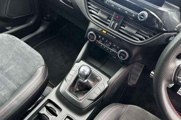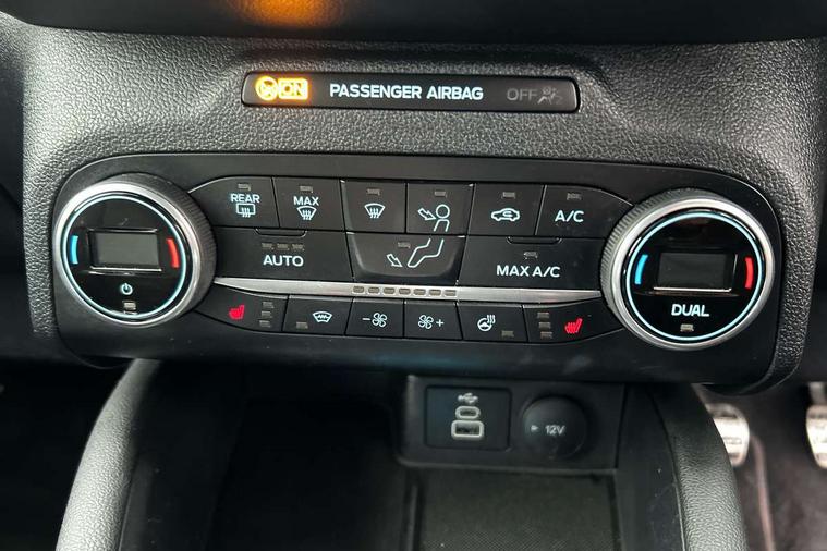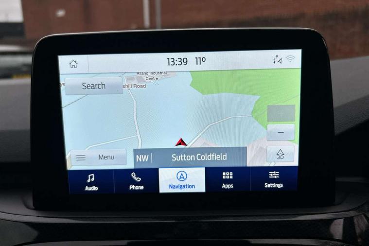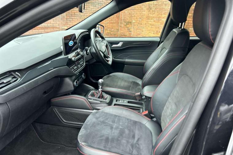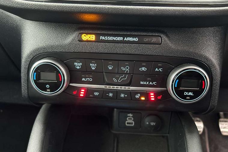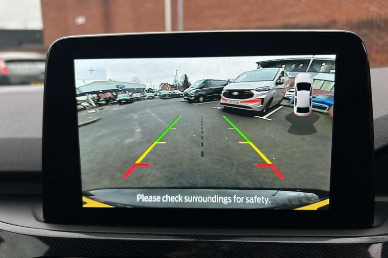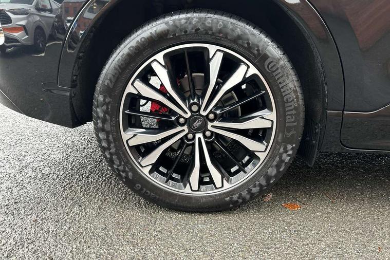 12.3" digital colour instrument cluster, Ford easy fuel, Ford SYNC 3 with 8" TFT LCD touchscreen, App Link, andriod auto/apple carPlay, emergency assistance and navigation with Ford pass connect, Front and rear parking sensors, Hands free power tailgate, Lane keeping aid with lane departure warning, Power assist steering, Rear view camera, Selectable drive modes, Service interval indicator, Sports suspension, Twist beam rear suspension, B&O premium audio system with 10 speakers and subwoofer, 2 USB ports, DAB radio/CD, Auto headlamps with high and low beam, Black roof rails, Day/night rear view mirror, Front LED fog lamps, Large rear spoiler, LED daytime running lights, LED rear lights, Power folding heated door mirrors with puddle lights, Power front/rear windows with global close, Power opening panoramic roof, Privacy glass, Quickclear heated windscreen, Rear side wing doors, Rear wiper, ST Line body styling kit with unique front and rear fascia and bumper, rear painted diffuser, front painted skid plates, dark mesh upper grille, ST Line front scuff plates, Third brake light, Twin exhausts, 10 way power adjustable drivers seat, 2nd row sliding seats with 60:40 split, 8 way manual passenger seat including lumbar support and height adjust, Alloy pedals, Centre console with electronic parking brake, Dark headlining and pillars, Dual electronic automatic temperature control, Flat bottomed leather steering wheel in sensico with red stitching, Front and rear head restraints, Heated passenger and driver seats, Heated rear seats, Heated steering wheel, Partial premium touch sensico leather upholstery with black cloth inserts and red stitching, Rear charging point, Single front passenger seat, Sports seats, ST Line front and rear floor mats, ST Line gear knob, 3x3 point rear seatbelts, Airbags - front driver/passenger, front and rear curtain, Drivers knee airbag, Electronic stability control (ESC) and ABS, Ford MyKey Gen 2 safety system, Manual child proof rear door locks, Post collision braking, Pre collision assist with autonomous emergency braking, Rear seat Occupancy alert, Red brake calipers, Tyre pressure monitoring system, Engine immobiliser, Keyless entry and Ford power start button, Locking wheel nuts, Remote powered central double locking doors, Thatcham category 1 alarm,