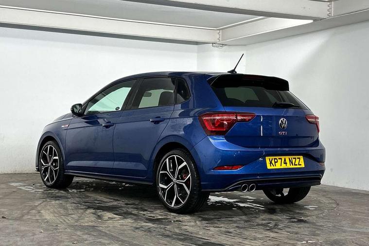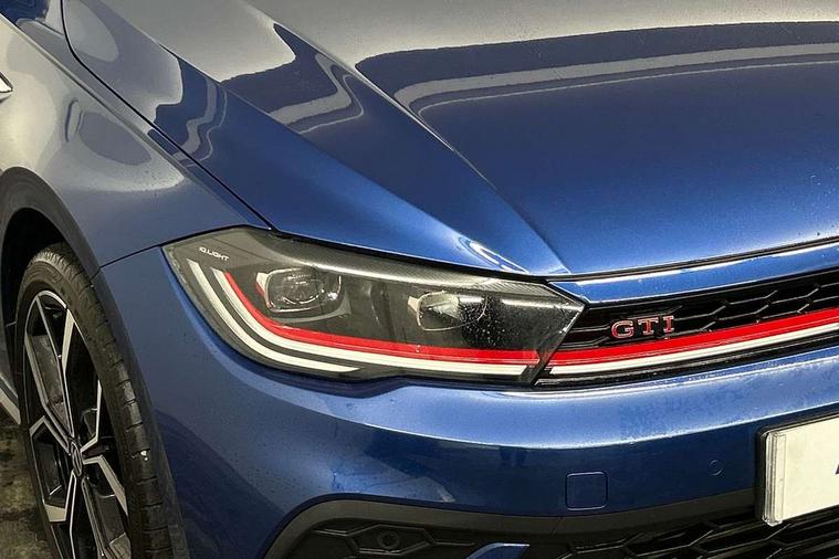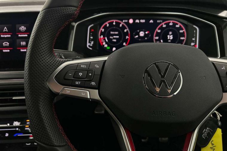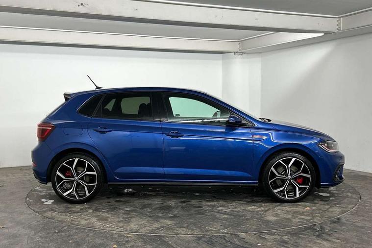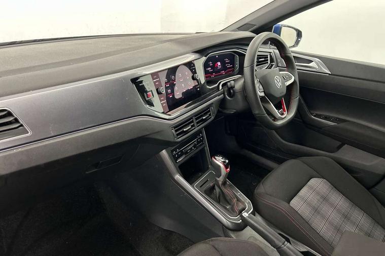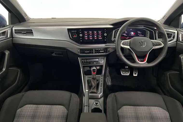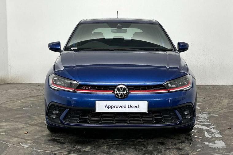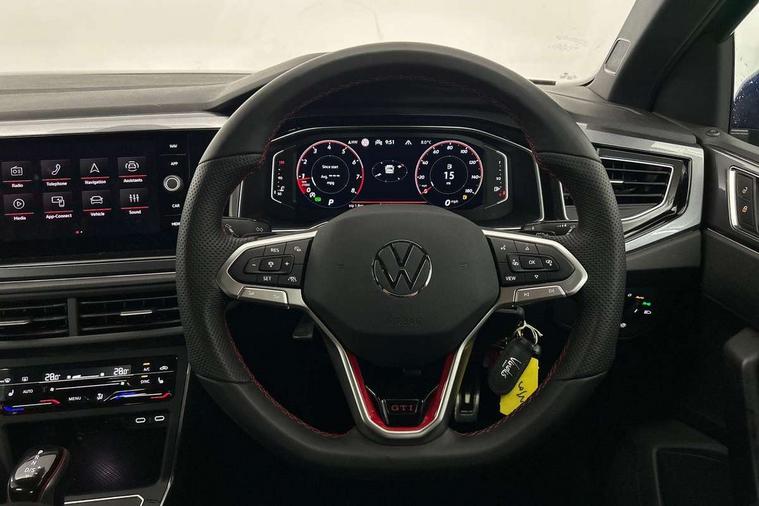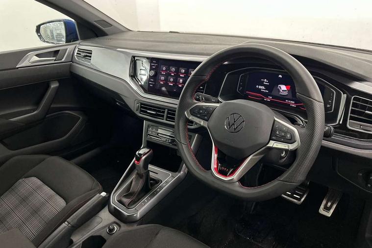 Adaptive cruise control with follow-to-stop and speed limiter, Advanced driver attention and drowsiness monitor, Bluetooth mobile phone interface, Digital Cockpit Pro with 10.25" Display, Dynamic road sign display, Eco mode, Emergency call service, Multifunction camera, Power assisted speed sensitive steering, Preparation for We connect and We connect plus, Speedo and rev counter, electronic odometer, trip, service interval display and fuel gauge, Travel Assist - Lane keeping system and traffic jam assist, Travel assist including emergency assist, Trip computer, Warning signal and warning light for front and rear seatbelts not fastened, Washer fluid level indicator, Wireless app connect, Adaptive chassis control, Front wheel drive, Heavy duty rear axle, Rear shock absorpion sports version, Sports select suspension lowered by 15mm, Start-stop system with battery regeneration (recuperation - energy recovery during braking), DAB Digital radio, Diversity antenna for FM reception, Front and rear 6 speakers, Body colour bumpers, Body colour door handles, Electric front windows, Front scuff plates in aluminium with GTI logo, Heat insulating darkened glass in side and rear windows, Heat insulating glass windscreen, Power folding adjustable/heated exterior mirrors and front passenger exterior mirror lowering function, Rain sensor, Rear electric windows, Rear fog light, Rear side wing doors, Rear windscreen washer and wiper with interval delay, Sport bumpers with air intakes with honeycomb structure, Third brake light, Twin chrome exhaust tailpipes, 12V power socket in centre console, 2 USB-C ports in the front, 2 USB-C charging sockets on the center console in the rear, 3 rear head restraints, 60/40 split folding rear seat and rear seat bench not split, Air care climatronic air conditoning system with active combination filter and 2-zone temperature control, Black roof lining, Carpet mats, front and rear, Chrome plated radiator grille inserts, air vent surrounds and light switch surrounds, Door and side trim panel, Driver and front passenger seat height adjustment, Driver/passenger sunvisors with illuminated vanity mirrors, Front centre armrest, Front footwell illumination, Front seat backrest storage pockets, GTI sports gearshift knob in aluminium leather, Handbrake lever handle in leather, Headliner in recycled material, Isofix child seat preparation easy-fit (for two outer rear seats, and front passenger seat) compatible with I-size, LED interior light with switch off delay and dimmer, 2 reading lights front and rear, Luggage compartment cover, Luggage compartment floor, Luggage compartment lighting, Single front passenger seat, Stainless steel pedals, Standard pedal cluster, Three spoke leather wrapped multifunction sports steering wheel with shifting paddles, IQ LED matrix headlights pack - Polo, Light and sight pack - Polo GTI, 3 point height adj front seatbelts + pretensioners, 3x3 point rear seatbelts, ABS, Driver and front passenger airbag with front passenger airbag deactivation, Drivers and front passengers safety optimised head restraints, ESC (Electronic stability control) + EDL (Electronic Differntial lock) and ASR (Traction control), Extended and predictive pedestrian/ cyclist protection, Front and rear disc brakes with red brake calipers, Front curtain and side airbags with center airbag, Hill hold control, Manual child lock in rear doors, Two tone horn, Tyre pressure loss indicator, Alarm with interior protection, Anti-theft alarm system with interior monitoring, backup horn, and towing protection, Anti-theft wheel bolts, Electronic engine immobiliser, Chrome applications on rotary light, mirror adjustment, window regulator switches, outlet with frame in black, Low rolling resistance tyres,