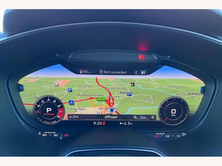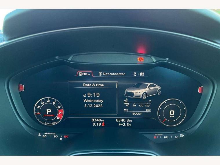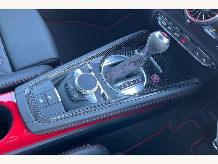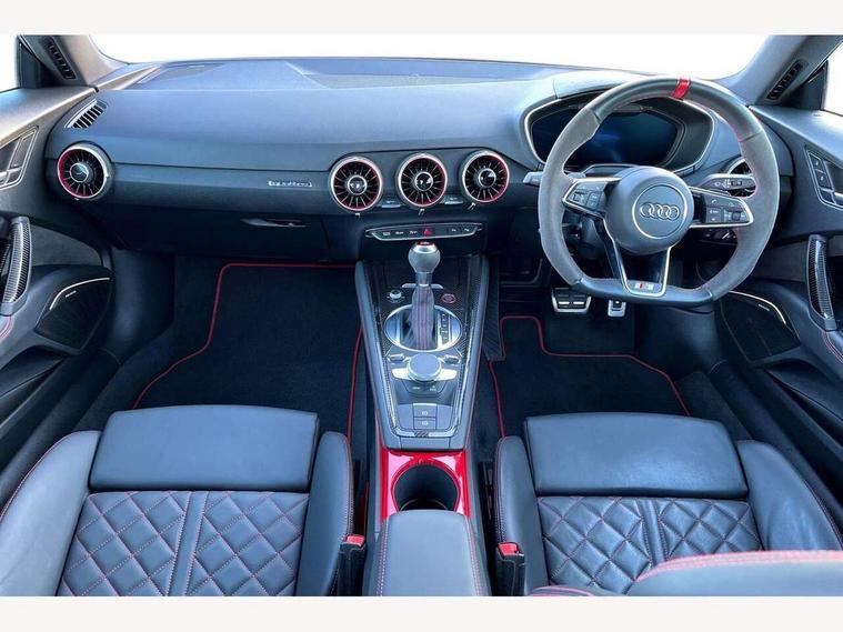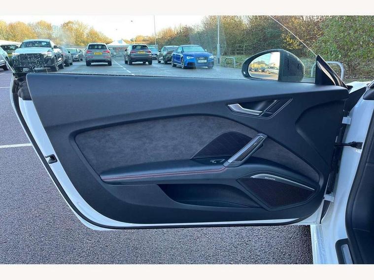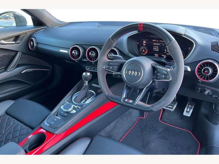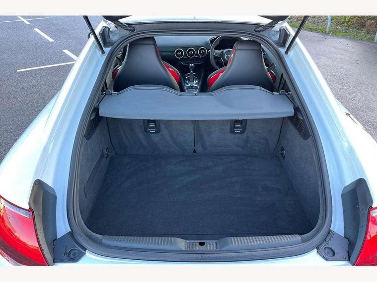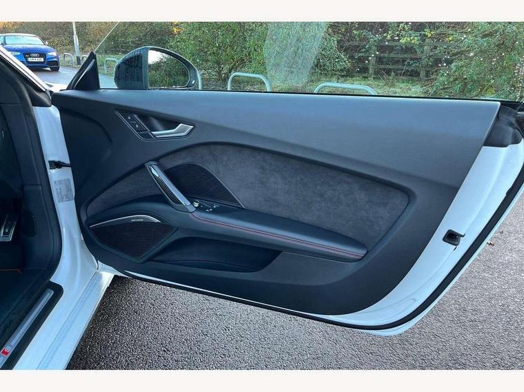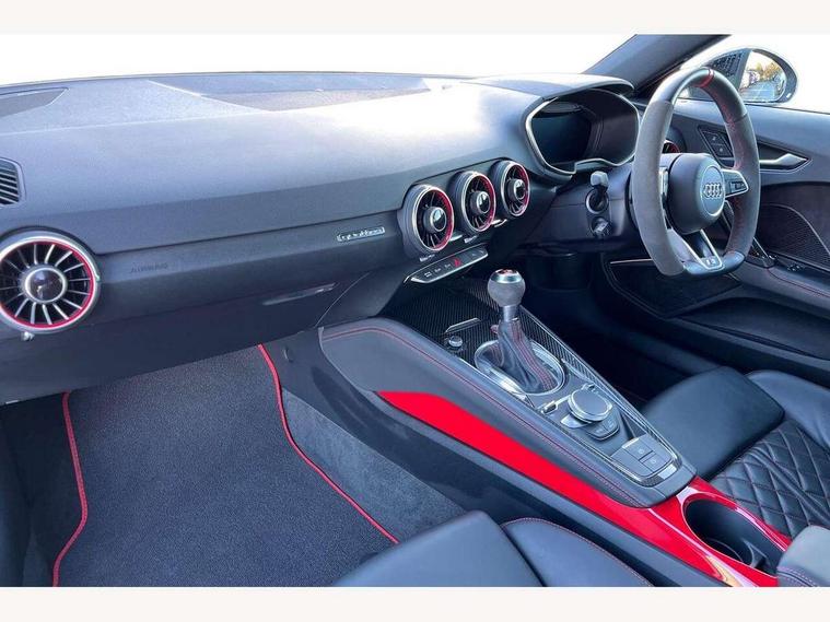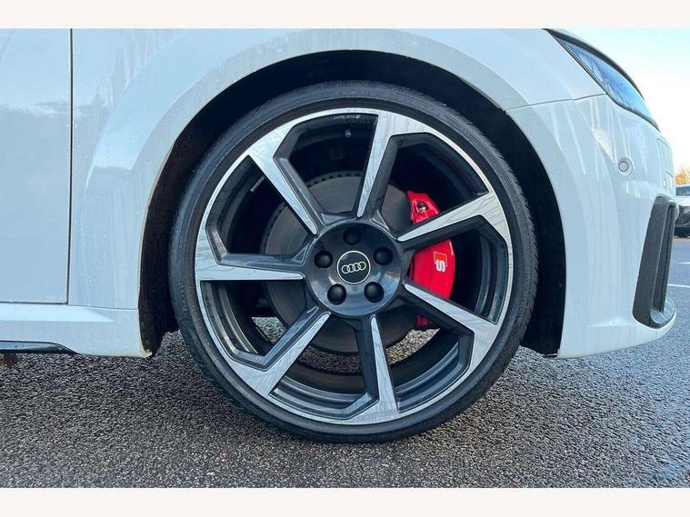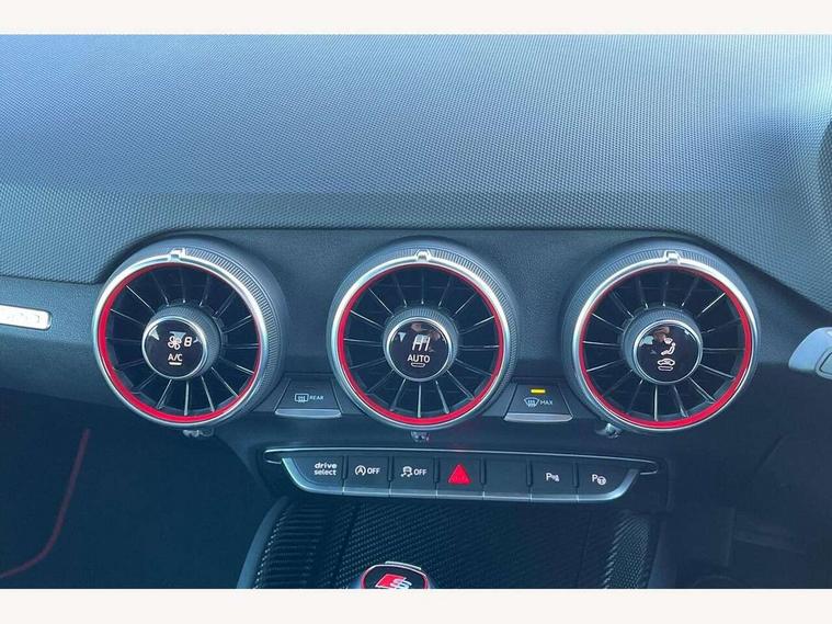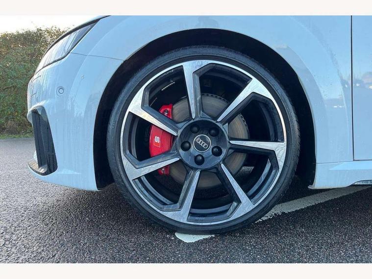 Audi drive select with 4 Pre configured modes, Audi Phone Box with wireless charging - Qi enabled compatible phone and additional bluetooth interface, Audi smartphone interface, Audi virtual cockpit - 12.3" high-resolution LCD display with fully customisable instrument cluster, Cruise control + speed limiter, Emergency call service, Progressive power assisted steering, Service interval indicator, Start/Stop system with energy recuperation, TP memo, Audi magnetic ride, TTS suspension, AM/FM radio, Bluetooth audio streaming, DAB Digital radio, Aluminium door mirror housings, Audi Beam uses LEDs to project the Audi Sport logo, Audi rings decals, Auto dimming rear view mirror, Auto headlight range control, Dark privacy glass from B-pillar backwards, Electric folding door mirrors, Electric front windows, Electrically adjustable and heated door mirrors with integrated LED side indicators, Heat insulating glass in windshield, Heat reflecting windows, LED 3rd brake light, LED daytime running lights, LED headlights with LED rear lights + dynamic rear indicators, Light and rain sensors, Rear boot, 12V socket, 2 rear seats, 3 spoke flat bottomed contour leather multi-function TTS sport steering wheel and TTS badging, 4 way electric lumbar support for driver and front passenger, Alcantara leather with 12o'clock marker and express red contrast stitching in steering wheel, Black headlining, Door sill trims with aluminium inlay and TTS logo, Fine nappa leather upholstery with S embossing + contrasting express red stitching on upholstery, Steering wheel and gear knob gaiter, Front centre armrest, Front passenger seat, Front super sports seats, Heated front seats, Integrated head restraints, ISOFIX child seat mounting for front passenger seat with airbag deactivation, Manual adjustment of seat height, fore/aft position, seat angle, seat depth and backrest angle, Rear head restraints, Rear top tether child seat ISOFIX attachment, Red piped floor mats, Split folding rear seat, Black styling package - TT, Comfort and sound pack - TT, Leather pack - TT, LED interior light pack - TT/TTS, Non smoking pack - TT/TT RS, Plus pack - TT Black Edition/Final Edition Coupe, S design body styling pack - TTS, Technology pack without Audi phone box - TT, 3 point front seat belts, ABS, ASR traction control, Curtain airbags, Driver and front passenger airbag with front passenger airbag deactivation, EDL traction control, Electromechanical parking brake, ESP, First aid kit, Front side airbags, Head airbags, Hill hold assist, Red brake callipers, Seatbelt warning, Tyre pressure loss indicator, Warning triangle, Anti theft alarm, Anti theft wheel bolts, Immobiliser, Remote central locking, Carbon inlays, 20" 7 spoke anthracite black, gloss-turned Audi sport alloy wheels, Tool kit, Tyre repair kit,