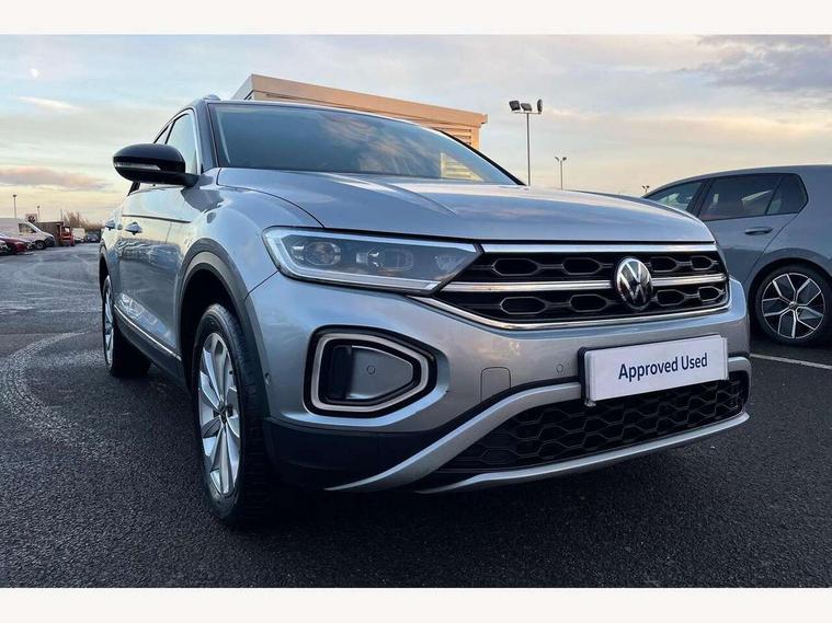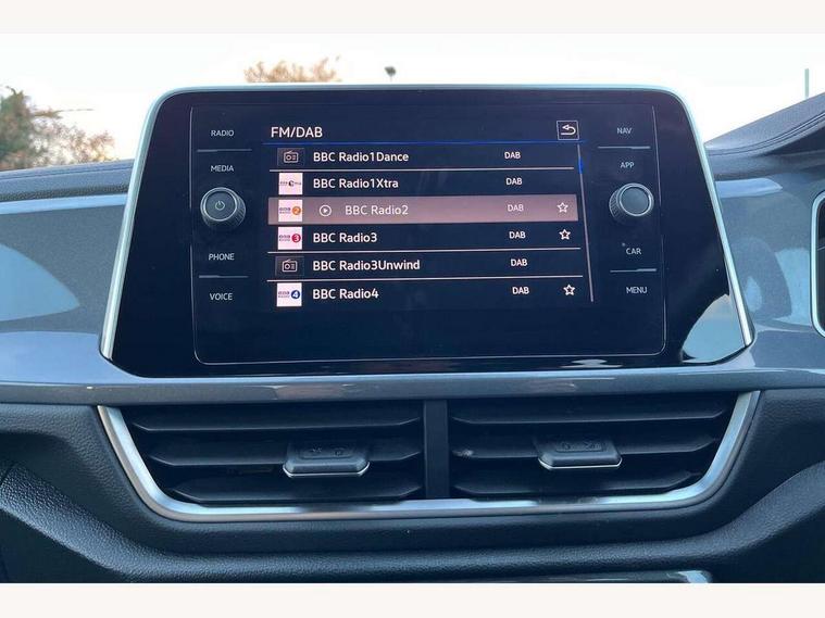 10.25" Digital cockpit pro, Bluetooth mobile phone interface, Driver alert system with fatigue detection, Driver tips and journey analysis, Emergency call service, Lane keeping system Lane Assist, Modified key software - reduce switch off time for key status change to Long no motion, Online services, Park assist including front and rear parking sensors, Service interval indicator, Tailgate/trunk lid release from outside, Think blue trainer driver tips and journey analysis, Warning sound and light for front seatbelts unfastened, Wireless app connect, Battery regeneration during braking, Start/stop function with battery regeneration, Diversity antenna for FM reception, Front and rear 6 speakers, Music playback - MP3, WMA and AAC files, Premium USB cable in choice of either Apple or Android smartphone compatibility, SD card slot, Simultaneous pairing of 2 compatible mobile devices, Title and cover art display, We Connect and We Connect Plus functionality, 3rd brake light, Auto dimming interior rear view mirror, Automatic hazard lights activation under emergency braking, Automatic headlight control with LED separate daytime running lights with coming/leaving home function, Body colour sports bumpers with silver metallic underbody fascia, Dynamic headlight range control with self adjusting whilst driving, Extended roof spoiler, Exterior mirrors aspherical on driver side, convex on front passenger side, External USB type C socket and charging sockets, Front windscreen wiper with intermittent wipe and 4 position delay, Heated rear window, LED Plus headlamps, LED rear combination lamps, LED rear number plate lights, LED tail lamp rear comination lamps, Light mode for poor weather, rain, fog or snow, Power windows with comfort operation and circuit breaker, Rain sensor, Rear exhaust tailpipe, Rear fog light on one side and reversing lights on both sides, Rear side wing doors, Rear wash/wipe with intermittent wipe setting, Remote electrically foldable door mirrors, puddle lights and reverse activated passenger's door mirror, 12V power socket in centre console, 3 rear head restraints, 3 seat bench in 2nd row, 4 load lashing points in luggage compartment, Air care climatronic air conditoning system with active combination filter and 2-zone temperature control, Chrome plated radiator grille inserts, air vent surrounds and light switch surrounds, Door and side trim panel with leatherette insert, Drawer under drivers seat, Front + rear carpet mats, Front centre armrest, Front comfort sports seats, Front cupholders x 2, Front footwell illumination, Instrument lighting, white adjustable panel illumination, Interior ambient lighting and surround lighting, Interior light delay, Isofix child seat preparation, Leather gearshift handle, LED interior light with switch off delay/dimmer and 2 front/rear LED reading lights, Load-through provision with cup holder when folded down ('Unsplit rear seat bench, split folding backrest, with centre armrest), Luggage compartment lighting, Non-folding front passenger seat backrest, Single front passenger seat, Storage compartment in left and right luggage area, Storage compartment in rear doors, Storage compartments in driver and front passenger doors, Sunvisors with illuminated vanity mirrors, Variable boot floor, height adjustable and removable, Driver assistance pack without proactive passenger protection - T-Roc, 3 point height adj front seatbelts + pretensioners, 3 point seatbelts in outer rear with ECE label, ABS, Child locks on rear doors, Driver and front passenger airbag with front passenger airbag deactivation, Driver and front passenger safety-optimised head restraints, Drivers seatbelt reminder, Electronic parking brake, Electronic Stability Control (ESC) inc EDL (Electronic Differential Lock) and ASR (Traction Control), Front and rear passengers curtain airbag system including front side airbags, Front assist with city emergency braking and pedestrian monitoring, Front seat side impact airbags, Predictive pedestrian protection, Rear disc brakes, Single tone horn, Tyre pressure loss indicator, Volkswagen roadside assistance, Alarm with interior protection, Anti-theft alarm system with interior monitoring, backup horn, and towing protection, Remote central locking with SAFELOCK, radio remote control with 2 remote control folding keys, Trims for alloy wheels,