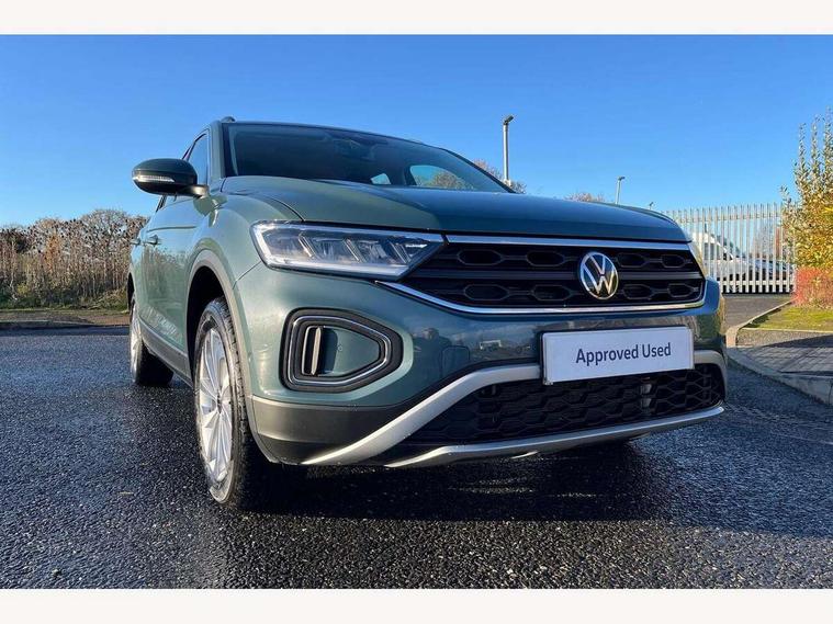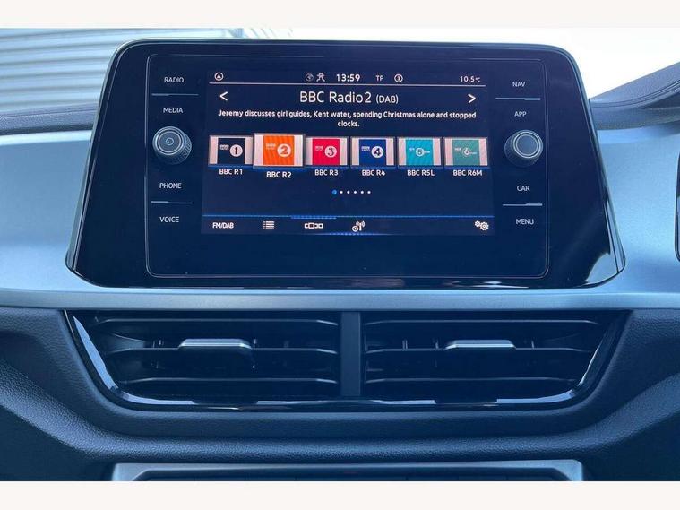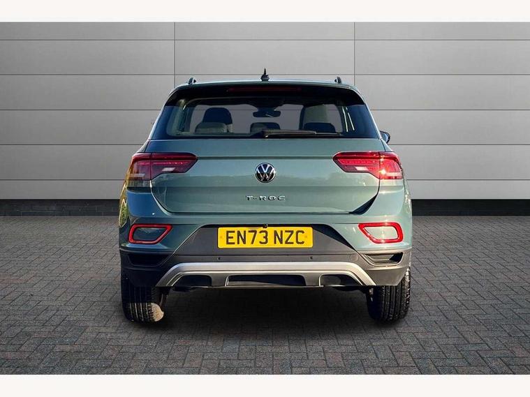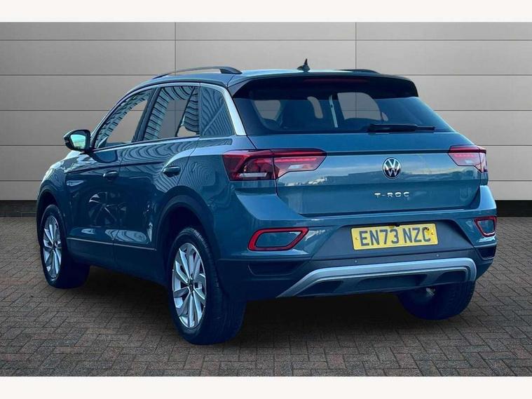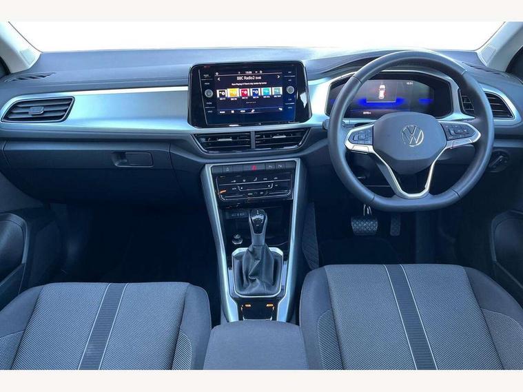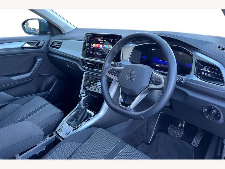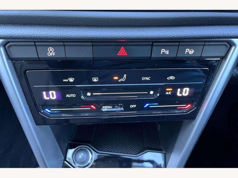 Advanced driver attention and drowsiness monitor, Bluetooth mobile phone interface, Driver tips and journey analysis, Emergency call service, Lane keeping system Lane Assist, Modified key software - reduce switch off time for key status change to Long no motion, Online services, Park assist including front and rear parking sensors, Power assisted speed sensitive steering, Service interval indicator, Tailgate/trunk lid release from outside, Think blue trainer driver tips and journey analysis, Warning sound and light for front seatbelts unfastened, Wireless app connect, Battery regeneration during braking, Front shock absorption, Rear shock absorption chassis with increased ride height, Start/stop function with battery regeneration, DAB Digital radio, Diversity antenna for FM reception, Music playback - MP3, WMA and AAC files, Premium USB cable in choice of either Apple or Android smartphone compatibility, SD card slot, Simultaneous pairing of 2 compatible mobile devices, Title and cover art display, We Connect and We Connect Plus functionality, 3rd brake light, Auto dimming interior rear view mirror, Automatic hazard lights activation under emergency braking, Automatic headlight control with LED separate daytime running lights with coming/leaving home function, Black roof rails, Body coloured bumpers and radiator grille with chrome trim and front fog lamps with chrome bezel, Body coloured exterior mirror housings and door handles, Extended roof spoiler, Exterior mirrors aspherical on driver side, convex on front passenger side, External USB type C socket and charging sockets, Front windscreen wiper with intermittent wipe and 4 position delay, Heated rear window, LED rear combination lamps, LED rear number plate lights, LED tail lamp rear comination lamps, Power windows with comfort operation and circuit breaker, Rain sensor, Rear exhaust tailpipe, Rear fog light on one side and reversing lights on both sides, Rear side wing doors, Rear wash/wipe with intermittent wipe setting, Remote electrically foldable door mirrors, puddle lights and reverse activated passenger's door mirror, 12V power socket in centre console, 3 rear head restraints, 3 seat bench in 2nd row, 4 load lashing points in luggage compartment, Air care climatronic air conditoning system with active combination filter and 2-zone temperature control, Ambient lighting with mirror logo projection, Cloth upholstery, Door and side trim panel in cloth, Drawer under drivers seat, Driver/front passenger seat height adjustment, Front centre armrest, Front comfort sports seats, Front cupholders x 2, Front reading light, Instrument lighting, white adjustable panel illumination, Interior light delay, Isofix child seat preparation, Leather gearshift handle, Load-through provision with cup holder when folded down ('Unsplit rear seat bench, split folding backrest, with centre armrest), Luggage compartment lighting, Lumbar support for driver's and front passengers seat, Non-folding front passenger seat backrest, Single front passenger seat, Storage compartment in left and right luggage area, Storage compartment in rear doors, Storage compartments in driver and front passenger doors, Sunvisors with illuminated vanity mirrors, Variable boot floor, height adjustable and removable, Driver assistance pack without proactive passenger protection - T-Roc, 3 point height adj front seatbelts + pretensioners, 3 point seatbelts in outer rear with ECE label, ABS, Child locks on rear doors, Driver and front passenger airbag with front passenger airbag deactivation, Driver and front passenger safety-optimised head restraints, Drivers seatbelt reminder, Electronic parking brake, Electronic Stability Control (ESC) inc EDL (Electronic Differential Lock) and ASR (Traction Control), Front and rear passengers curtain airbag system including front side airbags, Front assist with city emergency braking and pedestrian monitoring, Front disc brakes, Front seat side impact airbags, Hill start assist, Predictive pedestrian protection, Rear disc brakes, Two tone horn, Tyre pressure loss indicator, Volkswagen roadside assistance, Alarm with interior protection, Anti-theft alarm system with interior monitoring, backup horn, and towing protection, Remote central locking with SAFELOCK, radio remote control with 2 remote control folding keys, Pewter matt decorative inserts for intrument panel, centre console and door panels at the front, Trims for alloy wheels,