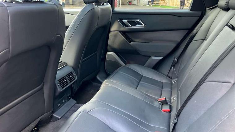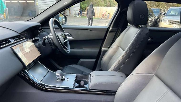 3D surround camera includes forward traffic detection and vehicle guidance, Android Auto, Apple CarPlay, Blind spot assist, Bluetooth connectivity, Brake pad wear indicator warning light, Driver condition monitor, eCall emergency call system, Front and rear parking aid, InControl remote, Land Rover InControl apps, Lane keep assist, Pivi pro with connected navigation, Rear traffic monitor, Service indicator, Speed proportional electronic power assisted steering (EPAS), Traffic sign recognition with adaptive speed limiter, Trip computer, Voice control system, Wade Sensing, Wireless device charging, 7kw on board charger, 8 speed automatic transmission, AC/DC charging, Adaptive dynamics, All terrain progress control, Coil suspension system, Home charging cable, Open differential with torque vectoring by braking, Public charging cable, Single speed transfer box, DAB radio, Steering wheel mounted controls, 3rd brake light, Acoustic laminated windscreen, Auto dimming interior rear view mirror, Auto high beam assist, Automatic headlamp levelling, Automatic headlights, Body coloured bumpers, Boot protection plate, Electric windows with one touch open/close and anti trap, Flush deployable exterior door handles, Follow me home headlights, Heated rear window with timer, Heated washer jets, Heated windscreen, LED headlights with signature DRL, Metal front tread plates, Metal load space scuff plates, Power fold, auto-dimming, heated door mirrors with memory and approach lights, Rain sensor windscreen wipers, Rear animated directional indicators, Rear fog lights, Rear side wing doors, Rear wash/wipe, Tailgate/boot lid spoiler, Trailer stability assist, Velar badge, 14 way electrically adjustable front seats with driver's memory function, 3 seat bench in 2nd row, Ambient lighting, Bright metal pedals, Carpet mats, Driver/passenger sunvisors with illuminated vanity mirrors, Ebony morzine headlining, Electrically adjustable steering column, Heated steering wheel, Isofix system on outer rear seats, Loadspace cover, Overhead lighting console, Overhead stowage for sunglasses, Passive front headrests, Rear air vents, Rear centre headrest, Single front passenger seat, Twin front cupholders, Twin sliding front centre armrest, Online pack with data plan - Velar, Power socket pack 2 - Velar, 380mm front brakes and 325mm rear brakes, 3x3 point rear seatbelts, Anti-lock braking system (ABS), Cornering brake control, Curtain airbags, Customer configurable autolock, Door side intrusion beams, Driver airbag, DSC - Dynamic Stability Control, Electronic brake force distribution, Electronic parking brake, Electronic traction control, Emergency braking, Front and rear seatbelt reminder, Hill descent control, Hill launch assist, Low traction launch, Passenger airbag, Power operated child locks, Rear airbags, Roll stability control, Side airbags, Tyre pressure monitoring system (TPMS), Global lock and unlock switch on driver door, Immobiliser, Intrusion sensor, Keyless entry, Lock only switch on front passenger door, Locking wheel nuts, Perimetric alarm, Remote central locking, All season tyres,
