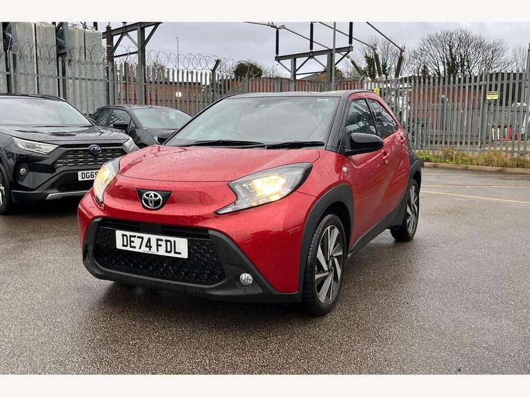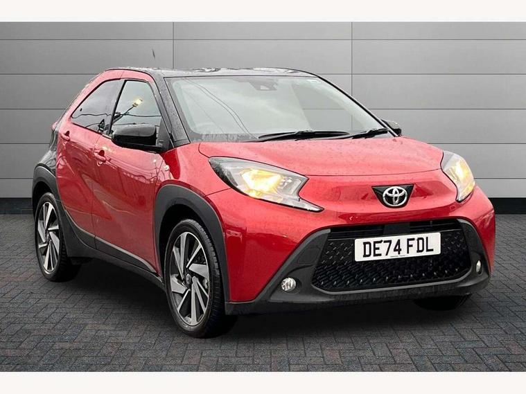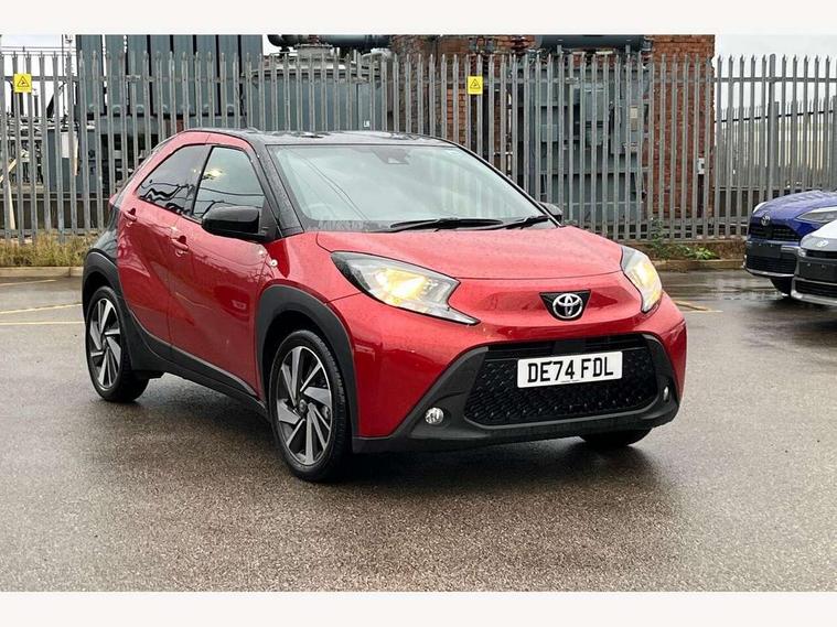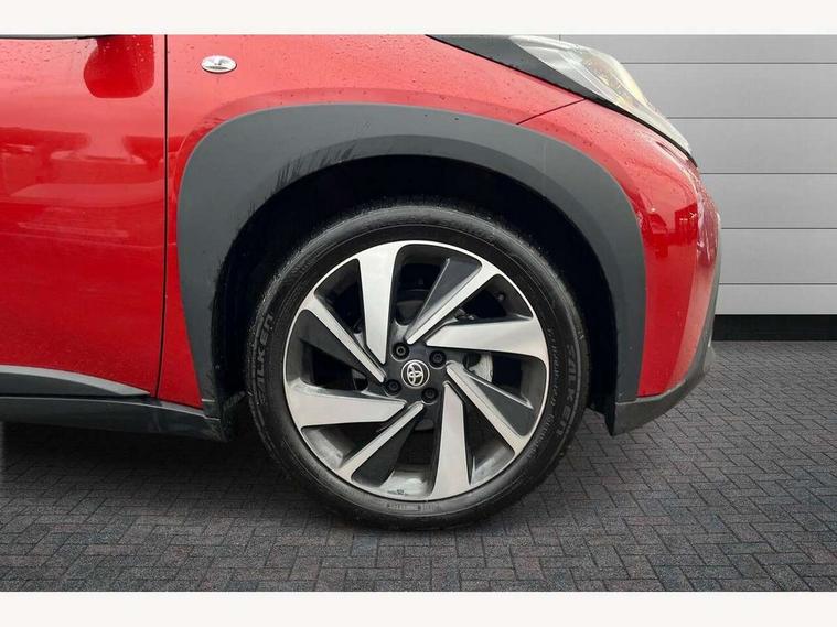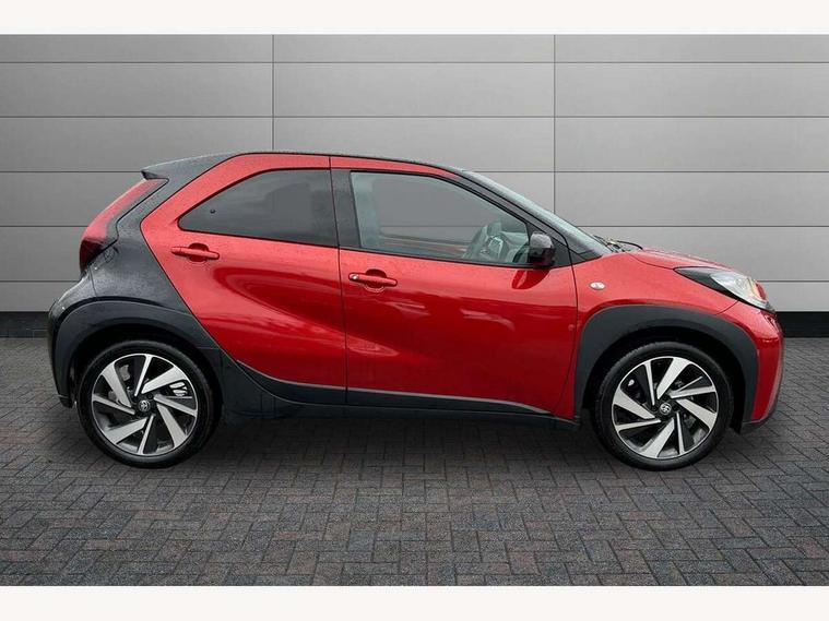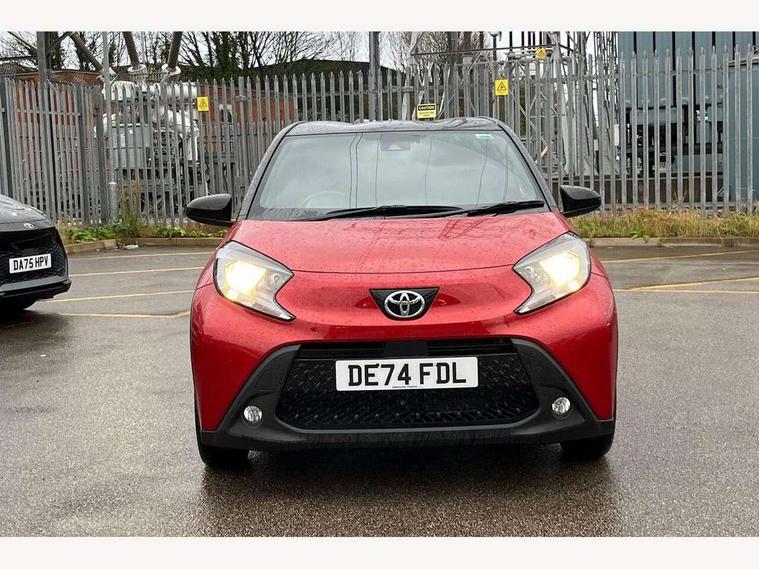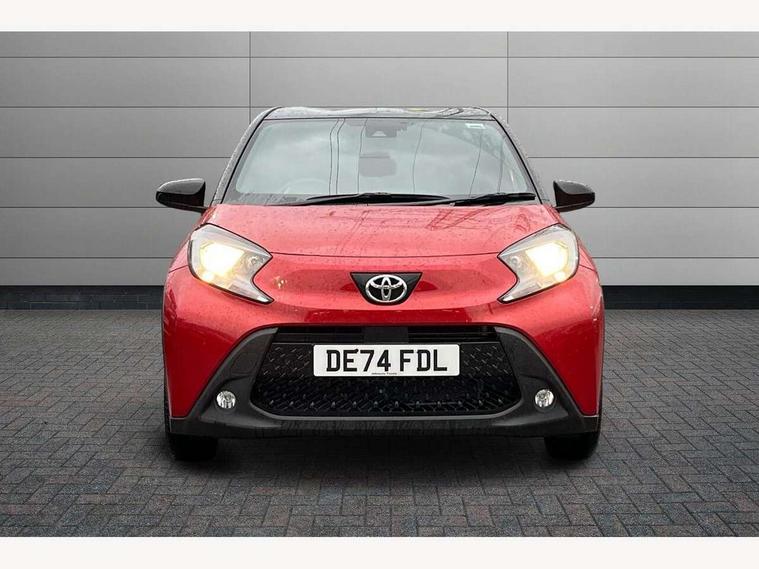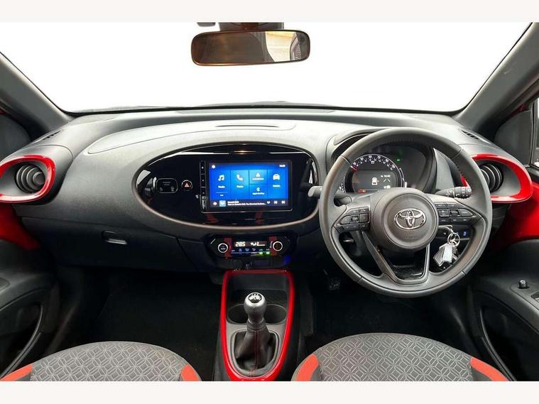 4.2" TFT colour screen, Adjustable speed limiter, Analogue speedometer, Bluetooth connectivity, Digital tachograph, Driver attention alert system, eCall emergency call system, Electric power steering, Intersection turn assist, Key reminder warning, Noise reduction kit, Pre collision system with emergency steering assist, Reversing camera with static guide lines, Smart phone integration with Apple car play/Android Auto, Speed limit display, Start and stop, Vehicle Stability Control (VSC), 4 speakers, 9" HD multimedia display touch screen with Toyota smart connect, DAB digital audio broadcast, USB connector, Auto headlights, Auto wipers, Automatic headlights cut-off, Bicycle towing hook, Black contrast roof, Black side protection mouldings, Black wheel arch mouldings, Body colour door handles, Body coloured front bumper, Boot door scuff plate, Eclipse black rear bumper, Electric heated door mirrors, Follow me home headlights, Front fog lights, Front power windows, Gloss black door mirrors, Gloss black upper front grille, Headlight cut-off reminder, LED daytime running lights, LED front light guide, LED High mounted stop lamp, Manual day/night rear view mirror, Manual headlight levelling, Pagoda roof, Power adjustable door mirrors, Power back door, Privacy glass, Projector halogen headlights, Rain sensor, Rear combination lights LED bulb type, Rear side wing doors, Rear windscreen defogger, Rear windscreen wiper, Short antenna, Variable intermittent windscreen wipers, 12v power outlet - front, 2 seat bench in 2nd row, 3 spoke leather steering wheel, 50/50 split folding rear seat, Adhesive roof headlining, Adjustable speed limiter switch on steering wheel, Audio and telephone switches on steering wheel, Auto air conditioning, Black insert on steering wheel, Black roof lining, Boot light, Centre room light, Chrome interior door handles, Chrome surround on air conditioning buttons, Clean air filter, Console box storage in body color, Fabric upholstery, Floor mats, Front and rear cup holders, Front head rest deco art, Front head restraints, Height adjustable driver seat, Intelligent adaptive cruise control switch on steering wheel, ISOFIX child restraint system on rear seats, Lane departure alert switch on steering wheel, Leather gearshift knob, Manual tilt steering wheel, Manually reclining and sliding driver seat, Manually reclining and sliding front passenger seat, Multimedia switches on steering wheel, Pollen filter, Rear door pockets, Rear head restraints, Satin silver insert on gear shift knob, Single compartment glovebox with lights, Single front passenger seat, Soft tonneau cover, Sun visors with mirror on driver and passenger side, Voice recognition switch on steering wheel, Toyota safety sense pack - Aygo X, Anti lock braking system + Electronic brake force distribution, Child safety door lock, Emergency brake light signal (EBS), Hill start assist control (HAC), Passenger airbag on/off switch, Seat belt reminder for front and rear seats, Supplement restraints system (SRS) - 6 airbags, Traction control, Tyre pressure warning system, Immobiliser, Remote power door locks, Black wheel centre caps, Tyre repair kit,