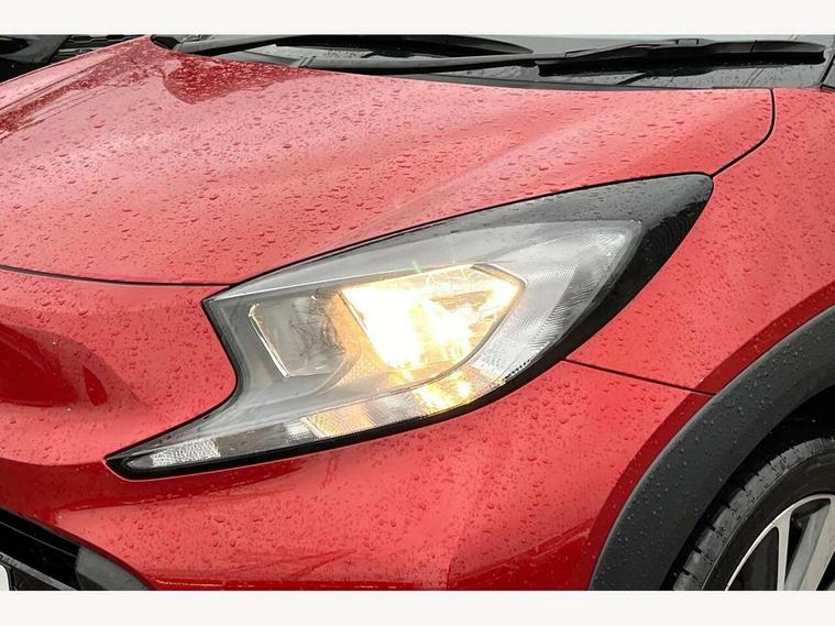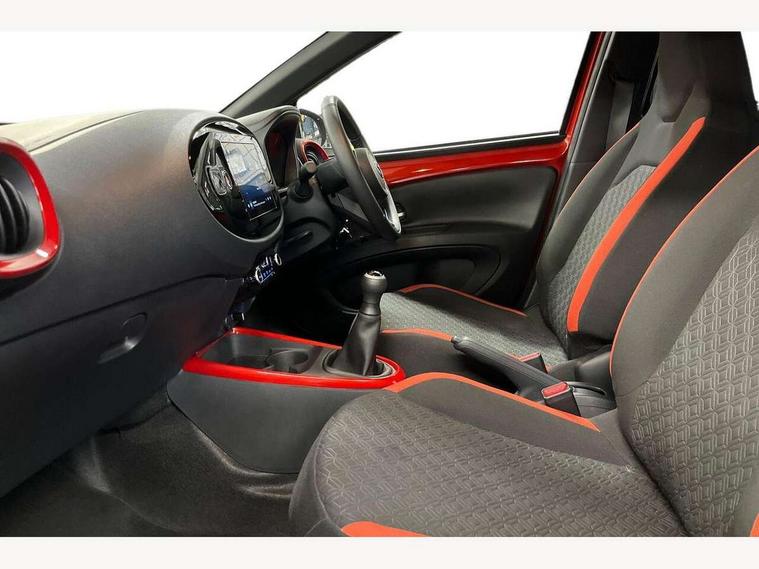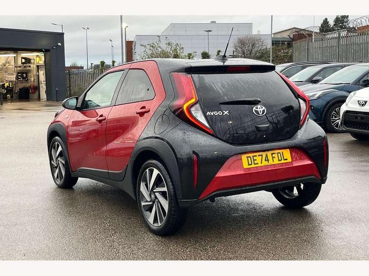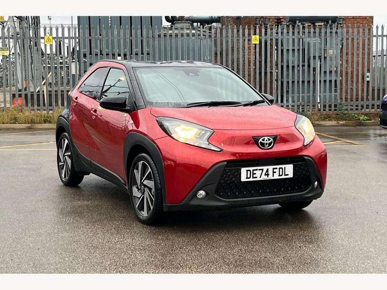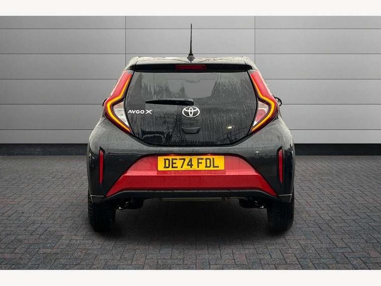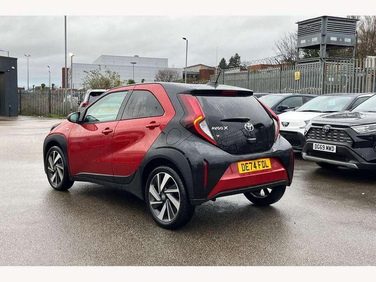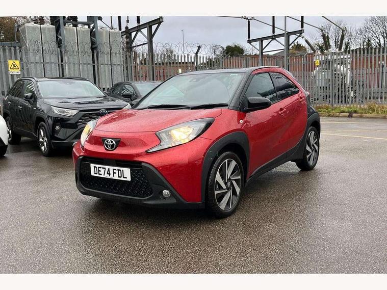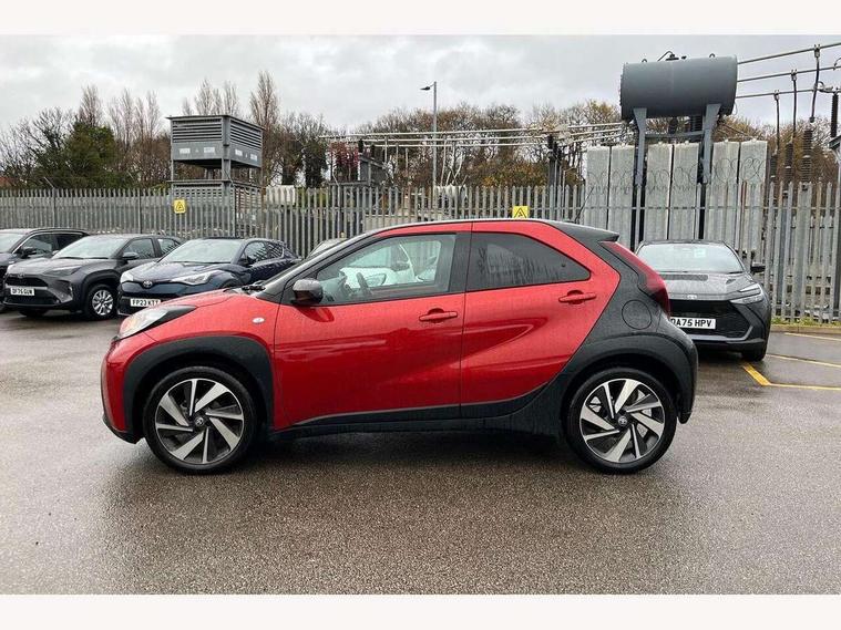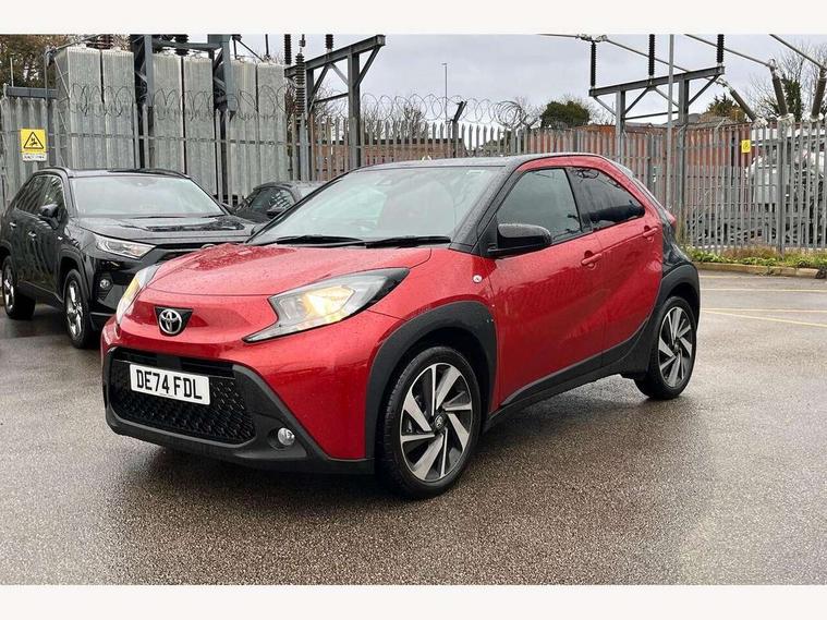 4.2" TFT colour screen, Adjustable speed limiter, Analogue speedometer, Bluetooth connectivity, Digital tachograph, Driver attention alert system, eCall emergency call system, Electric power steering, Intersection turn assist, Key reminder warning, Noise reduction kit, Pre collision system with emergency steering assist, Reversing camera with static guide lines, Smart phone integration with Apple car play/Android Auto, Speed limit display, Start and stop, Vehicle Stability Control (VSC), 4 speakers, 9" HD multimedia display touch screen with Toyota smart connect, DAB digital audio broadcast, USB connector, Auto headlights, Auto wipers, Automatic headlights cut-off, Bicycle towing hook, Black contrast roof, Black side protection mouldings, Black wheel arch mouldings, Body colour door handles, Body coloured front bumper, Boot door scuff plate, Eclipse black rear bumper, Electric heated door mirrors, Follow me home headlights, Front fog lights, Front power windows, Gloss black door mirrors, Gloss black upper front grille, Headlight cut-off reminder, LED daytime running lights, LED front light guide, LED High mounted stop lamp, Manual day/night rear view mirror, Manual headlight levelling, Pagoda roof, Power adjustable door mirrors, Power back door, Privacy glass, Projector halogen headlights, Rain sensor, Rear combination lights LED bulb type, Rear side wing doors, Rear windscreen defogger, Rear windscreen wiper, Short antenna, Variable intermittent windscreen wipers, 12v power outlet - front, 2 seat bench in 2nd row, 3 spoke leather steering wheel, 50/50 split folding rear seat, Adhesive roof headlining, Adjustable speed limiter switch on steering wheel, Audio and telephone switches on steering wheel, Auto air conditioning, Black insert on steering wheel, Black roof lining, Boot light, Centre room light, Chrome interior door handles, Chrome surround on air conditioning buttons, Clean air filter, Console box storage in body color, Fabric upholstery, Floor mats, Front and rear cup holders, Front head rest deco art, Front head restraints, Height adjustable driver seat, Intelligent adaptive cruise control switch on steering wheel, ISOFIX child restraint system on rear seats, Lane departure alert switch on steering wheel, Leather gearshift knob, Manual tilt steering wheel, Manually reclining and sliding driver seat, Manually reclining and sliding front passenger seat, Multimedia switches on steering wheel, Pollen filter, Rear door pockets, Rear head restraints, Satin silver insert on gear shift knob, Single compartment glovebox with lights, Single front passenger seat, Soft tonneau cover, Sun visors with mirror on driver and passenger side, Voice recognition switch on steering wheel, Toyota safety sense pack - Aygo X, Anti lock braking system + Electronic brake force distribution, Child safety door lock, Emergency brake light signal (EBS), Hill start assist control (HAC), Passenger airbag on/off switch, Seat belt reminder for front and rear seats, Supplement restraints system (SRS) - 6 airbags, Traction control, Tyre pressure warning system, Immobiliser, Remote power door locks, Black wheel centre caps, Tyre repair kit,