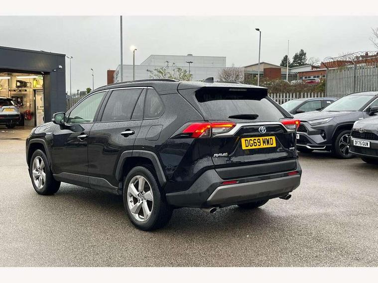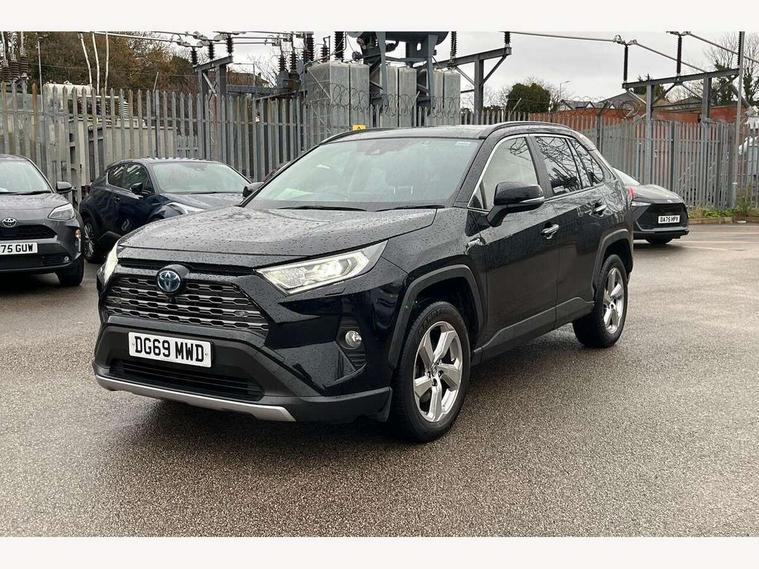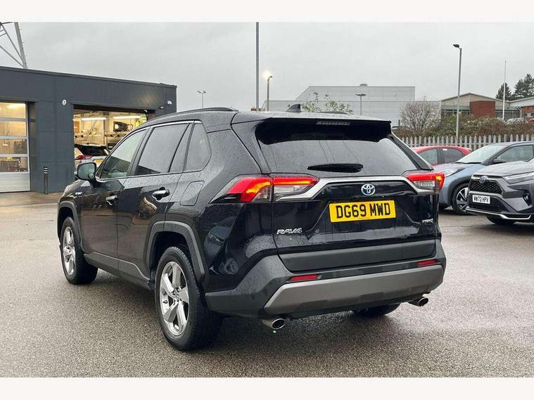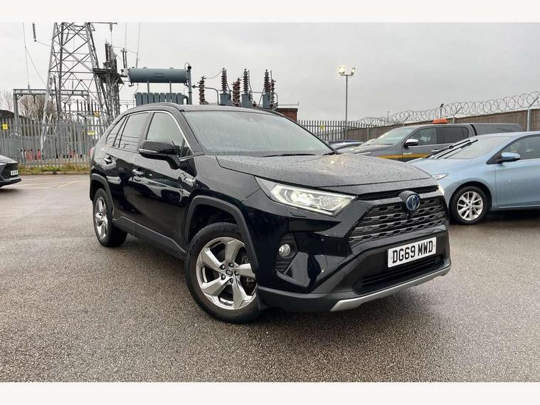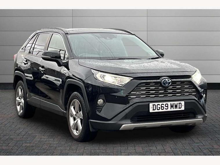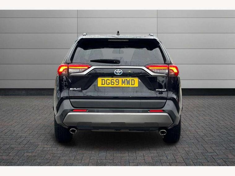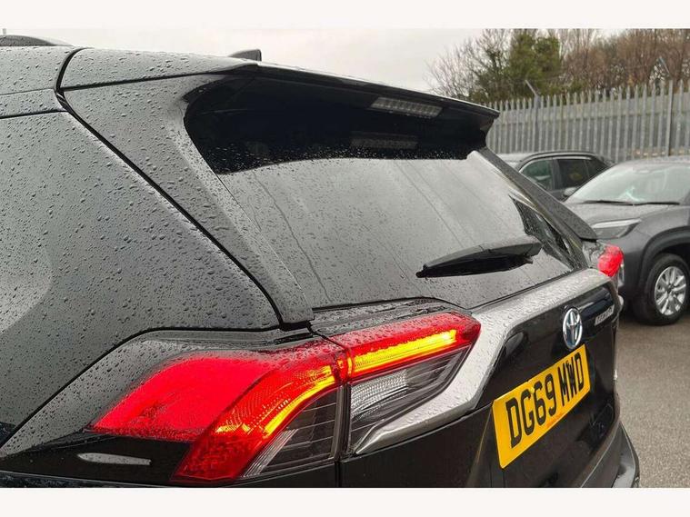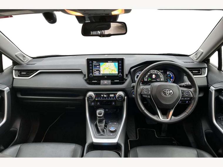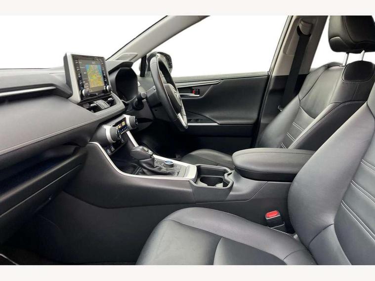 7" colour TFT display, Adaptive cruise control with lane trace assist, Adjustable speed limiter, Blind spot monitoring with rear cross traffic alert, Bluetooth system, Cyclist Detection, Drive mode selector, eCall emergency call system, ECO-driving indicator, Electric power steering, Hybrid system indicator, Lane departure warning system, Lights on warning, Low screen washer fluid warning, Night Time Pedestrian Detection, Pedestrial detection, Power boot opening and closing, Rear parking camera, Rear parking sensors, Remote boot door release in cabin, Tachometer, Touch 2 Go navigation system including 3D maps and voice control, Traffic sign recognition, Trip computer, Voice control system, Vehicle Stability Control (VSC), 6 speakers, 8" Multimedia display touch screen, Auxiliary socket for external MP3 player, DAB audio, Steering wheel mounted audio controls, Toyota touch media system, USB connection, Auto dimming interior mirror, Auto high beam, Automatic headlamp levelling, Automatic headlights, Automatically retractable door mirrors, Black roof rails, Body colour door handles, Body colour door mirrors, Body colour rear spoiler, Body coloured bumpers, Body coloured Shark-fin antenna, Door mirror puddle lights, Electric adjustable door mirrors, Emergency brake-light signal (EBS), Follow me home headlights, Front fog lights, Headlight cleaners, Heated door mirrors, LED daytime running lights, LED High mounted stop lamp, LED rear lights, Meshed upper front grille, Power front windows, Power rear windows, Privacy glass, Projector LED headlights, Rear screen wiper - intermittent, Rear windscreen defogger, Silver front under-run, Silver rear under-run, Trailer Sway Control, Turning signal integrated indicators in door mirrors, Windscreen wiper de-icer, 3 rear headrests, 60/40 split fold rear seat back, Boot light, Clean air filter, Driver and front passenger personal light, Driver and front passenger Whiplash Injury Lessening seats, Driver and passenger sunvisors with illuminated vanity mirrors, Driver seat memory function, Dual sided deck board in boot, Dual zone automatic air conditioning, Floor mats, Folding rear centre armrest, Front and rear bottle holders, Front centre armrest, Front footwell lights, Front headrests, Front seat and rear pockets, Front/rear roof mounted assist grips, Grey roof lining, Heated driver and front passenger seats, Heated steering wheel, Isofix child seat preparation, Leather gear shift with chrome surround, Leather upholstery, Light blue ambient lighting on front cupholders and open tray, Manual telescopic and tilt 3-spoke leather steering wheel with Chrome insert, Manually reclining and sliding front passenger seat, Pollen filter, Power height-adjustable sliding reclining and lumbar support for driver seat, Rear coat hooks, Rear door armrests, Rear passenger air vents, Reclining rear seats, Satin chrome interior door handles, Sunglasses holder, Parking pack - Rav4, 3x3 point rear seatbelts, ABS/EBD, Adjustable front driver and passenger seat belt extender, Brake assist function, Child proof door locks, Collision mitigation braking system, Driver/Front Passenger airbags, Driver/front passenger side airbags, Drivers knee airbag, Electronic parking brake, Electronic Stability Programme (ESP), Emergency brake light system (EBS), Front and rear curtain airbags, Front and rear seatbelt reminder, Hill start assist, Passenger airbag cut-off device, Seatbelt pretensioners with load limiters, Traction control, Tyre pressure warning, Alarm/immobiliser, Glass-breaking alarm sensors, Light - on and Key in reminder, Remote central locking, Smart entry + Smart start, Speed sensitive auto door locking, Tilt detection sensors, Piano black centre console with silver insert, Soft-touch black lower dashboard, Soft-touch black upper dashboard with silver insert, Full size spare wheel,