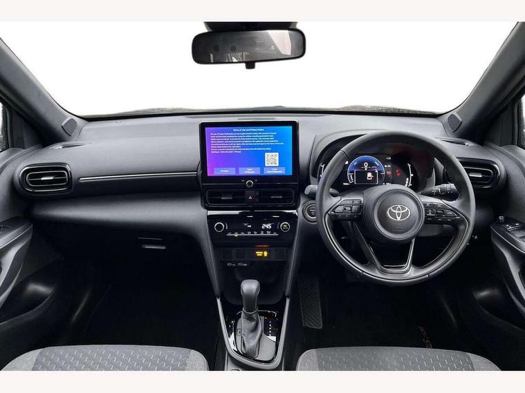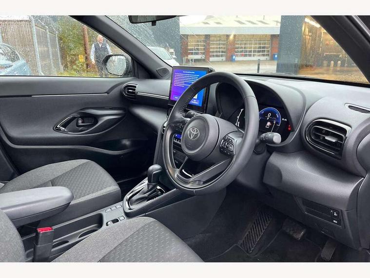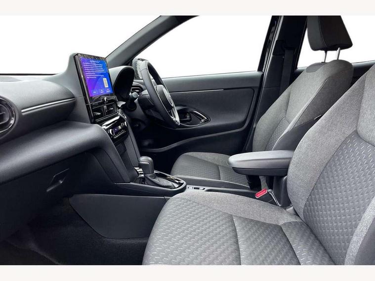 10.5" Multimedia display screen, 7" Multi information display screen, Adaptive cruise control, multi info switches on steering wheel, Adjustable speed limiter, Bluetooth connectivity, Color multi-information display, Digital speedometer, Digital tachometer, Drive mode selector, Driver attention alert system, eCall emergency system, Electric power steering, Emergency driving stop system, Full range intelligent adaptive cruise control, Hybrid system indicator, Intersection turn assist, Key reminder warning, Lane trace assist, My T Connected services, Pre-collision system enhanced with emergency steering assist, Reversing camera, Road sign assist - RSA, Static guide lines on reversing camera, Telephone switch on steering wheel, Wireless Smartphone integration incl Apple CarPlay, Steering assisted vehicle stability control, 6 speakers, DAB Digital radio, Front USB Type-C connector, Front USB-C device charger, 3rd brake light, Acoustic windscreen glass, Anti-jam protection on power windows, Auto high beam [AHB] with on/off switch, Auto intermittent windscreen wipers, Automatic headlights, Automatic headlights cut-off, Black door moulding, Black lower front grille, Black protection moulding on side doors, Black roof rails, Black upper front grille, Black wheel arch mouldings, Body colour door handles, Body colour front bumper, Body colour rear bumper, Electric adjustable heated door mirrors, Follow me home headlights, Front and rear electric windows with auto up/down function, Headlight cut off reminder, Indicators integrated on door mirrors, Intermittent rear wiper, LED daytime running lights guide, LED front fog lights, LED front light guide, LED Indicators, LED projector headlights, LED rear lights with sequential indicators, Manual day/night rear view mirror, Manual headlight levelling, Manually retractable door mirrors, Noise reduction layer on windscreen, Pre wiring for towing hook, Privacy glass, Rain sensor, Rear side wing doors, Rear spoiler, Rear window defogger, Shark fin antenna, 12v power outlet - front, 2x Rear coat hooks, 3 seat bench in 2nd row, 3 spoke leather steering wheel, 40/60 split deckboard, 40:20:40 split folding rear bench seat, Adjustable rear headrests, Adjustable speed limiter switch on steering wheel, Auto air conditioning, Black roof lining, Boot light, Central armrest, Driver and front passenger personal lights, Driver and front passenger Whiplash injury Lesseing seats, Fabric door trim, Fabric upholstery, Front console box, Front cup holders, Front door pockets, Front head restraints, Front/rear assist grips, Gear shift indicator, Gloss black surround on gear shift console, Height adjustable driver's seat, Height adjustable front passenger seat, Hooks for luggage holding belts, ISOFIX child restraint system, Lane departure alert switch on steering control, Leather gearshift, LED centre room light, Manual telescopic and tilting steering wheel, Mirror on driver and passenger sun visor, Pollen air filter, Power adjustable lumbar support on driver seat, Rear cup holders, Rear door pockets, Rear head restraints, Remote air-conditioning system, Single compartment glovebox, Single front passenger seat, Soft tonneau cover, Storage box under boot floor, Voice recognition switch on steering wheel, Yaris cross floor mats, 3x3 point rear seat belts, ABS+EBD+Brake assist, Driver and passenger central airbags, Driver and passenger front airbags, Driver and passenger side airbags, Electronic parking brake, Emergency brake light system (EBS), Front seat belt reminder, Hill start assist control (HAC), Passenger airbag on/off switch, Pre-collision system with pedestrian and cyclist detection, Rear door child safety locks, Rear passenger side airbags, Rear seat belt reminder, Traction control, Tyre pressure warning system, Immobiliser, Intrusion alarm, Keyless smart entry with push button start, Power door locks, Power passenger window lock, Remote door lock, Gloss black side air vent surrounds, Tyre repair kit,