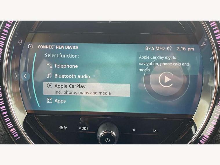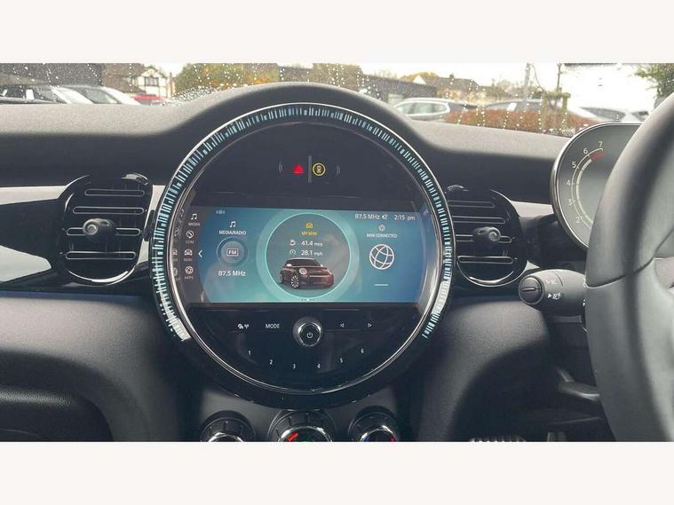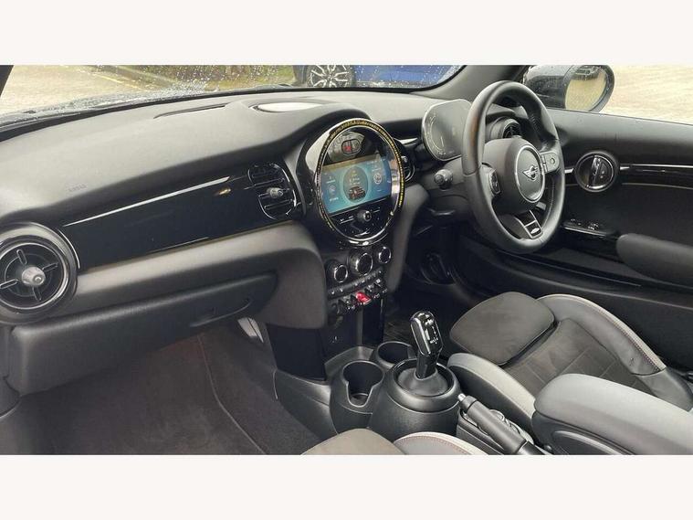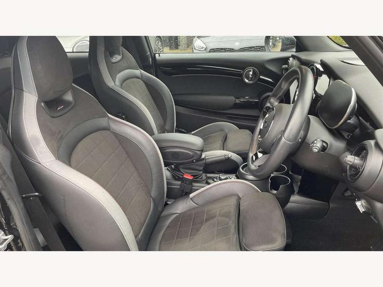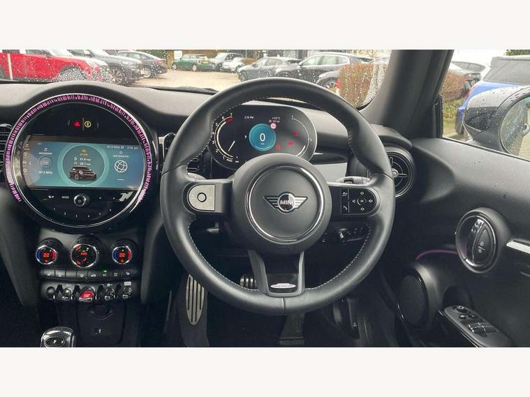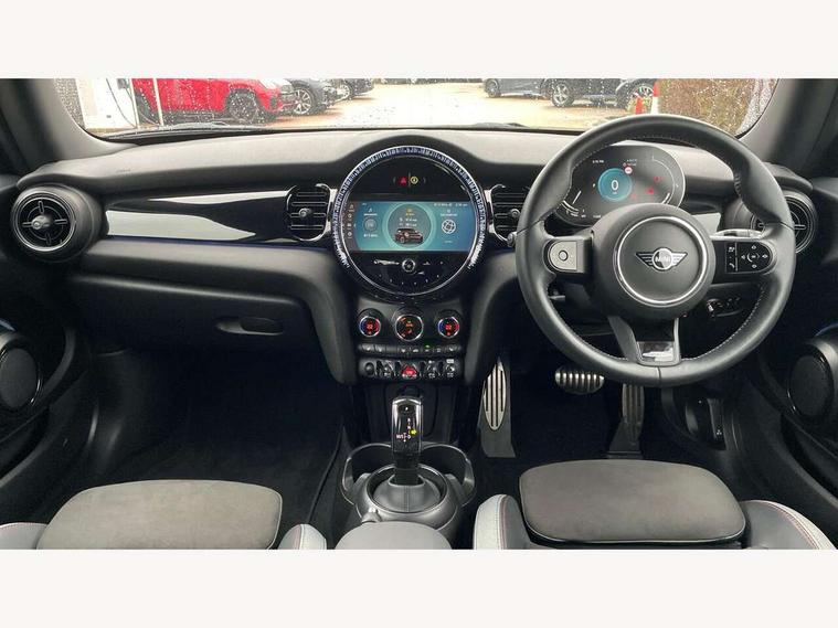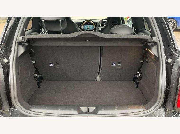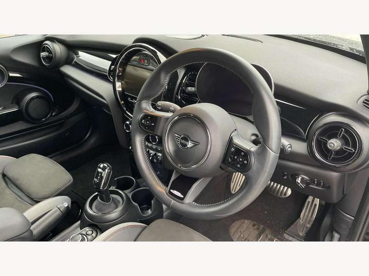 Apple CarPlay, Automatic start/stop function with brake energy recuperation, Compatible mobile phone bluetooth with audio streaming, Digital dashboard display, Electro-mechanical speed dependant steering assistance, Flexible car sharing preparation, Instrument cluster, Mini E-call, MINI TeleServices, On board computer, Service interval indicator, Double Vanos system, Fully variable valve control, High precision injection, Intelligent adaptive suspension, Performance Control, Steptronic transmission with double clutch, 4 speakers in front door trims and underneath front seats, 8.8" touchscreen with LED ring, FM tuner and DAB digital radio, 3rd brake light, Automatic headlight activation switch, Dynamic brake lights, Electric front windows, Heated rear window, Heated windscreen washer jets, JCW Aerodynamic kit - Front and rear bumpers with sporty JCW styling and part-painted side sills with MINI John Cooper Works door sill finishers, John Cooper Works rear spoiler, LED headlight with closed ring and daytime driving lights, Metal door sill strips with MINI imprint, Model logo Cooper on right of tailgate, Rain sensor window wipers, Rear fog lights, Rear LED lights with union jack design, Rear window wiper, Side scuttle panel with integrated indicator, Sun/heat protection glass, White indicator lenses, 12V Accessory socket in centre console, 2 seat bench in 2nd row, 4 lashing eyes in luggage compartment, 60/40 split folding rear seat, Anthracite headliner including grab handles and clothes hooks, Carbon black colour line - Knee roll and door armrest, Chrome interior highlights, Cupholders, Front and rear isofix with front passenger airbag deactivation, Front floor mats in velour, Glove compartment, Height and length steering column adjustment, Integrated headrests, adjustable thigh support for seats, Interior lighting with 12 different colours across the dashboard, underneath door bezel with illuminated laser-engraved design on central display, Leatherette gearshift lever and handbrake gaiters, LED reading lights, vanity mirror lights, front foot well light and spotlight on front seats, Mechanical seat adjustment - forward/back & backrest for front seats and driver seat height adjust, Multifunction steering wheel, Passenger seat height adjuster, Single front passenger seat, Storage compartments in doors, Sunvisors with vanity mirrors, Walknappa leather steering wheel with grey seam and John Cooper Works badge on Piano Black lower steering wheel spoke, Driving assistant pack - Mini Hatchback, Piano black exterior pack - Mini Hatchback Cooper, Premium pack - Hatchback, 3 point seatbelts on all four seats, 6 Airbags - front, side, head and seat belt tensioners, Anti-lock braking system (ABS), DSC - Dynamic Stability Control, Front and rear disc brakes, Single tone fanfare horn, Tyre pressure monitoring system, Alarm system with tilt sensor, monitoring doors, bonnet interior and tailgate, Electronic vehicle immobiliser, Start/stop toggle with keyless go, Piano black interior trim, Tool kit,