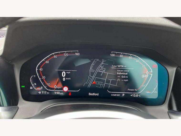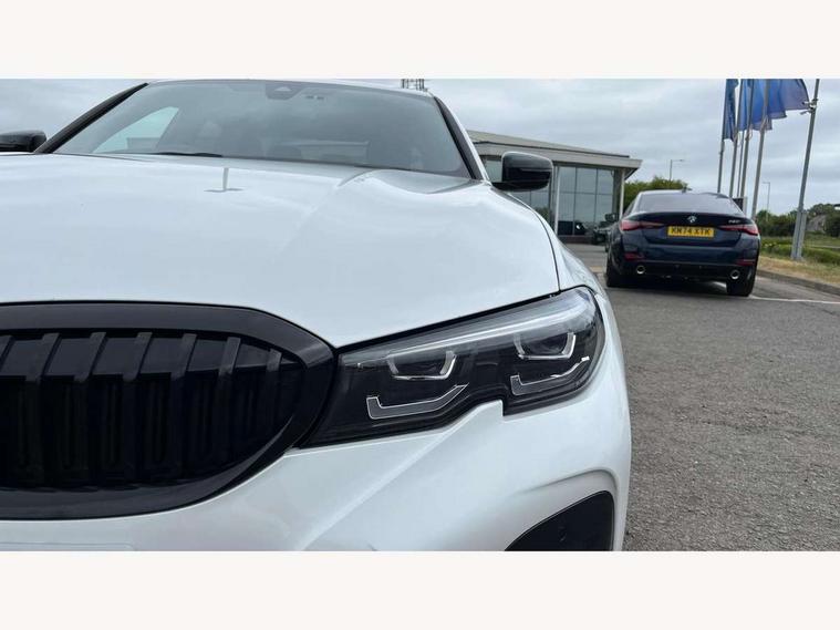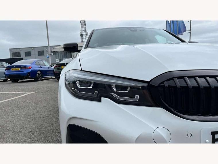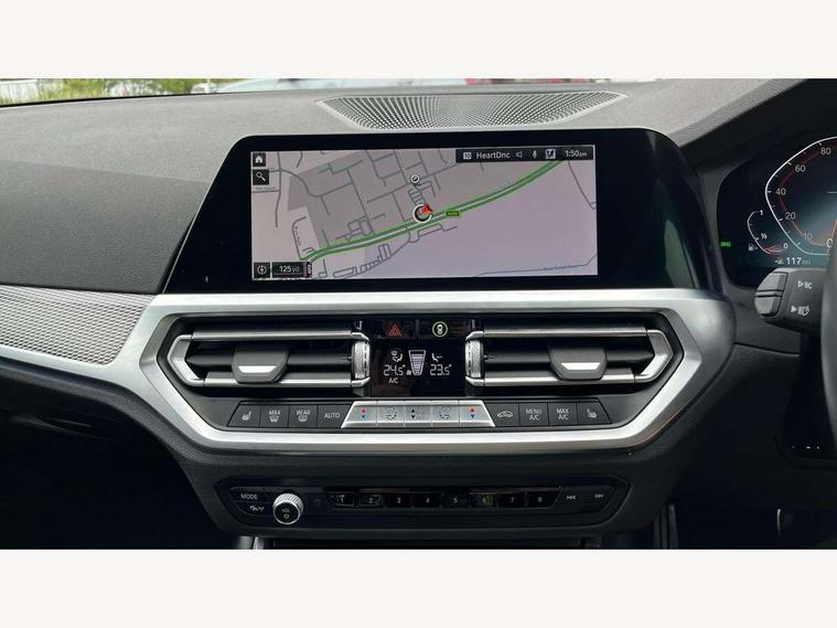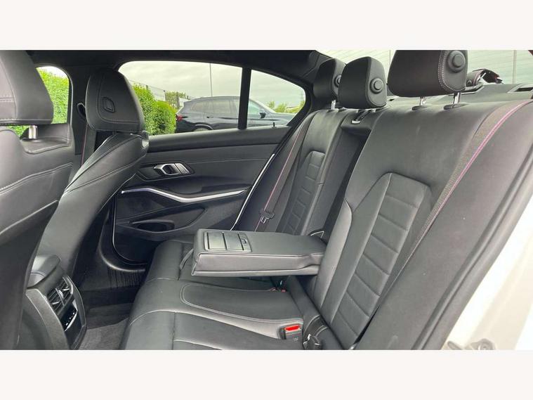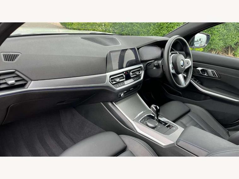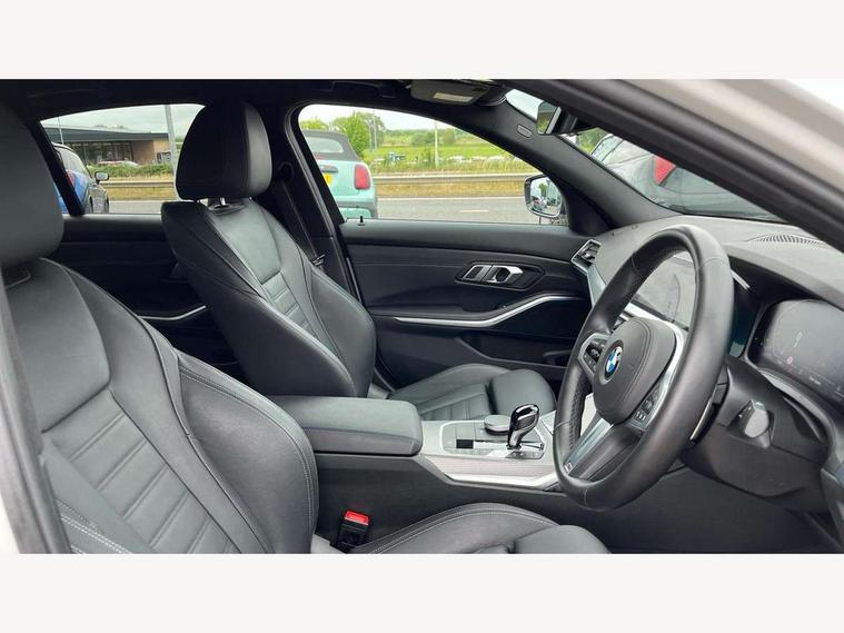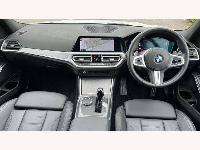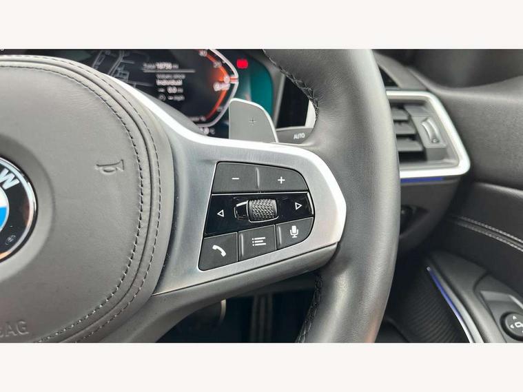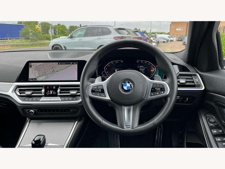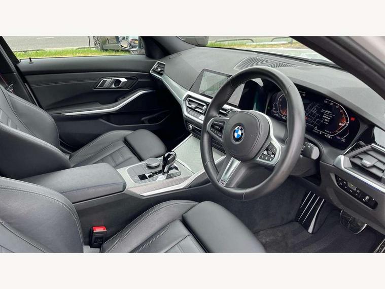 Active guard plus, Attentiveness assist, Auto start-stop, BMW iDrive controller on centre console, BMW Live Cockpit Professional Nav with 12.3" instrument display + 10.25" display, Intelligent Voice Assist, BMW OS 7, HDD, 2USB, 4G LTE connect, BMW service history, BMW Teleservices, Brake pad wear indicator in front and rear, Check Control warning system for monitoring of lights and door/luggage compartment open warning, Condition based service, Cruise control with brake function + speed limiter, Electric power steering with Servotronic steering optimised at all speed ranges, Instrument cluster with speedometer with mph readout, tachometer, fuel gauge and oil temperature gauge, Integrated owners handbook, Oil sensor for level and grade, warning by check control system, On board computer - average speed+fuel consumption, service interval, clock/date, odometer/trip meter, outside temperature display and ice warning, Optimum shift indicator, Personal Profile - automatic lock when driving away selectable, Variable sport steering, Balanced 50/50 weight distribution, Battery cut-out switch, Drive performance control - ECO PRO, comfort and sport modes, Larger capacity fuel tank, M sport suspension, Petrol Particulate Filter, Stroke dependent dampers, DAB tuner, Electronic service booklet, Acoustic glazing, Active airstream chrome frame kidney grille with 8 high gloss black vertical slats, Automatic headlight beam throw control with load dependent regulating reaction, dynamic compensation of braking dive and acceleration squat, Black roof mouldings, Body colour door handles, Body colour front and rear bumpers, Body colour fuel filler flap, Body colour mirror caps with bottom segment in matt black, Dynamic brake lights, Electric windows - front and rear, with open/close fingertip control, anti-trap facility and comfort closing, Exhaust tailpipe - split left and right, Exterior mirrors - electrically folding with anti-dazzle, Fading support, Front and rear bumper system with replaceable deformation elements, Front black door sill finishers with BMW designation, Green tinted heat protection glazing, High gloss shadow line exterior trim, Interior rear view electrochromatic mirror with automatic anti dazzle function, LED daytime running lights, LED front fog lights, LED third brake light, Lightweight engineering, M designation on front side panels, left and right, Matt black exterior B pillar, Model designation on right side of tailgate, Rain sensor with automatic headlight activation, Rear boot, Rear side wing doors, Shark fin antenna, Two part LED tailights in L-shape with components in smoked glass, brake light, LED turn indicator and rear fog light, Visible VIN plate, Welcome lights in interior and door handle area, Windscreen wipers with integrated washing jets, xDrive designation on left tailgate, 12V power socket in front storage compartment, 2 front cupholder in centre console with clamping elements and matt black inlay, 3 rear seats with non folding headrests with 3 point seat belts, 3 seat bench in 2nd row, 3 zone automatic air conditioning, 4 pieces lashing eyelets in luggage compartment, 40:20:40 split folding rear seat with loading system, Ambient lighting with welcome carpet light, Anthracite headlining, Armrest integrated in front and rear door trim + front centre console armrest, Backrest width adjustment, Centred top Luggage compartment lights, Four grab handles integrated in roof lining, Front and rear door exit lighting (left / right), Front and rear door pockets, Front and rear reading lights, Front and rear velour floor mats, Front head restraints, Front sport seats, Heated front seats, Height adjustable mechanically and infinitely variable steering column, Illuminated armrest storage compartment, Illuminated glove compartment with separate small compartment, Interior lighting - front centre over interior mirror with soft light, rear centre and front and rear footwell lighting, M sport leather steering wheel, Make-up mirror lights, Rear centre armrest with 2 cupholders, Rear centre console with storage compartment and ventilation grille, Single front passenger seat, Sunvisors with vanity mirrors and ticket pocket, Toolkit located in luggage compartment, Connected pack professional - 3 Series Saloon/Touring, M sport exterior styling pack - 3 Series Saloon/Touring, Parking assistant pack - 3 Series, 2 tone horn, BMW emergency call, Brake energy regeneration, Braking pre-tensioning, Child proof locking system in rear door, Child seat ISOFIX attachment rear outer seats, Coasting in idle in ECO PRO mode, Crash sensor activating of airbags, Unlocking doors, hazard warning lights, fuel cut off, interior lighting+activation of safety battery terminal clamp, Driver and front passenger side airbags, integrated in the door side seat backrest bolsters for all seat variants, Driver/Front Passenger airbags, Dry braking, Dynamic brake control, Dynamic stability control + (DSC+) - Anti-lock Braking System (ABS) with brake assist and cornering brake control + Automatic Stability Control (ASC), Dynamic Traction Control - DTC, Electric parking brake including automatic hold function and automatic release of the parking brake when driving off, Electronic differential lock control (EDLC), Front passenger manual airbag deactivation, Head airbags for all 4 outer seats, Hill start assist, Seat belt security check for driver and front passenger, Side impact protection, Three 3 point seat belts on all seats including front belt stopper, pyrotechnic belt tensioners and belt force limiters, Tyre pressure monitoring with three level warning strategy, Ventilated front and rear disc brakes, Warning triangle and first aid kit, Alarm system (Thatcham 1) with remote control and electronic engine immobiliser, Central locking switch for all doors, fuel filler cap and luggage compartment, Remote control with integrated key one button open/close vehicle and windows, sole opening of the luggage compartment lid and pani