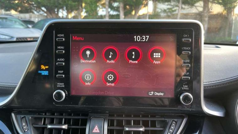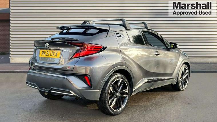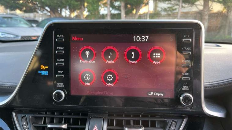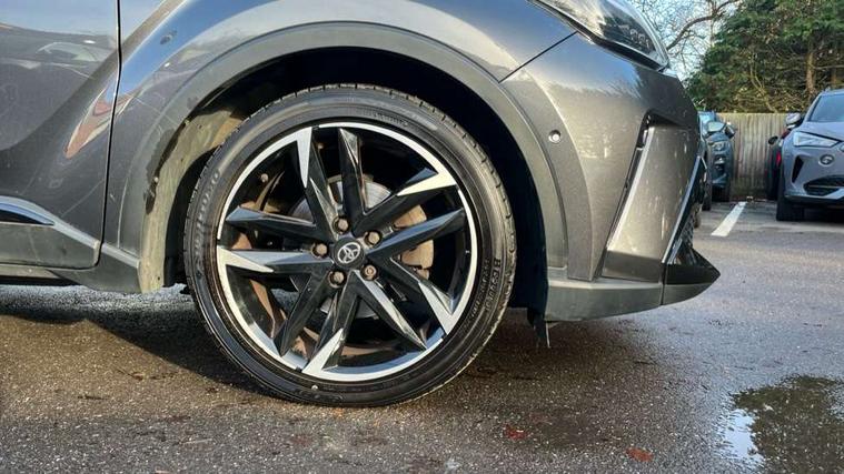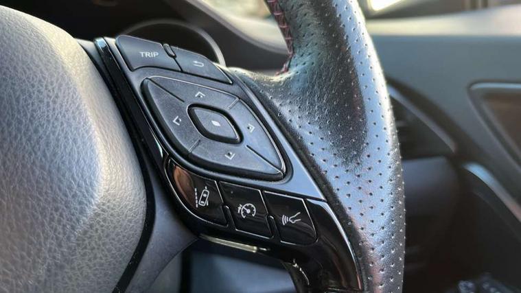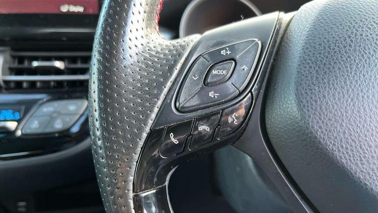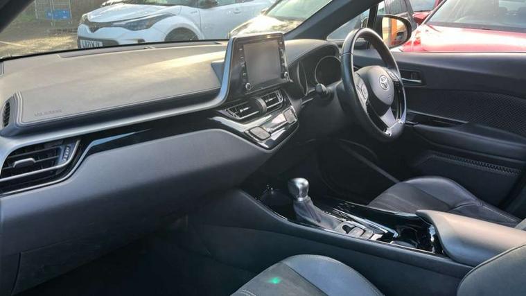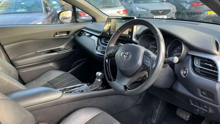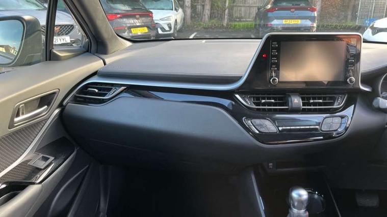 4.2" coloured TFT screen for multi-information display, Adaptive cruise control, Bluetooth connectivity, Electric power steering, Hybrid system indicator, Lane departure alert with steering control, Remote boot door release in cabin, Remote boot door release in key, Reversing camera, Road sign assist - RSA, Simple Intelligent parking assist, Touch 2 Go navigation system, Trip computer, Voice recognition, Vehicle Stability Control (VSC), 6 speakers, AM/FM radio, DAB Radio (Digital Audio Broadcasting), Toyota touch 2 multimedia system with 8" display, USB connector, Wi-fi connectivity, Adaptive front light system, Adaptive LED Headlights, Anti-jam protection on power windows, Auto high beam, Auto up and down function on all power windows, Automatic headlight levelling, Automatic headlights, Automatic headlights cut-off, Black and body coloured rear bumper, Black upper front grille, Body colour door handles, Body colour door mirrors, Body coloured front bumper, Boot door release with push button, Chrome front lower bumper, Electric heated door mirrors, Follow me home headlights, Front and rear power windows, Front spoiler lip in black, Hard tonneau cover, Honeycomb lower front grille, LED daytime running lights, LED fog lights, LED front light guide, LED High mounted stop light, LED rear brake lights, LED rear combination lights, Noise reduction layer on front windows and windscreen, Power adjustable door mirrors, Privacy glass, Rear sequential indicators, Rear spoiler, Rear tailgate, Rear window defogger, Rear window wiper, Shark fin antenna, UV-filter on driver and passenger windows, UV-filter on rear windows, 12v power outlet - front, 3 rear headrests, 3 spoke perforated leather steering wheel, 60/40 split folding rear seat, Adjustable rear headrests, Adjustable speed limiter switch on steering wheel, Assist grips front and centre pillar, Audio and telephone switches on steering wheel, Black front door assist grips, Blue ambient lighting on front cup holders, Blue ambient lighting on front doors, Boot light, Chrome interior door handles, Driver and front passenger personal light, Driver and front passenger Whiplash Injury Lessening seats, Driver and passenger seatback pockets, Dual zone automatic air conditioning, Fabric upholstery, Front cupholders, Front head restraints, Front sports seats, Glovebox with internal light, Heated driver and front passenger seats, Hooks for luggage holding net, Humidifying Nanoe air purifier, Illuminated entry system, Isofix attachments on rear seats, Leather gearshift, Light on driver sun visor, Light on passenger sun visor, Manual telescopic steering wheel, Manual tilt steering wheel, Manually height adjustable driver seat, Manually height adjustable front passenger seat, Manually reclining driver seat, Manually reclining front passenger seat, Manually sliding driver seat, Manually sliding front passenger seat, Microphone on front personal light, Mirror on driver sun visor, Mirror on passenger sun visor, Multimedia switches on steering wheel, Pollen filter, Power adjustable lumbar support on driver seat, Shopping bag hooks, Slow opening on lower glovebox, Voice recognition switch on steering wheel, Tech with parking sensor pack - C-HR, 16 Disk front wheel brake, 3x3 point rear seatbelts, ABS+EBD+Brake assist, Electronic parking brake, Front and rear seatbelt reminder, Front passenger airbag on/off switch, Hill start assist control (HAC), Pre collision system with pedestrian detection, Pre-tensioners and force limiters, Rear door child safety locks, SRS Airbags - Driver + Front passenger, front side, front and rear curtain and driver's knee airbags, Toyota safety sense, Tyre pressure monitoring system, Acoustic vehicle alert system (AVAS), Glass-breaking alarm sensors, Immobiliser, Intrusion alarm, Intrusion sensor, Motion sensor alarm, Power door locks, Power passenger window lock, Remote central locking, Black lower dashboard, Black upper dashboard, Piano black console, Silver deco line on upper dashboard, 19" Black machined alloy wheels, Tyre repair kit,