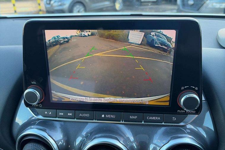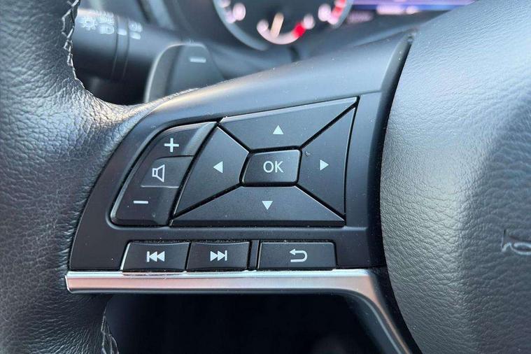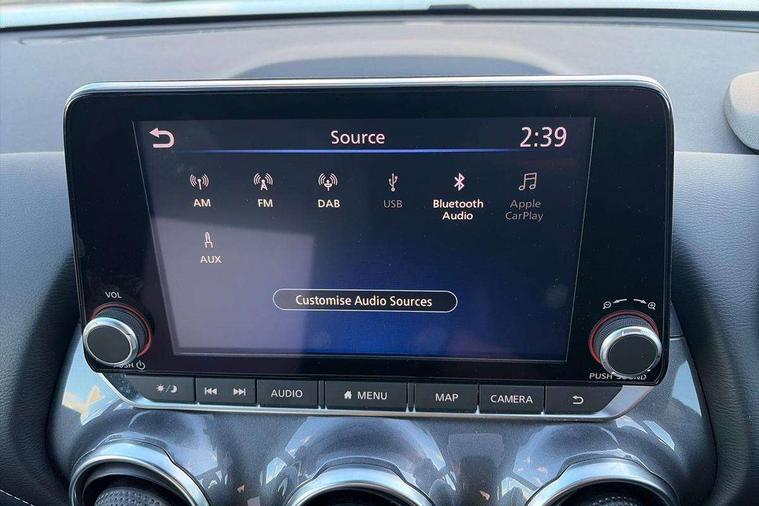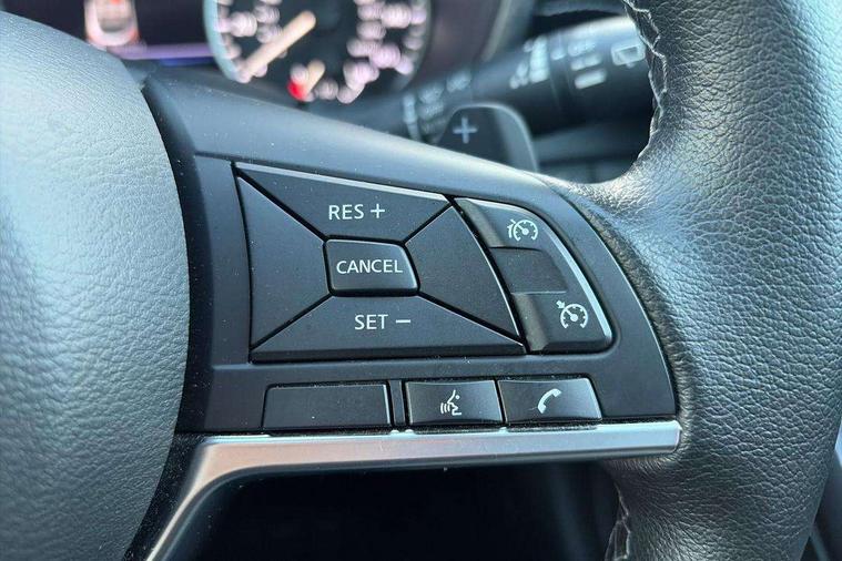 7" full colour TFT screen combimeter, Apple CarPlay and Google Android auto, Drive modes select (Eco, normal and sport), Emergency and breakdown call, Front parking sensor, Idle start/stop system, Intelligent lane intervention, Lane departure warning system, Nissan connect 8" touch screen entertainment system, Nissan connect nav with TomTom traffic, Nissan connect services and Wifi connection, Outside temperature sensor, Power Steering, Rear parking sensor, Traffic sign recognition, Trip computer, Voice recognition, Gasoline particulate filter, 6 speakers, Bluetooth system, USB, Aux-in and 12V socket, DAB Digital radio, Rear console USB port, Auto dimming interior rear view mirror, Auto headlights, Automatic hazard signal with emergency stop signal, Body colour bumpers, Body colour door handles, Electrically adjustable door mirrors with integrated indicators, Follow me home headlights, Front and rear electric window with one touch driver window, Heated and auto folding door mirrors, High beam assist, LED daytime running lights, LED headlamps, LED rear fog lamp, LED rear lamps, Rain sensor windscreen wipers, Rear privacy glass, Rear side wing doors, Rear wiper, Three blink turn signal, 3 height adjustable rear headrests, 3 seat bench in 2nd row, 60/40 split folding rear seat, Automatic climate control, Card holder on driver sunvisor, Cloth upholstery with black and metallic grey syntech leather inserts, Driver and passenger sliding and reclining seats, Driver side rear coat hanger, Driver/passenger sunvisors and vanity mirrors, Front and rear cabin lights, Front armrest, Front door pockets with bottle holders, Front head restraints, Front/rear passenger grab handles, Grey synthetic leather kneepad, Height adjustable driver's seat, Internal chrome door handles, Leather gearshift knob, Leather steering wheel, Luggage board, Luggage space lighting, Monoform sporty seats, Multifunction steering wheel, Rear door bottle holders, Single front passenger seat, Steering wheel mounted gearshift paddles, Telescopic steering wheel adjustment, Two cupholders in front centre console, Two rear isofix child seat anchorage points with top tether, Welcome light and console tray ambient lighting, ABS with EBD and brake assist, Active ride control, Active Trace Control, Driver and passenger airbags, Driver and passenger side airbags, Electric handbrake with auto hold function, Electronic Stability Programme (ESP), Front and rear curtain airbags, Height adjustable seatbelts, Hill start assist, Intelligent emergency braking with pedestrian and cyclist recognition, Rear door child safety locks, Seatbelt reminder for driver/front passenger and rear seats, Single tone horn, Three 3 point rear seatbelts, Traction control, Tyre pressure monitoring system, VDC Dynamic Vehicle Control, Ventilated rear brake discs, Alarm, Immobiliser, Intelligent key and start push button with walk away lock and approach unlock functions, Remote central locking,