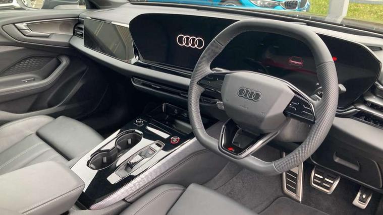 Adaptive cruise assist plus with steering intervention, Advanced driver attention and fatigue montior, Audi application store, Audi assistant, Audi connect emergency call and service, Audi drive select, Audi smartphone interface, Audi virtual cockpit plus with 11.9" OLED colour display, Automatic start/stop system with coasting functionality, Camera based traffic sign recognition, Garage door opener, Head up Display, Intersection assist, Lane change assistant with exit warning system, rear cross traffic alert and rear turn assist, Lane departure warning with emergency assist, MMI 10.9" front passenger touch display, MMI navigation plus with high resolution 14.5" OLED touchscreen colour display, Park assist plus, Parking system plus with 360 display, Progressive steering with servotronic, Swerve assist and turn assist, Top view camera, Traffic sign based speed limiter, Sports suspension with damper control lowered by 20mm, 2 USB-C ports in both the front and rear, Bang and Olufsen premium sound system with 3D sound, DAB digital radio reception, Smartphone compartment with wireless charging, Acoustic glass for front door windows, Aluminium window trims, Auto dimming rear view mirror, Body colour door mirrors, Clear glass, Digital OLED tail lights including communication light, Door mirrors - electrically adjustable, heated, folding and auto dimming on both sides, Front and rear electric windows, Front door sill trims with aluminium inlays, illuminated with 'S' logo, Headlight cleaning system, High beam assist, LED daytime running lights, LED third brake light, Manual sunshade for the rear door windows, Matrix LED headlights with eight light signatures selectable via the MMI or the myAudi app, Panoramic glass roof with switchable transparency, Privacy glass, Rear and side windows with heat insulating glass, Rear boot, Rear side wing doors, S Line badges on the front wings, S line bumpers, radiator grille and diffuser in phantom black and diffuser insert in matt anthracite, White rhombus logo projection light in exterior mirrors, Windscreen with acoustic glazing, 3 rear headrests, 3 seat rear bench, 3 spoke leather steering wheel with multi-function buttons with touch control, flattened on top and bottom, with S badging and contrast stitching, 3-zone automatic climate control, 4 way electric lumbar support for driver and front passenger, 40:20:40 split folding rear seat bench with centre armrest and cup holders, Comfort front centre armrest, Dynamic interaction light (coloured), Electric steering wheel adjustment, Electrically adjustable front seats, Front and rear floor mats, Front sport seats with integrated headrest and S embossed logo, Headlining in black cloth, Heated front and outer rear seats, Heated steering wheel, i-Size child seat mounting on the front passenger side and outer rear seats, i-Size and top tether on the outer rear seats, Increased charging capacity for USB ports 2X100 Watts in rear, 2X60 Watts in front, Luggage compartment lid, electrically opening and closing, Single front passenger seat, Stainless steel pedals and footrest, Steering wheel grips in perforated leather and shift paddles, Twin leather upholstery, Ambient lighting package plus - A5, 3x3 point rear seat belts, Acoustic vehicle alerting system, Convenience key with safelock, Driver airbag, Electric child safety locks, First aid kit with warning triangle and vests, Front emergency brake assist, Front passenger airbag, Front passenger airbag deactivation, Hill hold assist, Occupant detection in rear seat area, Proactive passenger protection system for front, sides and rear, Seat belt monitoring with rear seat occupant reminder, Side airbags in front and rear with head airbag system and front interaction airbag, Tyre pressure loss indicator, Anti theft alarm, Anti-theft wheel bolts, Keyless Go, Accents in the interior in vanadium look, Black dashboard with contrast stitching, Inlays in matt brushed aluminium with linear embossing, anthracite, Softwrap in leatherette with contrast stitching, Upper and lower interior elements in leatherette, 19" 5 twin V spoke design alloy wheels in graphite grey, Tyre repair kit,