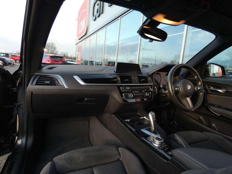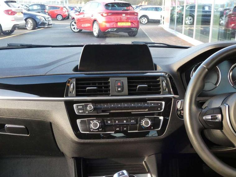 Auto start-stop, BMW Online services, BMW remote services, BMW Teleservices, Door/boot open warning, Front and rear Brake pad wear indicator, Instrument cluster with speedometer with miles per hour read out, tachometer and fuel gauge, Lights on warning by audio warning signal when ignition is switched off, Oil temperature display via on board computer in instrument cluster, On board computer - average speed+fuel consumption, service interval, clock/date, odometer/trip meter, outside temperature display and ice warning, Optimum shift indicator, Personal Profile - automatic lock when driving away selectable, Real time traffic information, Speed limiting function, Traffic message channel (TMC), 8 speed automatic transmission, Battery age recognition function, Drive performance control - ECO PRO, comfort, sport and sport+ modes, Engine cover with BMW roundel twin power turbo designation, Oil dipstick, DAB Digital radio, 2 speed adjustable intermittent wipers with wash/wipe function, Automatic headlight beam throw control, Automatically dimming rear view mirror, Body colour door handles, Body colour door mirrors, Body colour front bumper, Body colour roof mouldings, Chrome single exhaust tailpipe, round, left, Clear lenses direction indicator lights, Darkened rear lights with LED light bars, Daytime driving lights, Direction indicator side lights integrated exterior mirrors, Dynamic brake lights, Electric windows - front and rear, with open/close fingertip control, anti-trap facility and comfort closing, Follow me home headlights, Front air inlet with high gloss black finish, Front and rear bumper system with replaceable deformation elements, Green tinted heat protection glazing, Headlight range control, Heated windscreen washer jets, Heated, electrically adjustable exterior mirror aspheric on driver side, convex on passenger side, High gloss shadow line, High level third brake light, LED Headlights, LED welcome home lights, Lightweight engineering, M aerodynamic body styling, M logo designation in chrome on left and right front wings, Model designation, Model specific design elements, Rain sensor with automatic headlight activation, Rear bumper with high gloss black finish, Rear fog lights, Rear window aerial, Reversing light in rear light cluster, Shark fin roof aerial, Visible VIN plate, 12V power socket in centre console, 12V power socket in passenger footwell, 3 spoke nappa leather steering wheel, Anthracite headlining, Conditioned based service, Front and rear side armrests integrated into door trim, Front door sill finishers with M designation, Front door storage bins, Front floor mats in velour, Front head restraints, Front sliding armrest, Front sports seats with electric side bolster adjustment, Glove box handle with chrome surround, Interior lighting, front centre over interior mirror and rear centre automatic interior light activation when door is opened, Isofix child seat for two outer rear seats, Leather gearknob, Leather handbrake lever, Luggage compartment access via BMW roundel, Manually adjustment steering wheel column, Multi-function controls for steering wheel, Rear coat hooks, Rear folding head restraints, Storage compartment in rear centre console, Two cupholders with sliding cover and inlay mat, 2 rear 3 point safety belts, Active differential brake (ADB), electronic differential lock in DSC-OFF mode, Airbag - Front driver and passenger, front and rear head, front side, curtain head protection, manual deactivation of front passenger airbag possible, Anti lock braking system (ABS) with brake assist, Automatic Stability Control (ASC), BMW emergency call, Brake drying, Brake energy regeneration, Braking readiness, Cornering brake control (CBC), Crash sensor activating central locking release with hazard warning lights and interior lighting + battery safety cut-off, Dynamic brake control, Dynamic stability control + (DSC+), Dynamic Traction Control - DTC, Front pyrotechnic belt tensioners and belt force limiter, rear coaded belt buckles, Hill start assist, Rear brake discs, Seat belt security check for driver and front passenger, Side impact protection, Twin horns, Tyre pressure monitoring with 3 level warning strategy, Ventilated front disc brakes, Warning triangle and first aid kit, Central locking switch for all doors, fuel filler cap and luggage compartment, Check control system for monitoring of lights and door/luggage compartment open warning, Locking wheel bolts, Remote control including integrated key with blue insert, Start/stop button with Comfort Go keyless engine start and auto Start/stop deactivation button, Thatcham category 1 alarm + immobiliser, Reduced rolling resistance tyres,