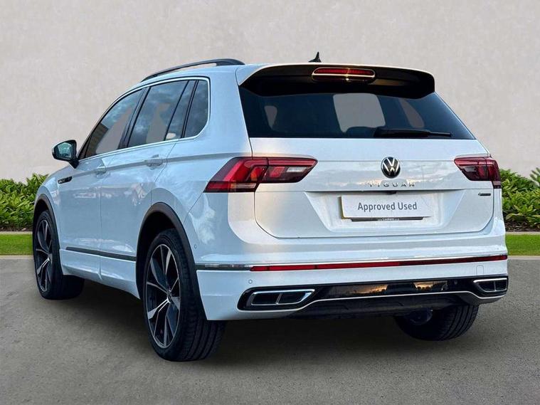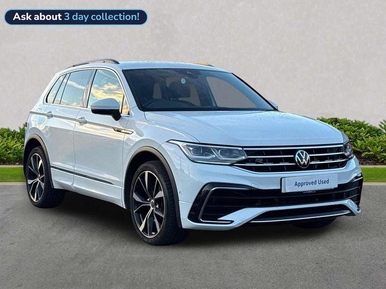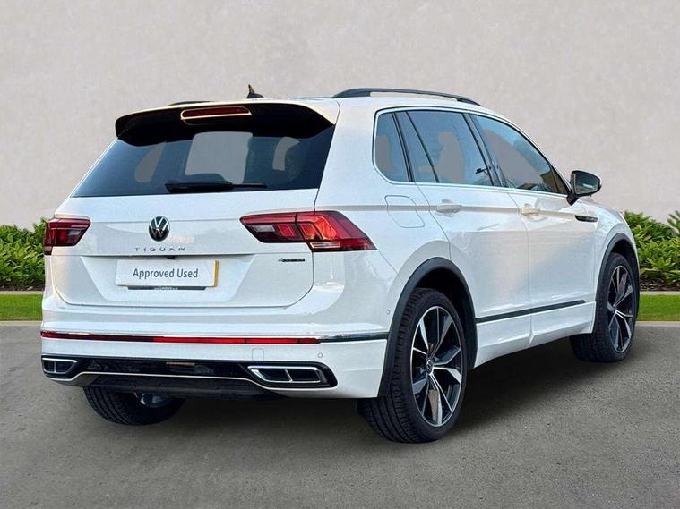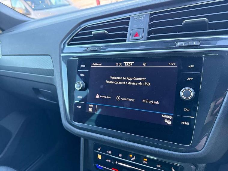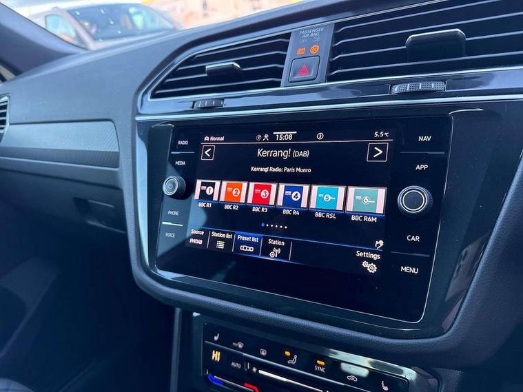 Adaptive cruise control ACC stop and go including speed limiter, App-Connect incl. App-Connect Wireless for Apple CarPlay and Android Auto, Bluetooth phone integration system, Distance control assist, Driver alert system, Driver profile selection, Dynamic road sign display, eCall emergency call system, Electromechanical speed sensitive power steering, Engine start/stop button, Lane keeping system Lane Assist, Lights on warning, Multifunction front facing camera, Outside temperature display, Premium multifunction display with multi colour display, Remote control boot opening, Rev counter, Revision / skills operating concept travel assistant, Service interval indicator, Speed limit display, Start/stop system with regenerative braking, Trip computer, Warning sound and light for doors and tailgate open, All wheel drive - 4Motion, Battery regeneration during braking, XDS electronic differential lock for improved traction and handling, 4 X 20 watt output, 8 Speakers, Diversity antenna for FM reception, Radio, SD card slot, Simultaneous pairing of 2 compatible mobile devices, SMS functionality - read, compose and send SMS messages using touch-screen display, Title and cover art display, USB C ports, Auto dimming interior rear view mirror, Automatic headlight control system, Body colour door handles, Chrome moldings on the side windows, Coming/leaving home lighting function, Dynamic headlight range control, Front and rear electric windows, Heated rear window, High level 3rd brake light, Laminated safety glass windshield, heat and sound insulating, LED headlamps with LED separate daytime running light and dynamic cornering light, LED rear combination lamps, LED rear number plate lights, License plate carrier in front and rear, Poor weather light and cornering light, R Line body kit, R Line side sills, Rain sensor windscreen wipers, Rear exhaust tailpipe, Rear fog lamp, Rear side wing doors, Rear spoiler in R style, Rear windscreen washer and wiper with interval delay, Side and rear windows in heat insulating glass, Trailer Stability Programme, Unique R Line badging, Windscreen wipers/ intermittent wipe + 4 position delay, 12V outlet in center console rear and in luggage compartment, 12V outlet in front and tray, 2 cup holders in front, 2 LED front reading lights, 2 LED rear reading lights, 3 bench rear seats in 2nd row, 3 rear headrests, 4 load lashing points, 40:20:40 split folding rear seats, Air Care Climatronic 3 zone automatic climate control with enhanced air filter and controls in the rear, Backrest release for left front seat, Black headlining, Brushed stainless steel pedals and footrest, Carpet mats in front and rear with decorative stitching in Gray, Climate control unit rear with touch function, Door and side trim panel in foam film, insert in leatherette, Front centre armrest, Front footwell illumination, Front seats head restraints (x-adjustment), Height adjustable front seats, Height/reach adjust steering wheel, Instrument lighting white adjustable panel illumination, Interior light with delay, Isofix Preparation 2 Rear child seats, Leather gear knob, Lockable cooled glovebox, Luggage compartment lighting, Luggage net, Rear bench seat asymetrically split folding, longitudinally movable and folding with load-through hatch and center armrest, Remote unlocking for rear seat backrest, Removable luggage cover, Removable rear headrests, Safety optimised front head restraints, Single front passenger seat, Sliding/reclining rear seats, Standard rear seat release, Storage compartment in driver's door, Storage compartment in passenger's door, Storage compartment in rear doors, Storage compartments in luggage area left and right, Storage tray on dashboard, Sun visors with illuminated vanity mirrors, Top front comfort seats, Variable boot floor, height adjustable and removable, Driver assistance pack plus - Tiguan DSG, 3 point seat belt for centre rear seats, 3 point seat belts with seat belt pretensioners for the outer rear seats, Active bonnet, Curtain airbags for front and rear passengers, Driver/Front Passenger airbags, Drivers knee airbag, Electronic parking brake with auto hold, Electronic Stability Control with driver steering recommendation, ABS, ASR, EDL, EDTC and trailer stabilization, Front assist with autonomous emergency braking (for Adaptive Cruise Control ACC up to 130 mph), Front disc brakes, Front passenger airbag deactivation, Front side airbags, Height adjustable front 3 point seatbelts + pretensioners, Hill hold control, Manual child proof rear door locks, Pedestrian monitoring system, Power assisted brakes, Proactive passenger protection system in combination with front assist, Rear disc brakes, Rigid safety cell with front and rear crumple zones, Two tone horn, Warning sound and light for front seat belts if unfastened, Anti theft alarm system with interior monitoring, backup horn and towing protection, Anti theft wheel bolts, Electronic engine immobiliser, Tool kit,