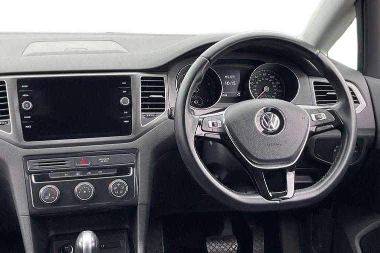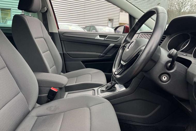 'Lights On' Reminder warning buzzer, ACC - Adaptive cruise control with front assist, forward collision warning, distance monitoring, city emergency brake and speed limiter, App-Connect, Bluetooth Telephone preparation, Brake pad wear indicator warning light, Driver alert system, Driver profile selection, Exterior temperature gauge, Front and rear parking sensors, PAS - speed related, Push tank flap, Rev counter, Speedometer, electronic odometer and fuel gauge, Stop/start system, Trip and service interval display, Warning buzzer and light for front seatbelts unfastened, White instrument cluster lighting, XDS electronic differential lock, CD/MP3/WMA, USB and SD card reader, aux-in, Composition media system, DAB Digital radio, Personalisation 1.1 profile for media, Auto dimming rear view mirror, Automatic coming/leaving home lighting function, Black front air intake and radiator grilles, Body colour bumpers, Body colour door handles, Body colour door mirrors with integral indicators, Electric front windows, Electric rear windows, Electrically adjustable and heated door mirrors, Fog light with turning light, Front fog lights with static cornering function, Galvanised body, Heat insulated tinted glass 65% light absorbing from B pillar back, Heated rear windscreen, LED 3rd brake lamp, LED daytime running lights, LED rear lights, Rain sensor, Range adjustable headlights, Rear diffuser, Rear roof spoiler, Rear window antenna, Rear windscreen washer and wiper with interval delay, Twin exhaust tailpipe, Windscreen wipers/ intermittent wipe + 4 position delay, 12V socket in luggage compartment, 2 front reading lights, 3 rear headrests, 3 spoke multi-function leather steering wheel and gearknob, 60/40 split folding rear seat, Auto fold down lever in rear seat backrest, Boot lashing points, Centre console storage box, Cooled glovebox, Courtesy light delay, Driver and front passenger under seat drawer, Driver/front passenger seat height adjustment, Dust/pollen filter, Front centre armrest with storage box and rear air vents, Front comfort seats, Front seat back storage pockets, Grab handles, Height/reach adjust steering wheel, Interior lighting with switch off delay and contact switches on all doors, Isofix preparation for 2 rear child seats, Luggage compartment cover, Luggage compartment lighting, Overhead storage box, Pearl grey headlining, Rear armrest with 2 cupholders and load through provision, Rear reading lights x 2, Storage box in luggage compartment, Storage boxes under front seats, Storage compartments in doors, Sunvisors with illuminated vanity mirrors, Variable boot floor, height adjustable and removable, White adjustable panel illumination, Mirror pack - Golf, 3 point height adj front seatbelts + pretensioners, 3 rear 3 point seatbelts, ABS, Automatic post collision braking, Child locks on rear doors, Door open warning reflectors, Driver/Front Passenger airbags, Driver/Passenger whiplash optimised head restraints, Drivers knee airbag, Electronic parking brake with auto hold, Electronic tyre pressure monitoring, ESP with EDL + ASR, Front and rear curtain airbags, Front passenger airbag deactivation, Front side airbags, HBA (Hydraulic Brake Assist), Pre crash system, Ventilated front disc brakes, Alarm with interior protection, Electronic engine immobiliser, Remote central locking with 2 remote folding keys, Brushed dark metal decorative inserts in dash and front door panels, Chrome-plated light switch surround, Decor strip on dashboard and door side trim, Polar night black centre console, Steel space saver spare wheel,