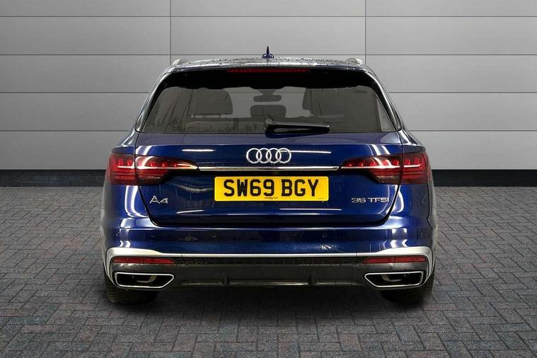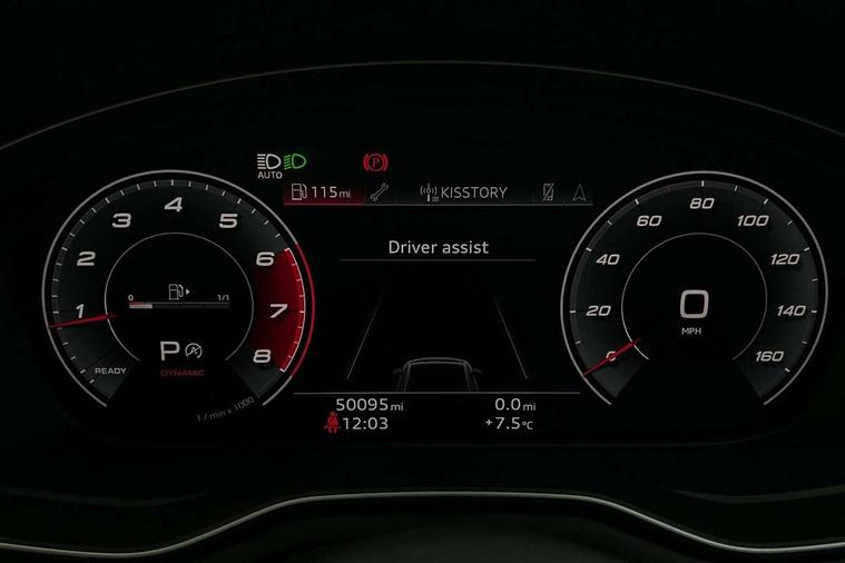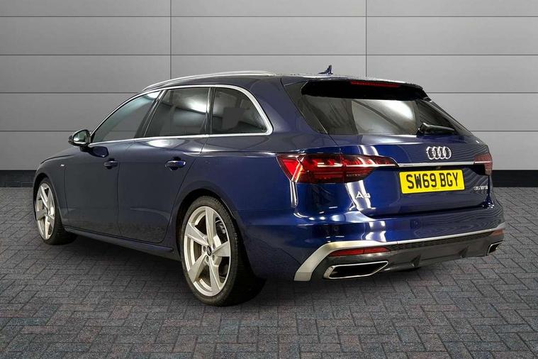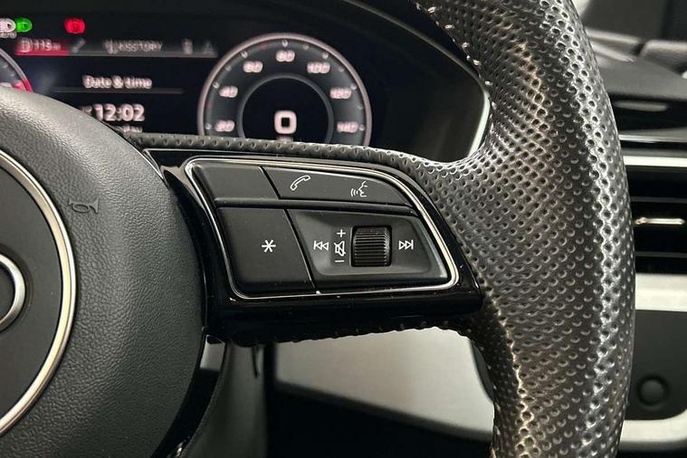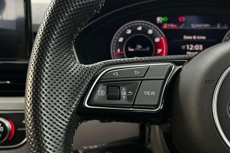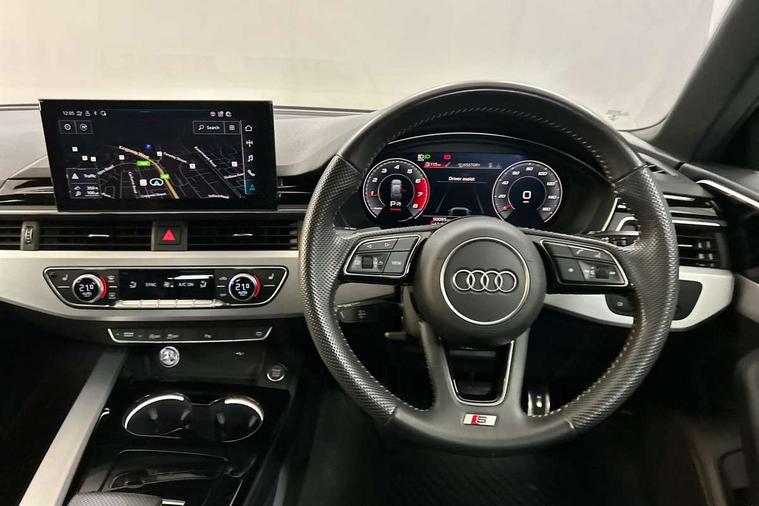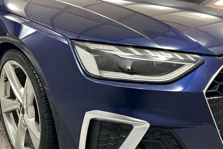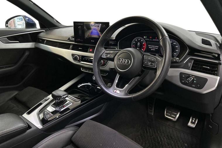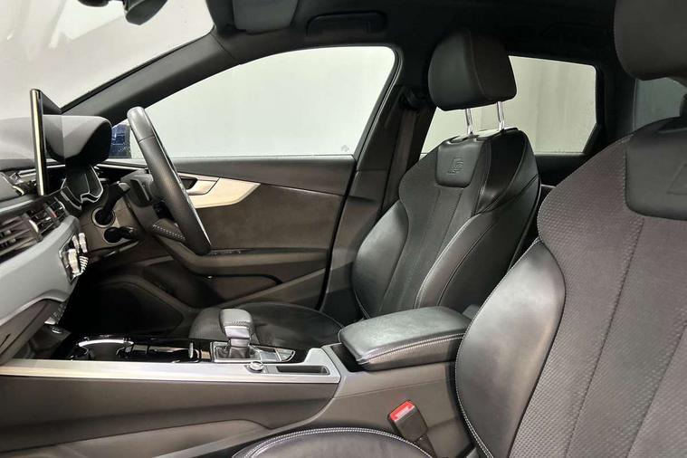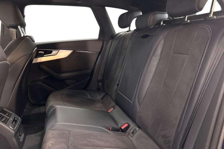 Audi connect safety and service (e-call), Audi drive select, Audi parking system plus with front and rear sensors, Audi smartphone interface, Audi virtual cockpit, Automatic start-stop system with coasting functionality and efficiency programme, Bluetooth interface, Electromechanical power steering, MMI Navigation plus with MMI touch includes 10.1" high resolution colour MMI display, 3D map, Power operated tailgate, Rear view camera, Voice control system, 54 litre fuel tank, Sports suspension lowered by 23mm, 2 USB charging ports, 8 passive loudspeakers, DAB digital radio reception, Aluminium roof rails, Auto dimming rear view mirror, Body colour door handles, Body colour front spoiler lip, Body colour side sill trim, Body coloured door mirrors, Electrically folding auto dimming/adjustable/heated door mirrors with LED side indicators and kerb view function for passenger side, Grained matt black side air inlets with matt aluminium silver inlay, High beam assistant, Honeycomb structure radiator grille in grained matt black, LED headlights with LED rear lights + dynamic rear indicators + headlight adjustment and high beam, turning light + LED daytime running lights, Matt aluminium silver tailpipe trim, New design rear diffuser, Privacy glass, Rain and light sensors, S Line badges on the front wings, S line front and rear bumpers with side skirts, S Line rear diffuser in matt titanium black with trim strip in matt aluminium silver, S Line roof edge spoiler, Windscreen with acoustic glazing, 4 way electric lumbar support for driver and front passenger, 40/20/40 split folding 3 rear seat bench in 3 parts with rear centre armrest, Black cloth headlining, Black perforated leather gearknob, Contrast stitching on seats, steering wheel and gear lever gaiter, Deluxe 3 zone electronic climate control, Door sill trims with aluminium inlay, Electric load area cover, Front and rear head restraints, Front centre armrest, Heated front seats, Illuminated door sill trims with S logo, ISOFIX child seat mounting and top tether, Manual seat adjustment, Stainless steel pedals and foot rest, High gloss package - A4, LED Interior light pack - A4/S4, 3 rear seatbelts, 6 airbags - Driver, front passenger, curtain and side windows, Electronic Stabilisation Control (ESC) including ABS, ASR and EDL, Hill hold assist, Multi collision brake assist, Pop-up bonnet for pedestrian protection, Pre sense city, Seatbelt monitoring, Warning triangle and first aid kit, Anti theft alarm, Anti theft wheel bolts, Keyless Go, Matt brushed aluminium inlays, Tool kit, Tyre repair kit,