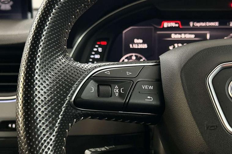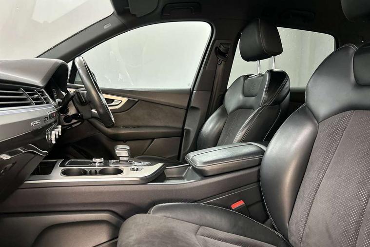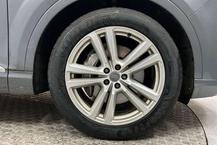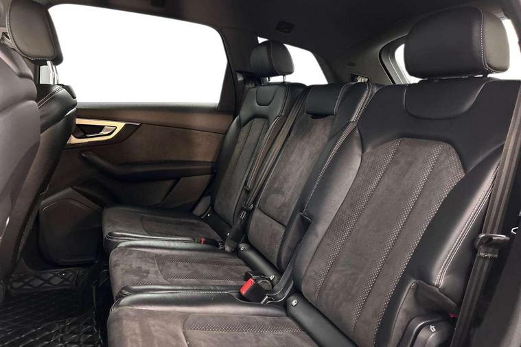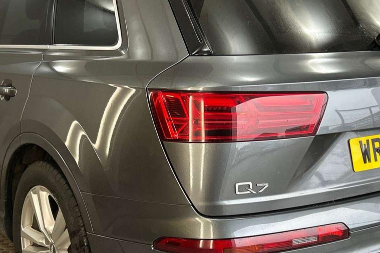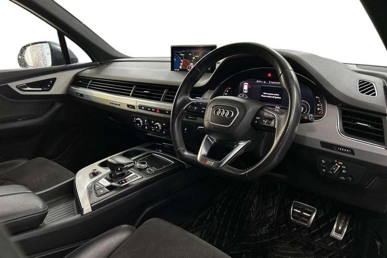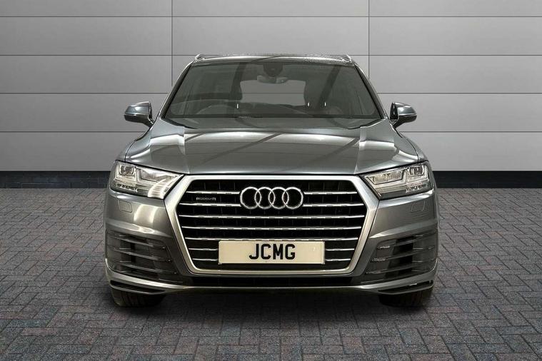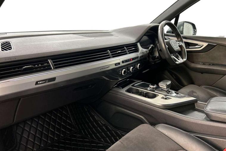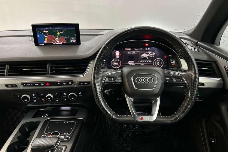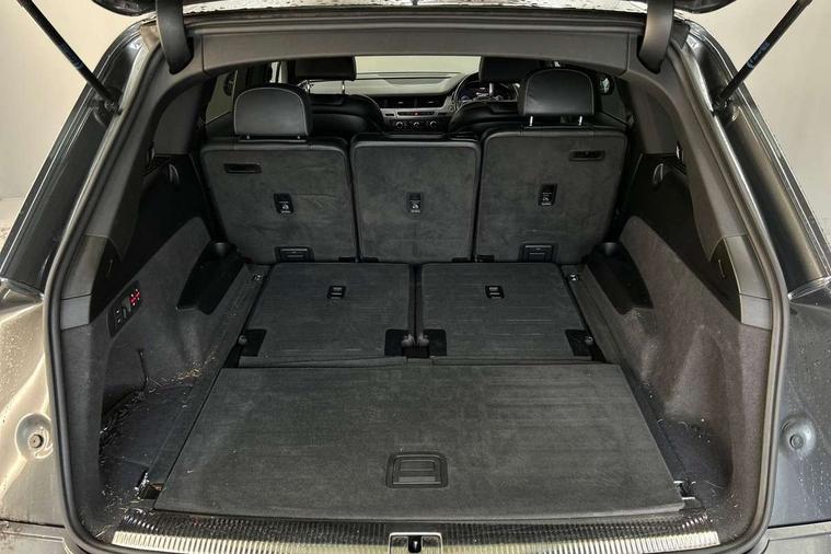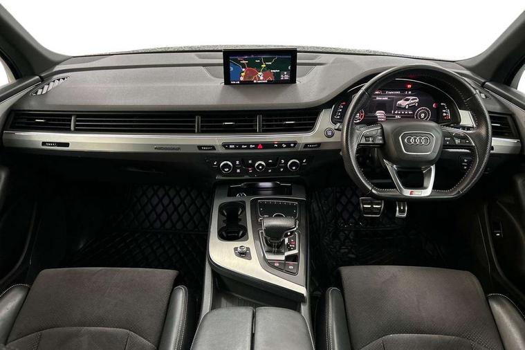 8.3" central fold-down colour display with high-resolution graphics, Audi connect safety and service (e-call), Audi drive select, Audi phone box with wireless charging, Audi smartphone interface, Audi virtual cockpit - 12.3" high-resolution LCD display with fully customisable instrument cluster, Colour driver's information system display, MMI - Multi Media Interface control system, MMI navigation plus with MMI touch, Mobile phone preparation with bluetooth interface, Power tailgate, Service interval indicator, Servotronic speed related PAS, Speed limiter, Stop/start system, Voice control system, Adaptive air suspension, 2 USB ports, 2x SD card slot, Audi music interface, Aux-in socket, DAB digital radio module, DVD System, MMI radio plus, Acoustic windscreen, Auto dimming rear view mirror, Electric front+rear windows, Electric/heated/folding door mirrors with memory, Green tinted heat insulating glass, Headlight washers, High beam assist, LED daytime running lights, Loading sill protector in stainless steel, Platinum grey front lip spoiler, Privacy glass, Rain and light sensors, Rear wiper, Roof spoiler, S Line badge on wings, S Line body styling, S Line front and rear bumpers, 2 cupholders in front centre console, 35/30/35 split fold 2nd row seats, Door sill trims with S line logo, Electric 3rd row 50/50 split/fold, Electrically adjustable front seats with electric 4- way lumbar support and driver memory function, Front ashtray and cigar lighter, Front centre comfort armrest with storage + cupholders, Front head restraints, Front/rear floor mats, Gearshift paddles, ISOFIX child seat mounting for 6 passenger seats with front passenger airbag deactivation includes top tether, Leather gear knob, Luggage compartment cover, Rear centre armrest with 2 cupholders, Rear headrests, Stainless steel pedals, Sunvisors with illuminated vanity mirrors, Interior light pack - Q7, 3 point seatbelts on all seats, ABS+Electronic Brake force Distribution, Curtain airbags, Driver and passenger airbags, EDL + ASR, Electrically operated child locks on rear doors, Electromechanical parking brake, Electronic stability control, ESP, Front side airbags, Hill descent control, Hill hold assist, Seatbelt warning, Traction control, Tyre pressure loss indicator, Warning triangle and first aid kit, Anti theft alarm, Anti-theft wheel bolts, Immobiliser, Keyless Go access/ignition system, Remote central locking, Chrome door inserts, Tool kit, Tyre repair kit,