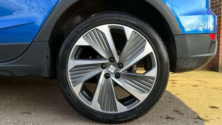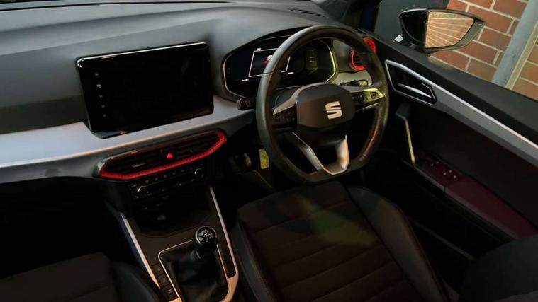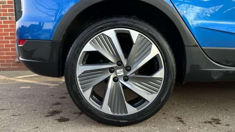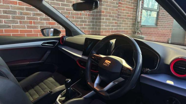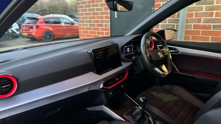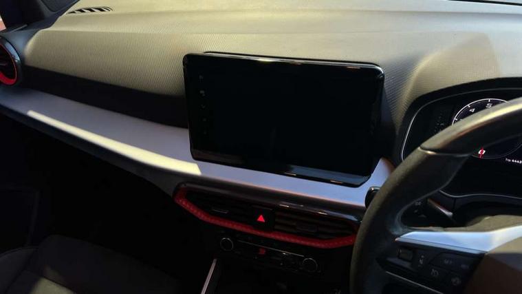 Digital cockpit, E-call, Electric speed sensitive power steering, Full Link Smartphone Integration with Mirror Link, Apple Car Play, Google Android Auto with USB Type C cable for Apple and Android compatibility, Lane keeping system, Rear parking sensor, Seat connect with safety, service, remote and online, SEAT Drive profile - Four different models normal-sport-eco-individual, steering response, throttle response, Bluetooth interface for hands free and audio streaming, DAB digital radio and AM/FM radio, Steering wheel mounted audio controls, Anti theft roof antenna, Auto dimming interior rear view mirror, Automatic activation of hazard warning lights, Body coloured bumpers, Body coloured door handle inserts, Chrome roof rails and window surrounds, Chrome window trim, Dark tinted rear windows, Electric front/rear windows, Electrically adjustable, heated and folding door mirrors, FULL LED automatic headlights with dynamic headlight range control, coming and leaving home, LED daytime running lights, LED rear tail lights and licence plate lights, Protective side mouldings, Rain sensing wipers, Rear side wing doors, Rear spoiler, Rear window wash/wipe, Roof colour door mirrors, Third brake light, Twin exhaust pipe styling hidden exhaust pipe, Visible VIN plate, Windshield wiper with intermittent control and potentiometer, 2 cupholders, 3 seat bench in 2nd row, 60/40 split folding rear seat, Aircare filter, Black interior roof, Daring red Illuminated coloured air vent, Double boot floor, Driver sunvisor with covered mirror + card holder, Dual zone climate control, Front courtesy light with 2x front and 2x rear reading lights, Front seat back storage pockets, Front sport seats, Heated front seats, Height adjustable front seats, Height/reach adjustable steering column, Illuminated boot, Interior ambient lighting, Interior light in footwell, central console and door panel, ISOFIX points in outer rear seats with top tether anchorage points, Microsuede cloth upholstery, Passenger sunvisor with vanity mirror, Perforated flat bottomed leather steering wheel/gear knob/handbrake with red stitching and FR logo, Single front passenger seat, Two front and three rear height adjustable headrests, Connectivity pack plus - Arona, Interior chrome pack - Arona, 3 point seatbelts on all rear seats, ABS, Active front headrests, Child locks on rear doors, Driver and front passenger airbags with front passenger airbag de activation, front side and curtain airbags, Electronic stability control, Emergency Brake Assist (EBA) and front assist, Front and rear seatbelt reminder, Hill hold control, Multi-Collision braking, Tiredness recognition system, Traction control, Tyre pressure monitoring system, Alarm with back-up horn, Electronic engine immobiliser, Locking wheel bolts, Remote central locking + deadlocks, Tow away protection, Titan black dashboard, 18" Performance Cosmo grey matt alloy wheels,