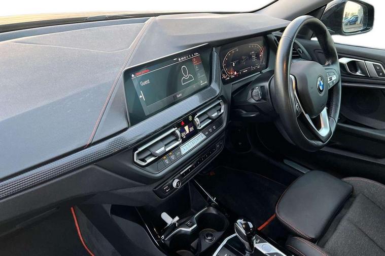 Active guard plus, Attentiveness assist, Auto start-stop, BMW Intelligent Personal Assistant, BMW Live Cockpit Professional with 10.25" high resolution instrument and control display, BMW Online services, BMW operating system with 7.0 mid interface, BMW Teleservices, Check Control warning system for monitoring of lights and door/luggage compartment open warning, Cruise control with braking function, Electric Power Steering (EPS) with Servotronic, iDrive controller with 7 short cut favourite buttons on centre console, Integrated navigation data with map data via USB +features such as 3D landmarks and micro city models, Integrated owners handbook, Intelligent voice assistant, Lane departure warning system, On board computer - average speed+fuel consumption, service interval, clock/date, odometer/trip meter, outside temperature display and ice warning, Optimum shift indicator, Personal Profile, Pull away assistant, Speed limiting function, Aluminium lightweight construction, Balancer shaft, Double VANOS, Drive performance control with ECO PRO comfort + sport mode, Dual clutch automatic transmission, Electronic differential lock, High precision injection, Performance Control, Petrol Particulate Filter, Suspension with twin tube gasfilled shock absorbers, Anti roll bars, single joint front axle kinematics to minimise drive + Rigidly mount rear subframe, VALVETRONIC engine management, 2x USB Type C ports (for charging and data transfer), 4G LTE Connectivity with hard wied 4G network sim card, DAB digital radio, MP3 players and RDS double tuner, Active aerodynamics, Auto wipers, Automatically dimming rear view mirror, Body colour door handles, Body colour mirror caps, Chrome exhaust single tailpipe, round, Direction indicator side lights integrated exterior mirrors, Electric windows - front and rear, with open/close fingertip control and trap release, Fading support, Follow me home headlights, Front and rear bumper system with replaceable deformation elements, Front bumper in Body colour with exclusive Sport air inlets finished in High gloss Black, Front door sill finishers in black plastic with BMW designation, Heated, electrically adjustable exterior mirror aspheric on driver side, convex on passenger side, High gloss black B pillar finish, High gloss shadow line exterior trim, High level third brake light, Kidney grille with 14 chrome high gloss black vertical bars, LED daytime running lights, LED front fog lights, LED Headlights, Lightweight engineering, Manual headlight beam throw control, Model designation on right side of tailgate, Preparation for high beam assistant, Rain sensor with automatic headlight activation, Rear boot, Rear bumper in Body colour with exclusive Sport design elements finished in High gloss Black, Rear fog lights, Rear side wing doors, Reversing light in rear light cluster, Welcome lighting, 12V power socket in centre console, 2 cupholders in front centre console, 3 rear seat head restraints, 3 rear seats, 3 spoke sports leather steering wheel and black leather rim with black stitching + decorative finisher in pearl chrome, Anthracite finished floor mats with contrasting surround, Automatic two zone climate control air conditioning, Child seat ISOFIX attachment for two outer rear seats and front passenger seat with anchorage points, Conditioned based service, Front and rear door pockets including bottle trays, Front and rear side armrests integrated into door trim, Front armrest foldable with integrated storage compartment, Front centre interior light over interior mirror and rear centre automatic interior light when door is opened/ignition switched off or via remote key, Front head restraints, Front passenger seat, Front sports seats with electric side bolster adjustment, Glove compartment, Glovebox with light, Luggage compartment lighting, Manually adjustment steering wheel column, Multi-function controls for steering wheel, Sun visors with vanity mirrors and insert tab, Through loading system with 40/20/40 split folding rear seat, Two lashing eyes, Extended storage pack - 2 Series Gran Coupe, 2 tone horn, Airbag - Front driver and passenger, front and rear head, front side, curtain head protection, manual deactivation of front passenger airbag possible, Anti lock braking system (ABS) with cornering brake control, BMW emergency call, Brake drying, Braking readiness, City braking function, Crash sensor activating of airbags, Unlocking doors, hazard warning lights, interior light, safety battery terminal, Dynamic stability control + (DSC+), Dynamic Traction Control - DTC, Electrically operated hand brake, Rear brake discs, Rear child proof door locks, Seat belt security check for driver and front passenger, Seatbelt warning, Side impact protection, Three point seat belts on all seats including front belt stopper, pyrotechnic belt tensioners and belt force limiters, Trailer stability control, Tyre pressure monitoring system, Ventilated front disc brakes, Warning triangle and first aid kit, Central locking switch for all doors, fuel filler cap and luggage compartment, Deadlocking function system to all doors, Drive away locking system on all doors and luggage compartment, Locking wheel bolts, Start/Stop button (illuminated) in centre console with keyless engine start and Auto Start-Stop deactivation button, Thatcham Cat.1 alarm and immobiliser, Two remote control key with integrated key - one button for open and close doors/fuel flap/tailgate and separate button for unlock luggage compartment, Contrast stitching on instrument panel, Illuminated Berlin interior trim, Reduced rolling resistance tyres,