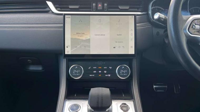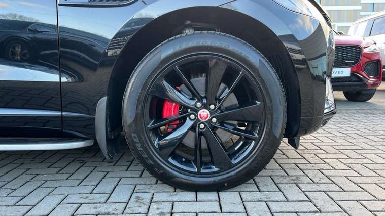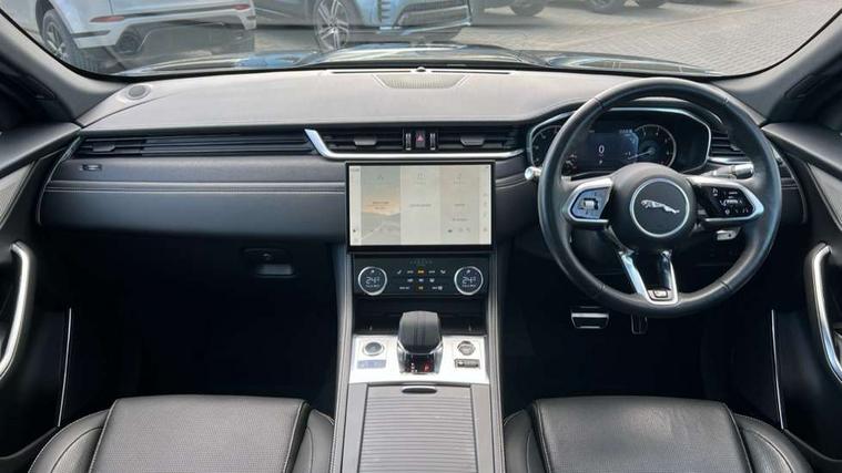 11.4" touchscreen, Android Auto, Apple car play, Bluetooth connectivity, Driver alert system, Driver condition monitor, eCall emergency call system, Eco driving style assistant, Electric power assisted steering, InControl remote, Jaguar Toggle shift selector, Lane departure warning system, Lane keep assist, Outside temperature gauge, Personalisation profile management, Pivi pro connected navigation system with app interface and media storage, Pro services and wifi hotspot, Push button starter, Service interval indicator, Speed proportional steering, Start up sequence with movement in dials and lighting, Traffic sign recognition with adaptive speed limiter, Trip computer, Voice control system, 8 speed automatic transmission, All terrain progress control, All Wheel Drive (AWD), Open differential with torque vectoring by braking, AM/FM radio, Bluetooth streaming, DAB Radio (Digital Audio Broadcasting), Dynamic volume control, InControl apps, InControl protect, iPod integration, 3 flash lane change indicators, Animated directional indicators, Approach Illumination, Auto dimming rear view mirror, Automatic headlights, Electric windows with one touch open/close and anti trap, F-Pace and R Dynamic badge, Gloss black door mirrors, Gloss black roof rails, Green tinted glass, Heated front windscreen + heated washer jets, Heated rear window with timer, Jaguar script and leaper, LED High level third brake light, LED tail lights, Non acoustic front windscreen, Privacy glass, R Dynamic badge on side door, Rain sensor windscreen wipers, Rear fog lights, Rear metal tread plates, Rear side wing doors, Rear wiper, Trailer stability assist, Variable front intermittent wipers, 12V power point front, 3 rear headrests, 3 seat bench in 2nd row, Air distribution speed, Bright metal foot pedals, Centre armrest console, Centre console with side storage, Deletion loadspace storage rails, Door sill tread plates, Fold flat front seats, Front centre armrest with storage compartment, Front door storage space, Glovebox finisher with jaguar script, Heated steering wheel, Hooks in loadspace, Illuminated glovebox, Interior front door handles with separate locking switches, ISOFIX on outer rear seats, Jaguar sense, Luggage tie downs in loadspace, Mist sensing, Multifunction steering wheel, Overhead lighting console, Overhead stowage for sunglasses, Passive front head restraints, Premium cabin lighting, Premium carpet mats, R-Dynamic branded leather steering wheel, Rear air vents, Rear armrest with twin cupholders, Rear centre headrest, Rear door storage space, Reversible boot floor, Satin chrome gearshift paddles, Shopping bag hook, Single front passenger seat, Sunvisors with illuminated vanity mirrors, Twin front cupholders with cover, Black Exterior pack - F Pace R-Dynamic/Sport, Exterior pack - F Pace R-Dynamic, Online Pack with data plan - F-Pace, 355mm front brakes and 325mm rear brakes, 3x3 point rear seatbelts, ABS, All surface progress control (ASPC), Brake pad warning light, DSC - Dynamic Stability Control, Electric parking brake (EPB), Emergency brake assist, Front airbags with passenger seat occupant detector, Front and rear seatbelt reminder, Front side airbags, Full length side window curtain airbag, Hill launch assist, Power operated child locks, Torque vectoring brake, Traction control, Tyre pressure monitoring system, Immobiliser, Keyless Start, Locking wheel nuts, Perimeter alarm, Remote central locking, Valet mode,