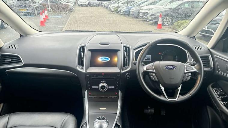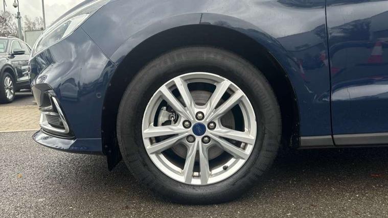 'Ford Power' starter button, Easy fuel capless refuelling system, eCall emergency call system, Ford pass connect embedded modem, Hydraulic PAS, Lane keeping aid - Driver impairment monitor, active steering with lane departure warning, Lights on warning, Outside temperature display, Tailgate, Traffic sign recognition, Trip computer, Unique instrument cluster, Auxiliary input socket, Steering wheel audio controls, Auto dimming rear view mirror, Auto high beam assist, Automatic headlights, Automatic wipers with variable sensitivity adjustment, Body colour bumpers, Body colour door mirrors, Chrome trim to lower side windows, Dual exhaust pipes, Electric front and rear windows + one touch + global open/closing, Front fog lights, Halogen headlight with cornering lights, Headlight courtesy delay, Hybrid badge, LED daytime running lights, LED rear lights, LED third brake light, Lower front grille with chrome surround, Power folding and heated door mirrors, Quickclear heated windscreen, Rain sensor, Rear privacy glass - dark glass to rear windows, Rear side wing doors, Silver roof rails, 2 height adjustable headrests - 3rd row, 230V power outlet in centre console, 2nd row reading lights, 3 height adjustable headrests - 2nd row, 3 individual fold flat 2nd row seats, 3rd row rear seats with manual fold flat, slide/recline and manual easy entry, Ambient interior lighting (excludes 2nd row footwell), Driver/passenger sunvisors with illuminated vanity mirrors + covers, Dual zone air conditioning, Floor mats in all three rows, Front door scuff plates, Front headrests, Front seat armrests, Front seat storage pockets, Front sports seats, ISOFIX attachments for child seats in 2nd row, Leather gear knob, Leather trimmed steering wheel, Manual adjustable front seats + lumbar support, Overhead console with child observation mirror, Pollen filter, Reach + rake adjustable steering column, Rear cupholders, Single passenger seat, Sunglasses storage, Tray tables on front seatbacks, 3 point seatbelts on all seats, ABS, Child proof door locks, Driver and passenger airbags, Driver and passenger side airbags, Drivers knee airbag, Electric handbrake, Electronic brake force distribution, ESP with traction control + emergency brake assist, Pre-Collision assist with AEB, Regenerative braking system, Seatbelt warning, Side curtain airbags, Tyre pressure monitoring system, Immobiliser, Keyless entry, Locking wheel nuts, MyKey system, Remote control central locking, Thatcham Cat.1 alarm, Tyre inflation kit,