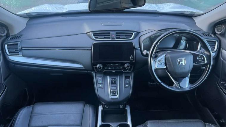 Adaptive cruise control, Agile handling assist, BLIS (Blind Spot Information System) with dual power heated blind spot mirrors, Bluetooth hands free telephone connection, E-call, Economy mode, Electric power steering, Emergency stop signalling system, Forward collision warning, Front parking sensors, Honda CONNECT with GARMIN Navigation + 7" touchscreen, DAB radio, Apple CarPlay, Android Auto, Aha app integration and internet browsing, Intelligent multi info display, Lane departure warning system, Lane keep assist system, Low speed following, Rear parking sensors, Rear view camera, Road departure mitigation, Speed limiter, Traffic sign recognition, Vehicle stability assist, 2 USB sockets in rear, 2x USB sockets in front, 9 speakers, DAB Digital radio, Dashboard centre speaker, Front tweeters, Steering wheel mounted controls, Subwoofer, Aspheric door mirrors, Auto dimming rear view mirror, Automatic headlights with dusk sensor, Body colour bumpers, Body colour door handles, Cornering light, Door mirrors tilt when reversing, Electric front windows/one touch facility, Electric rear windows + one touch facility, Electrically adjustable and heated door mirrors, Electrically retractable door mirrors, Front windscreen de-icer, High beam assist, LED daytime running lights, LED front fog lights, LED Headlights, LED rear lights, Rain sensor, Rear privacy glass, Rear side wing doors, Rear wiper, Roof rails, Shark fin roof aerial, Tailgate spoiler, Third brake light, Welcome home function, 3 seat bench in 2nd row, 60/40 split folding rear seat, Accessory sockets, Ambient interior lighting, AWD emblem rear, Cargo hooks, Courtesy lights, Driver's electric adjustable lumbar support, Driver/passenger front seatback pockets, Driver/passenger sunvisors with illuminated vanity mirrors, Dual zone automatic climate control, Electric lumbar adjustment on passenger's seat, Footwell ambient lighting, Front centre armrest, Front map lights, Front passenger seat height adjust, Heated front seats, Height adjustable driver's seat, Hybrid emblem, Illuminated glovebox, Instrument panel with garnish wood film, Isofix child seat preparation, Leather steering wheel, Leather upholstery, Paddle shift controls, Rear air vents, Rear centre armrest, Rear headrests, Rear reading lights, Rear seat conversation mirror, Silver interior door handles, Single front passenger seat, Sunglasses holder with mirror, Tilt/telescopic adjustable steering wheel, Tonneau cover, Trunk light, 5 x 3 point seatbelts, ABS/EBD, Anti-whiplash front headrests, Brake assist function, Collision mitigation braking system, Deflation detection system, Driver airbag, Electronic parking brake with auto hold, Front and rear curtain airbags, Front and rear seat belts with emergency locking retractor (ELR), Front side airbags, Hill start assist, Manual child lock in rear doors, Passenger airbag deactivate switch, Honda super locks, Immobiliser, Security alarm, Smart entry + Smart start, Ultrasonic security sensor, Tyre repair kit,