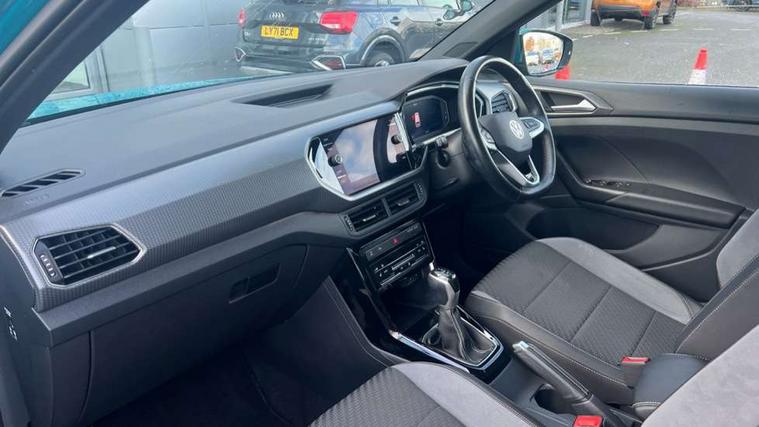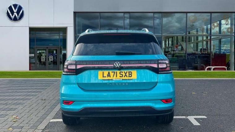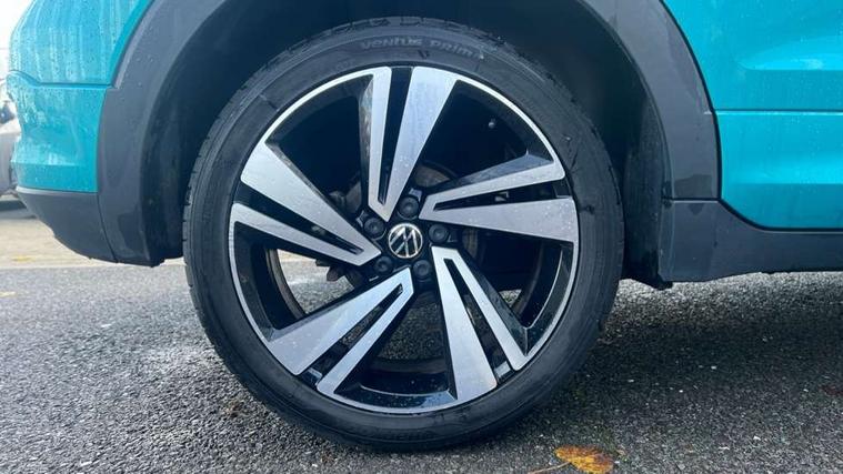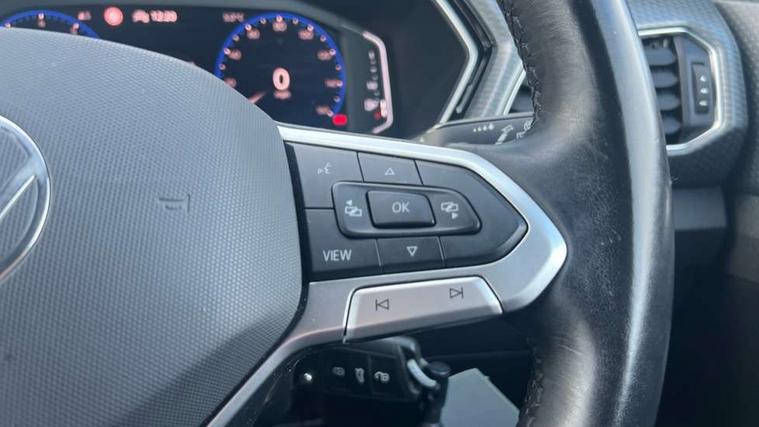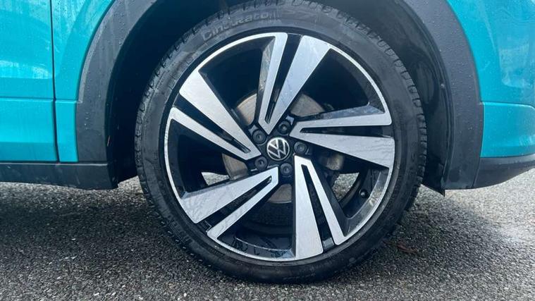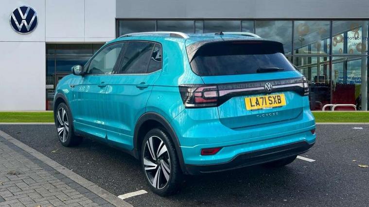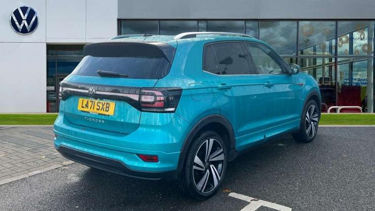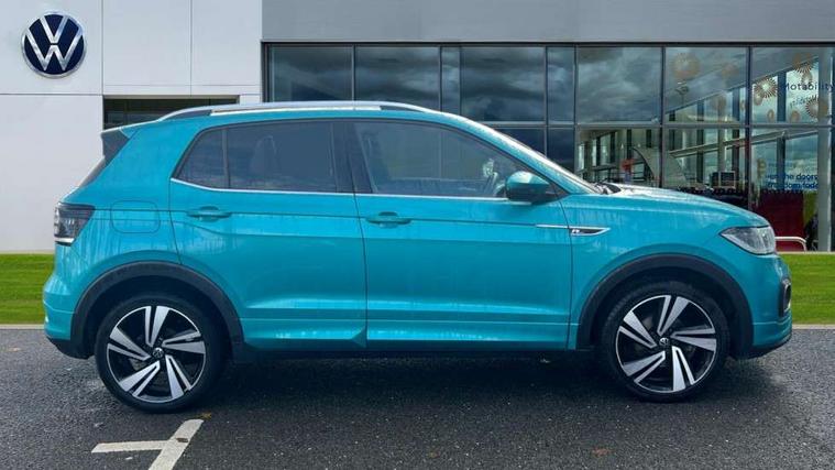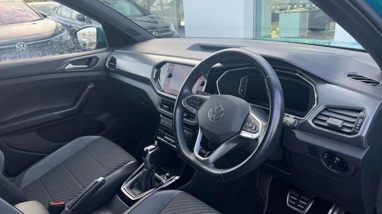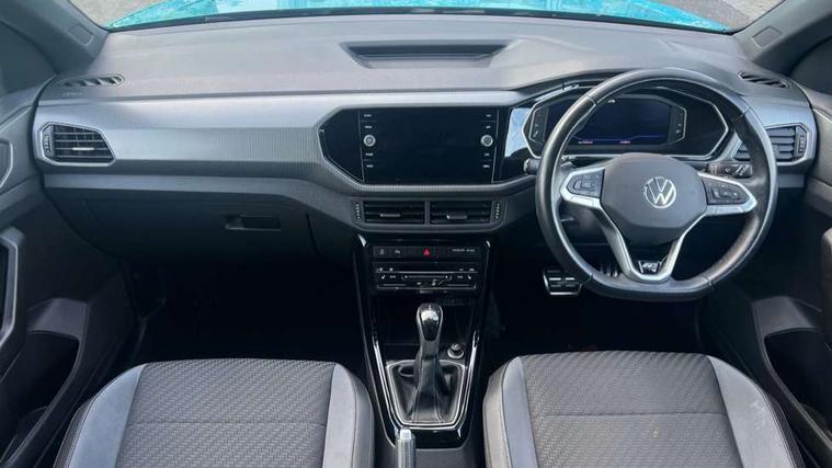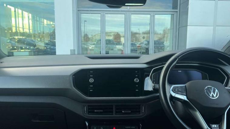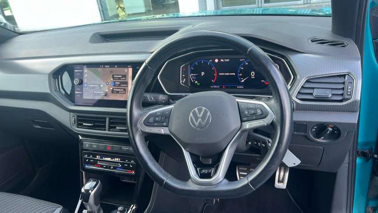'Lights On' Reminder warning buzzer, 2D/3D map view, Adaptive cruise control including front assist, forward collision warning, autonomous emergency braking, speed limiter, Blind spot monitoring, Bluetooth telephone and audio connection for compatible devices, Car information display, Digital Cockpit Pro - Active info display, Driver alert system, eCall emergency call system, Lane assist, Low washer fluid warning light, Multifunction computer with visual gear change recommendation for fuel consumption, Operating permit alteration, Power assisted speed sensitive steering, Speed limit display, Speedo, rev counter, electronic odometer, trip, service interval display, exterior temperature and fuel gauge, Stop/start system, Warning sound and light for doors and tailgate open, Warning sound and light for front seatbelts unfastened, We connect plus preparation, Wireless Car net app connect with Apple CarPlay, combined functionality of Apple CarPlay/Android Auto and MirrorLink, Battery regeneration during braking, Misfuel prevention device, 2x USB connection with USB charging sockets and in rear centre console, DAB Digital radio receiver, Diversity antenna for FM reception, Multi device interface (MDI) with USB connection, Music playback - MP3, WMA and AAC files, Premium USB cable for Apple or Android smartphone compatibility, Simultaneous pairing of 2 compatible mobile devices, SMS Functionality, Three route options - Fast, Short, Eco, Title and cover art display, Automatic hazard lights activation under emergency braking, Body colour door handles, Body colour door mirrors with integrated indicators, Body colour rear roof spoiler, Body coloured bumpers, Dusk sensor + automatic driving lights, Electrically foldable, adjustable and heated door mirrors with reverse activated kerb view adjustment on passenger's side, Front and rear electric windows, Front fog lights with static cornering function, Galvanised body, Heated rear window, LED third brake light, Lower door sills and door pillars in black, Radiator grille with chrome trim and chrome bezel front fog lamp, Rear fog light on one side, reversing light on both sides, Rear lights incorporating LED technology, Rear side wing doors, Rear tinted glass 65% approx light absorbing from B pillar backwards, Rear window aerial, Rear windscreen washer and wiper with interval delay, Reflectors in all doors, Silver roof rails, Stainless steel door sill protection, Tailgate with integrated roof spoiler, Unique R Line badging, Windscreen wipers/ intermittent wipe + 4 position delay, 12V Accessory socket in centre console, 2 Front and rear reading lights incorporating LED technology, 2 Zone electronic climate control with automatic air recirculation, 3 rear head restraints and 3 rear three point seat belts with ECE label, 3 seat bench in 2nd row, 60/40 split folding rear seat backrest, Ambient lighting and sourround lighting, Black headlining, Branded points of interest, Brushed stainless steel pedals, Carbon flag cloth upholstery, Drawer under drivers seat, Driver and front passenger sunvisor with vanity mirror, Driver's sunvisor with ticket holder, Dust and pollen filter, Front and rear carpet mats with contrast stitching, Front centre armrest with storage compartment, Front footwell illumination, Front seat back storage pockets, Front seat R Line logo with rear seat backrest, Front sports seat with height and lumbar adjustment, Glovebox, Heating and fresh air system with 4 stage blower, Height/reach adjust steering wheel, Instrument lighting white adjustable panel illumination, Interior light with delay, Isofix child seat preparation for 2 rear child seats, Leather trimmed three spoke multifunction steering wheel with contrast stitching and aluminium inserts with R Line logo, Luggage compartment cover, Luggage compartment lighting, Moveable and foldable Rear bench seat, Scuff plates in door apertures, Single front passenger seat, Steering wheel paddle shift, Storage compartment in drivers and front passengers door, Variable boot floor, R Line styling pack - T-cross, Anti-lock Braking System (ABS) with Hydraulic Brake Assist (HBA), Automatic post collision braking system, Driver and front passenger safety-optimised head restraints, Drivers and Front Passengers airbags with front passengers airbag deactivation switch, ESC with EDL, ASR, EDTC and trailer stabilisation function, Extended and proactive pedestrian protection, Front and rear curtain airbags, Front seat side impact airbags, Height adjustable 3 point automatic front seatbelts with pretensioners, Hill start assist, Pre crash preventive occupant protection, Rear door child safety locks, Rigid safety cell with front and rear crumple zones, Single torn horn, Tyre pressure loss indicator, Volkswagen roadside assistance, Alarm with interior protection and deactivation via infotainment system, Child security locks in rear doors, Electronic engine immobiliser, Remote tailgate unlocking using key fob, Race decorative inserts in dash and doors, 18" Nevada black alloy wheels, Breakdown kit,