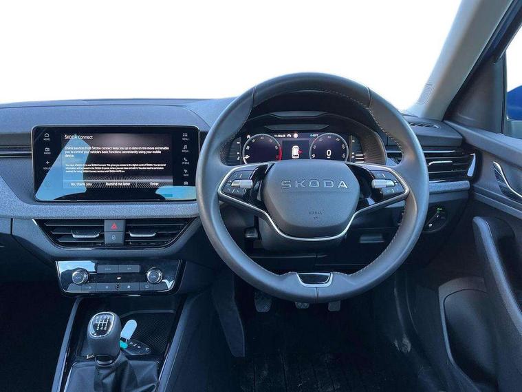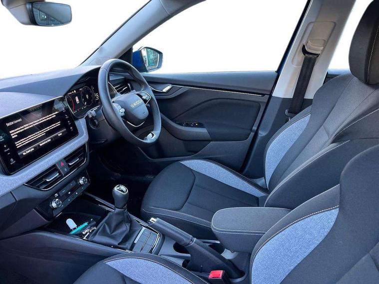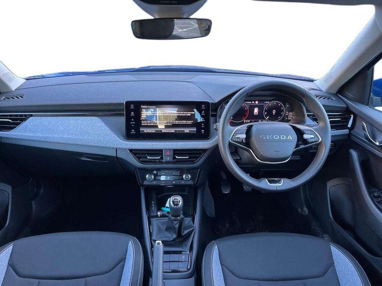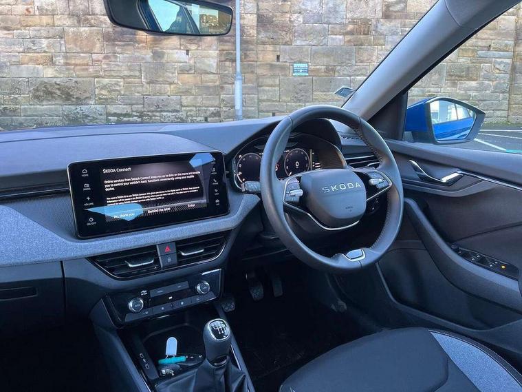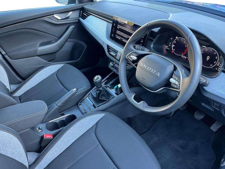 Advanced driver attention and drowsiness monitor, Bluetooth system, E-call, Front assist system, PAS, Rear parking sensors, Rear view camera, Service indicator, Speed limiter, Traffic sign recognition, Virtual cockpit with 10.25" display, Voice control system, Wireless smartlink, 4 USB C ports, 8 Speakers, 9.2" Skoda navigation display, DAB Digital radio, Auto dimming rear view mirror, Automatic headlight control with coming home and leaving home feature, Black roof rails, Body colour bumpers, Body colour door mirrors and handles, Chrome grille surround, Front and rear electric windows, Full LED headlights, Heated rear window, LED brake lights, LED daytime running lights, LED front turning lights, LED high beam, LED low beam, LED third brake light, Rear LED fog light, Rear side wing doors, Rear wiper, Ticket holder inside windscreen, 12V socket in luggage compartment, 3 seat bench in 2nd row, Black hotstamping, Cargo elements, Chrome inner door handles, Driver and passenger sun visors with vanity mirror, Dual zone climate control, Front and rear roof lights, Front centre armrest, Front head restraints, Glove compartment with illumination, Height adjustable driver seat, Height adjustable front passenger seat, Ice scraper, Inner circulation control with pollen filter, ISOFIX on front passenger seat, Isofix preparation for back seats, Krepp recycled decor inserts, Leather gearknob and handbrake lever, Loft cloth upholstery, Manual lumbar support for front seats, Net package and top tether hooks in boot space, Net under rear shelf, Overhead glasses storage compartment, Pocket on the back of both front seats include mobile phone pockets, Rake/reach adjustable steering wheel, Reading lights, Satin black door inserts, Single front passenger seat, Textile floor mats, Third rear headrest, Top tether for front passenger seat, Umbrella in driver's door, 3x3 point rear seatbelts, Airbags - driver and front passenger, Disc brakes, ESP, Extended and predictive pedestrian/cyclist protection, Front passenger airbag deactivation switch, Front side airbags with curtain airbags, Hill hold control, Manual leather parking brake, Manual rear child locks, One tone horn, Seatbelt reminder for driver an co-driver, Traction control, Tyre pressure monitor, Anti-theft alarm system with interior monitoring, backup horn, towing protection and remote central locking with SAFE system, Anti-theft wheel bolts, Electronic engine immobilizer,