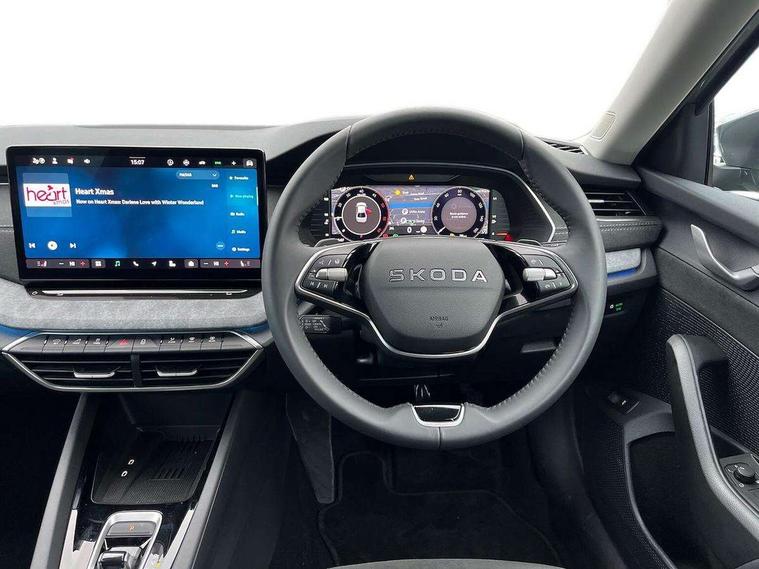 1x USB Typc C port in rear view mirror, 4x USB Type C ports - 2x in front centre console and 2x in rear (45W), Drive mode selection, Driver fatigue sensor, eCall emergency system, Electro-mechanical power steering, Front assist system, Traffic jam assist, Traffic sign recognition, Turn Assist, Virtual Cockpit - 10.25" digital display, Voice control system, Wireless charging (15W) with cooling function, Wireless SmartLink for Apple CarPlay and Android Auto, 13" touchscreen display with navigation, DAB Digital radio, Aero front windscreen wipers with intermittent function, Auto dimming rear view mirror, Body colour bumpers, Body colour door mirrors and handles, Chrome grille surround, Chrome strip in lower front bumper, Chrome window surrounds, Electric front and rear windows, Heated rear windscreen, High level third brake light, Ice scraper in fuel cap, LED daytime running lights, LED Headlights, Logo projection in front doors, Rain and light sensors, Rear fog light on one side, Rear privacy glass, Rear side wing doors, 12 volt socket in boot, 3 rear headrests, 3 seat bench in 2nd row, 4 foldable roof handles, Boot net programme, Electric auxiliary air heater, Front head restraints, Heated front seats, Illuminated glovebox, Interior door handles in dark chrome, Jumbo Box storage, Luggage compartment lighting x2 lights, Mechanical rear seat release from boot, Parcel shelf - folding, Single front passenger seat, Steering wheel in black leather with black stitching, Storage compartments in left and right of boot, Sun visors with mirrors, Sunglasses storage, Ticket holder, Umbrella in door panel, Unsplit rear bench seat, split folding backrest with centre armrest with cupholder, Comfort package - Octavia, 3x3 point rear seat belts, Alarm with interior monitoring, tilt sensor and back up horn, Curtain airbags and front side airbags, Driver and front passenger airbags, Drivers knee airbag, Electronic parking brake, ESC including ABS, EBV, MSR, ASR, EDS, HBA, DSR, Front central airbag, Hill hold assist, ISOFIX on front passenger seat and outer rear seats, Passenger airbag deactivate switch, Three point seat belts in front and rear, Two tone horn, Tyre pressure monitor, Visual and acoustic seat belt reminder, Warning reflectors in front door, Anti-theft wheel bolts, Keyless start/stop, Remote central locking, Chrome air vent surrounds,