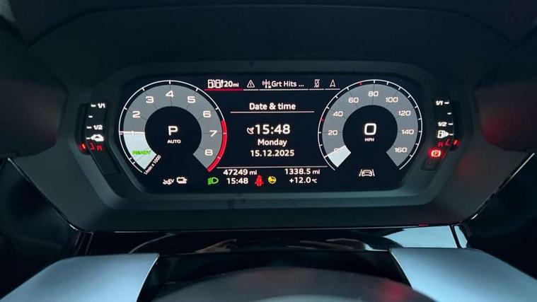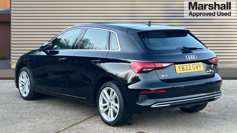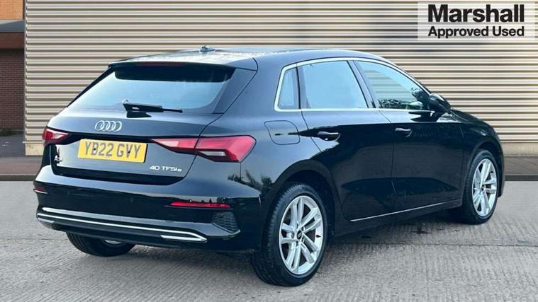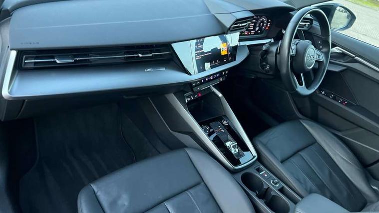 Audi drive select (Auto, Comfort, Dynamic, Efficiency and Individual), Audi smartphone interface, Audi Virtual Cockpit - 10.25" digital and colour instrument cluster, Automatic start/stop system with recuperation, Bluetooth interface, Collision avoidance assistant, e-Call (emergency call), Electromechanical power speed sensitive steering, Lane departure warning system, MMI Navigation Plus with high resolution 10.1" colour touch screen display, Service indicator, Trip computer, Voice control system with natural language interaction, 3 pin 10 amp domestic charging cable, 3.6 kw On-board charger, Standard suspension, Type 2 mode 3 32 amp charging cable, Type 2 socket for AC charging, 2xUSB-C connection with data and charging functions, 6 passive loudspeakers, DAB Digital radio, 3rd brake light, Acoustic glass windscreen, Aluminium window trim, Auto dimming frameless rear view mirror, Body colour exterior mirrors, Body colour roof spoiler, Electrically adjustable/heated/folding/auto dimming door mirrors with integrated LED indications + kerb view function for passenger side, Front electric windows, LED daytime running lights, LED headlights and halogen rear lights, Light and rain sensors, Rear electric windows, Rear side wing doors, Rear window, rear door windows and rear side windows in clear glass, Rear wiper, 12V socket and storage compartment in front centre console, 3 seat bench in 2nd row, 40/20/40 split folding rear seat bench with cupholder, Dual zone electronic climate control, Front and rear centre armrest, Front and rear headrests, Front door sill trims with aluminium inlay, Front/rear floor mats, Height and reach adjustable steering wheel, Interior lighting - Front and rear roof module including reading lights, glove compartment light and right hand side, Luggage compartment floor covering, Manual boot compartment lid, Manually adjustable front seats, Seat side bolsters, Single front passenger seat, Steel grey cloth headlining, Twin leather upholstery, Aluminium interior elements pack - A3 Sportback, Sport styling pack - A3 Sportback, 3x3 point rear seat belts, Audi pre sense front, Driver and front passenger airbag with passenger airbag deactivation, Electronic Stabilisation Control (ESC) including ABS, ASR and EDL, First aid kit with warning triangle and 2 safety vests, Front side airbags with head airbags and interaction airbag, Pre-sense front with pedestrian and cyclist detection, Seatbelt monitoring, Tyre pressure loss indicator, Anti theft alarm, Anti-theft wheel bolts, Immobiliser, Manual child locks, Remote control central locking, Inlays with silk effect paint in platinum grey, Tool kit, Tyre repair kit,