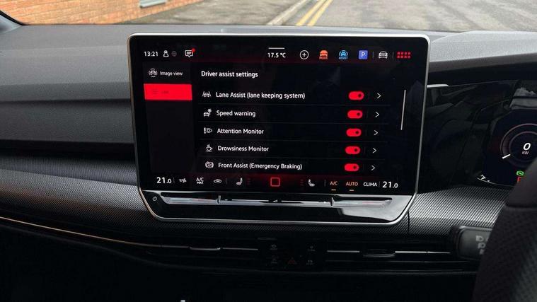 Activated carbon canister, Adaptive cruise control (ACC), Advanced driver attention and drowsiness monitor, Dynamic road sign display, E-Sim card for online connectivity, eCall emergency call system, Multi-color Digital cockpit pro, selection of different info profile possible, Multifunction front facing camera for distance control, Navigation system, Oncoming vehicle braking when turning including swerve support, Side assist blind spot lane change system, rear traffic alert and exit warning system, Speed limiter, Speedo, rev counter, electronic odometer, trip, service interval display, exterior temperature and fuel gauge, Traffic jam assist, Voice enhancer and voice control, Warning signal and warning light for front and rear seatbelts not fastened, We connect plus preparation, We connect preparation, Wireless app connect, Front differential lock, Petrol Particulate Filter, Start-stop system with battery regeneration (recuperation - energy recovery during braking), 2 USB C ports in front, 2 USB charging sockets on the centre console in the rear charging capacity upto 45W, Digital radio reception (DAB), Diversity antenna for FM reception, Gaming platform via car app, Infotainment system with 12.9" display, Mobile phone interface with inductive charging feature, 3rd brake light, Auto dimming rear view mirror, Automatic headlamp activation with Coming home and Leaving home feature, Body colour door handles, Body coloured bumpers, air intake in honeycomb structure, Exterior mirrors convex on the left and aspherical on the right, Front and rear electric windows, Front fog lamps and cornering light, Heat insulating windshield made of laminated glass, Illuminated lighting animation with wake up/goodbye scenario, LED separate daytime running light, Nameplate 'GTI' set, Rain sensor, Rear exhaust tailpipe, Rear fog light on one side and reversing lights on both sides, Rear side wing doors, Rear windscreen washer and wiper with interval delay, Remote electrically foldable door mirrors, puddle lights and reverse activated passenger's door mirror, Welcome light with surround lighting, 12V socket in front centre console, 12V socket in luggage compartment, 3 rear head restraints, 3 seat bench in 2nd row, 30 colour ambient lighting, illuminated center console storage compartment in front, Air care climatronic 3 Zone automatic climate control with rear air conditioning control panel, Aluminium gearshift handle, Brushed stainless steel pedals, Chrome plated radiator grille inserts, air vent surrounds and light switch surrounds, Entry lights, Front + rear black carpet mats, Front centre armrest, ISOFIX anchors for child seats on outer rear bench seats and on front passanger seat compatible for i-Size, Luggage compartment lighting, Rear cupholder and loadthough, Single front passenger seat, Soul black instrument panel, Soul black roof lining, Split folding backrest with centre armrest and unsplit rear seat bench, Sun visors with illuminated vanity mirrors, Driver assistance pack - Golf Estate/Hatchback Auto, Technology park and comfort pro package - Golf Hatchback, 3 point height adj front seatbelts + pretensioners, 3 rear three point seatbelts, ABS, Autonomous emergency braking front assist with pedestrian and cyclist monitoring, Child locks on rear doors, Driver and front passenger airbag with front passenger airbag deactivation, Electronic parking brake with auto hold, ESC (Electronic Stability Control), Extended pedestrian protection measures, Hill start assist, Rear disc brakes, Two tone horn, Tyre pressure loss indicator, Volkswagen roadside assistance, Anti theft wheel bolts, Preparation for alcohol interlock, Decorative inserts carbon grey for dashboard and front door trim panels, Sporty vehicle dynamics, Tool kit for tyre mobility set, Tyre mobility kit Includes 12V compressor and tyre sealant,
