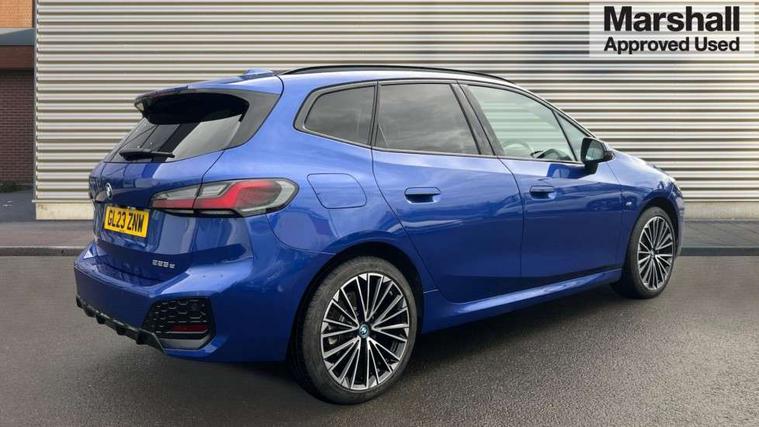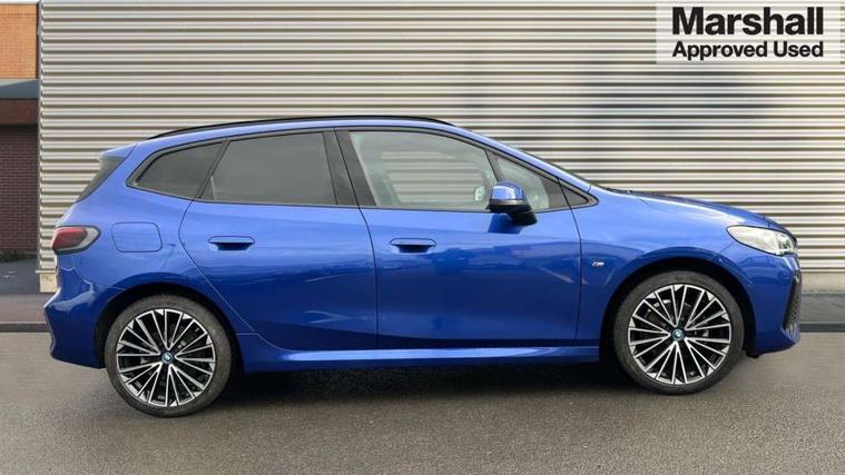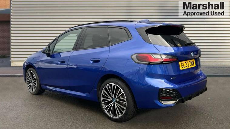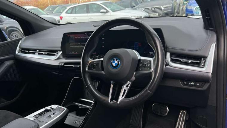 Active Guard, Attentiveness assist, Automatic powered tailgate, Automatic start/stop function, BMW Online services, BMW Operating system 9 with BMW Maps, real-time traffic information, in-car experiences, remote services and smartphone integration, BMW Teleservices, Brake pad wear indicator in front and rear, Condition based service, ConnectedDrive Services, Drive off assistant, Flat air vents on instrument panel in high gloss black, adjustable slats with elements in pearl chrome, iDrive controller, Instrument cluster with speedometer with miles per hour read out, tachometer and fuel gauge, Language version English, On board computer - average speed+fuel consumption, service interval, clock/date, odometer/trip meter, outside temperature display and ice warning, Parking assistant with active park distance control, reversing assistant, lateral parking aid and rear view camera, Servotronic variable electric power steering (EPS), Widescreen display, Wireless charging, 45 Litre fuel tank, Drive performance control with ECO PRO comfort + sport mode, eDrive exterior sound, Flexible Fast Charger (Mode 2), Gear selector switch with toggle operation, M Adaptive suspension, Mode 3 charging cable, Petrol Particulate Filter, Steptronic transmission with double clutch and gear shift paddles, 2x USB Type C ports in front centre console for charging and data transfer, 2x USB Type C ports in rear centre console for charging, DAB Digital radio, Welcome sound upon opening of the front driver or passenger door, Air inlet middle part on front apron in lines specific design with trim strip in satinised aluminium, Automatic headlights, Black rear bumper trim strip, BMW emblem, engine compartment lid and tailgate, Body colour roof mouldings, Body coloured door mirror caps, Contoured rear spoiler in vehicle colour with side aeroblades in black high-gloss, Driver side exterior mirror lighting with BMW logo projection, Dynamic brake lights, Electric adjustable heated door mirrors, Electric windows - front and rear, with open/close fingertip control, anti-trap facility and comfort closing, Folding door handles integrated flush with surface, Front and rear windscreen wipers with heated front washer nozzles, Front bumper cover with independent design in body colour with inserts in black high gloss, Front bumper design elements in satinised aluminium, Front door sill finishers aluminium inserts with M inscription, Front entry sills with aluminium inserts + BMW inscription, Front oramental grille with radiator grille bars in satinised aluminium, Heated rear window, Hidden exhaust pipe, High gloss shadow line, Home light, Key with M identification, LED Daytime running lights and parking lights with turn indicators, LED number plate light, LED third brake light in rear spoiler, M identification on sides, Manual headlight range control, Model inscription on right tailgate, Rain sensor, Rear bumper cover with independent design in body colour with inserts in black high gloss, Rear side wing doors, Shark fin antenna, Side sill covers with independent design in Body colour, Trailer stabilisation logic, Trims on front and rear bumper covers colour-coordinated with side window graphic, Visible VIN plate, Welcome lighting, Windscreen washer nozzle for rear view camera, 12V power socket in luggage compartment and front centre console, 12V socket in right side trim panel, 2 bag hooks in luggage compartment, 2 front reading lights, 2 open cup holders in front centre console, 3 seat bench in 2nd row, 40:20:40 split folding rear seats with backrest, Ambient lighting front and rear, Automatic two zone climate control air conditioning, Bottle trays in all doors, Child seat ISOFIX attachment for two outer rear seats and front passenger seat with anchorage points, Driver and front passenger sports seats, Embellishers on steering wheel spokes in pearl chrome, Four grab handles integrated in roof lining, Front and rear door pockets, Front and rear footwell lighting, Front and rear side armrest integrated into door trim, Front centre console storage compartment, Front door exit lights, Front head restraints, Glovebox with light, Heated front seats, Height adjustable 3 rear head restraints, Interior door handle recess light on all doors, Luggage compartment lighting, M Anthracite headlining, M specific floor mats, M sport leather steering wheel, Manual adjustment of seat height, fore/aft position, seat depth, backrest tilt and head restraint height, Map pockets, Mechanical rear seats with fore/aft adjustment, Middle centre console storage compartment, Multi-function controls for steering wheel, One piece parcel shelf opens together with tailgate and removable, Rear cloth hooks, Single front passenger seat, Stainless steel pedals, Steering wheel column manual adjustment, Storage compartment lighting in centre console and storage tray in centre stack, Storage compartment net in left side trim panel, Storage compartment with folding cover under centre console armrest cushion, Sunvisors with illuminated vanity mirrors, 3 point seatbelts on all seats, front pyrotechnic belt tensioners, stopper and belt force limiters, rear coded belt buckles, Acoustic protection for pedestrians, Airbag - Front driver and passenger, front and rear head, front side, curtain head protection, manual deactivation of front passenger airbag possible, Anti lock braking system (ABS) with brake assist, Automatic hold function, BMW emergency call, Brake drying, Braking readiness, Child proof locking system in rear door, Cornering brake control, Crash Sensor - activates hazard/interior lighting + unlocks doors, DSC - Dynamic Stability Control, Dynamic brake control, Dynamic Traction Control - DTC, Electromechanical parking brake, Energy recovery system, Front disc brakes, Integrated braking system, PC iBrake PostCrash approach control warning with light braking function, Rear disc brakes, Tyre pressure monitoring system, Warning triangle and first aid kit, Anti theft alarm 