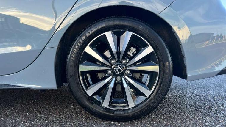7" Multi information display screen, Adaptive cruise control, Adaptive motion for electric power steering, Adjustable speed limiter, Agile handling assist, BLIS (Blind Spot Information System) with Cross Traffic Monitor, Bluetooth hands free telephone connection, Driving modes, Economy mode, Electric power steering wheel with variable gear ratio steering, Emergency call service, Emergency stop signalling system, Forward collision warning, Front and rear parking sensors, Honda CONNECT with Navigation 9" touchscreen, AM/FM/DAB, Apple Carplay and Android Auto, live traffic info, Honda sensing, Idle stop, Intelligent speed limiter, Lane departure warning system, Lane keep assist, Low speed following, Power meter, Rear parking camera, Road departure mitigation, Tailgate, Traffic jam assist, Traffic sign recognition, Wireless apple carplay, Vehicle stability assist, 'Shark fin' mobile antenna, 2x USB Front socket (1 data & 1 charge), 8 Speakers, Digital Audio Broadcast (DAB) Tuner, Front tweeters, Steering wheel mounted audio controls, Aspherical driver door mirrors, Auto headlight adjuster, Auto headlights, Automatic coming/leaving home lighting function, Automatic rain sensing wipers, Body colour door handles, Chrome window garnish, Electric adjustable heated door mirrors, Electric front and rear windows, Electrically folding door mirrors, Headlight extension black, High beam assist, High level LED brake light, LED daytime running lights, LED front turn type, LED Headlights, LED rear lights, Material finish grille, Pop up hood, Privacy glass, Rear side wing doors, Rear wiper, Single hidden exhaust pipe, Variable front intermittent wipers, 3 seat bench in 2nd row, 60/40 split folding rear seat, Cargo accessory power socket, Cargo net hooks, Driver and front passenger seat armrests, Driver's electric lumbar adjustment, Driver's seat height adjustment, Dual climate control air conditioning system, Fabric upholstery, Front accessory power socket, Front map lights, Front/rear courtesy lights, Glovebox light, Heated front seats, Hybrid emblem, Isofix points/i size, Leather steering wheel, Meter Illumination white, Passenger seat back pocket, Platinum chrome interior door handles, Rear head restraints, Rear reading lights, Rear seat centre armrest, Single front passenger seat, Sunvisors with illuminated vanity mirrors, Tilt/telescopic adjustable steering wheel, Tonneau cover, Trunk light, USB Rear number 2 x charge, White ambient roof light, 3x3 point rear seatbelts, ABS+EBD+Brake assist, Airbags - driver and front passenger, Airbags - Knee (AS), Airbags - Knee (DR), Anti-whiplash front headrests, Brake hold function, Collision mitigation braking system, Collision mitigation throttle control, Deflation detection system, Driver SRS airbag (single stage inflation), Electronic parking brake with auto hold, Front and rear curtain airbags, Front and rear seat belts with emergency locking retractor (ELR), Front centre airbag, Front side airbags, Hill start assist, Low speed brake system, Manual child lock in rear doors, Passenger airbag deactivate switch, Rear airbags, Regenerative braking/deceleration paddle control, Immobiliser, Mirrors and windows key fob, Remote central locking with 2 jack knife keys, Security alarm, Selectable door unlock, Smart entry + Smart start, Superlocking, Tilt sensors, Ultrasonic security sensor, 17" 2 tone diamond cut alloy wheels, Tyre repair kit,