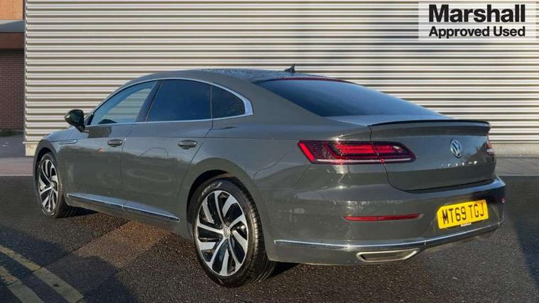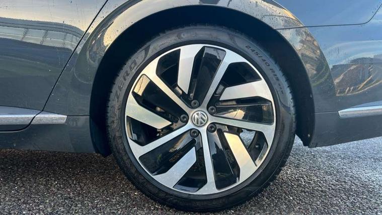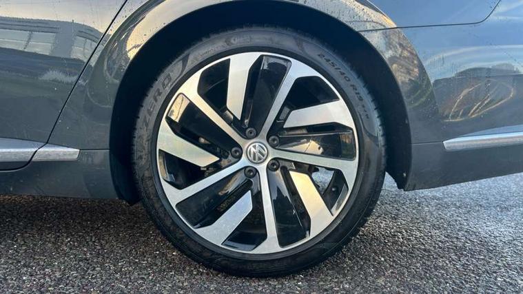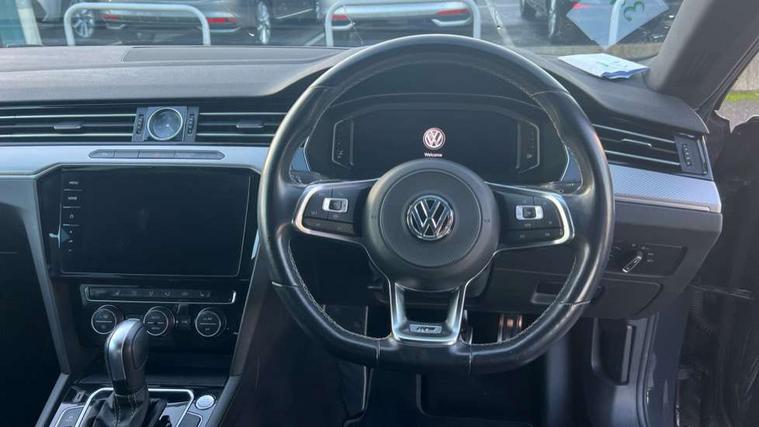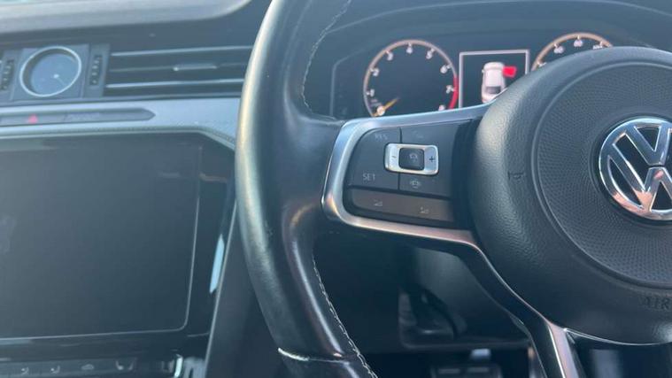 'Lights On' Reminder warning buzzer, 2D/3D map view, 8" touch screen, Active Info display 12.3" high resolution TFT dash display with customisable menu and information, Adaptive Cruise Control with pedestrian detection and speed limiter, Analogue clock in the dasboard, Bluetooth telephone and audio connection for compatible devices, Car-Net Security and Service, Discover pro navigation, Driver alert system with fatigue detection, Driver profile selection, Front Assist with radar sensor controlled distance monitoring system, Lane assist, Press and drive key, Progressive steering, Remote boot unlocking, Speedo and rev counter, electronic odometer, trip, service interval display and fuel gauge, Start/Stop function, Streaming and internet, Think blue trainer driver tips and journey analysis, Voice control system, Warning sound and light for doors and boot lid opening, Warning sound and light for front and rear seat belts if unfastened, We app connect, Battery regeneration during braking, Part galvanised body, CD/MP3/WMA and SD card reader, DAB Digital radio, MDI with USB/iPod connection cables, Premium USB cable in choice of either Apple or Android smartphone compatibility, SMS functionality - read, compose and send SMS messages using touch-screen display, Title and cover art display, USB interface 3.0 with type C, Advanced high beam control, Auto dimming interior rear view mirror, Automatic coming/leaving home lighting function, Automatic hazard lights activation under emergency braking, Automatic headlights with dusk sensor, Body colour door handles, Body coloured door mirrors with integrated indicators, Chrome side window surrounds, Chrome trim headlights extending into the radiator grille, Chrome trim on radiator grille louvres, Door sill protector, Dynamic cornering lights, Dynamic light assist, Electric adjust/heated/foldable with auto dimming on driver side, puddle lights on door mirror and reverse activated kerbview adjust on passenger side, Emergency release function in rear tailgate, Front and rear electric windows, Front fog lights, Gloss black spoiler, Headlight range control, Headlight washers, Heated rear window, Heated windscreen washer jets, High level 3rd brake light, LED headlights with separate daytime running lights, LED number plate light, LED tinted rear light clusters with dynamic indicators, Left and right chrome effect trapezoid dummy exhaust tailpipe surrounds, Left and right chrome trim on lower bumper, Left and right chrome trim on lower doors, R Line bading on front raddiator grille, R Line Design front bumper, R Line lettering on side fender vents, R Line logo on door sill protectors, Rain sensor, Rear tinted glass on rear side windows with 87% and rear windows with 77%, Side skirts with chrome inserts, Windscreen wipers/ intermittent wipe + 4 position delay, 12V socket in centre console storage area, 12V socket on rear of front centre armrest, 2 bag hooks in luggage compartment, 2 reading lights front and rear with interior delay and dimming function, 3 spoke leather multifunction steering wheel including paddle shift with Aluminium inserts and R-Line logo, 3 Zone electronic climate control with automatic air recirculation, 4 load lashing points in luggage compartment, 60/40 split folding rear seat with armrest, Aluminium finish interior door handles, Aluminium trim on upper and lower air vents extending across cockpit, Front + rear carpet mats, Front and rear interior lighting with delay and dimming function, Front centre armrest with storage compartment, longitudinal and height adjustable and two rear air vents, Front cupholders x 2, Front footwell ambient lighting, Front seat and rear pockets, Front seats with R-line logo on seat backrest, Gearshift paddles, Glovebox, Heated front seats, Height adjustable 3 rear head restraints, Height/reach adjust steering wheel, Illuminated vanity mirrors, Isofix child seat preparation easy fit for two outer rear seats, Jack and tool kit, Luggage compartment lighting, Nappa leather upholstery, Rear armrest with 2 cupholders, Rear load through provision with 2 cup holders in armrest when folded down, Removable luggage compartment cover, Stainless steel footrest and pedals, Storage compartment in drivers and front passengers door, Storage compartment in rear doors, Storage compartment with soft touch opening cover in centre console, Storage compartments in luggage area left and right, Titan headlining, USB charging point, 3 rear three-point seat belts with tensioners on outer seats, ABS, Active bonnet, City Emergency Braking in active traffic speeds up to 19mph, Drivers and front passengers airbags with passengers deactivation switch, Drivers and front passengers safety optimised head restraints, Drivers knee airbag, Electronic parking brake with auto hold, Electronic stability control (ESC) includes ASR, EDL, EDTC and trailer stabilisation function, Front and rear curtain airbags, Front seat side impact airbags, Front ventilated disc brakes and rear disc brakes, Height adjustable front 3 point seatbelts + pretensioners, Hill start assist, Outer rear seat side impact airbags, Pedestrian monitor, Proactive passenger protection system, Rigid safety cell with front and rear crumple zones, Two tone horn, Tyre pressure loss indicator, Warning triangle, Alarm with interior protection, Electronic engine immobiliser, Remote central locking with 2 remote folding keys, Piano black centre console, Silver Rise decorative inserts in dash and door panels, Full size alloy spare wheel,