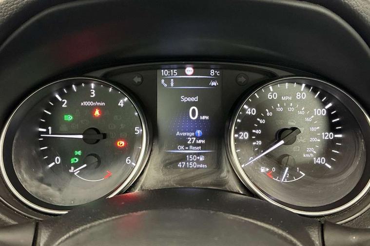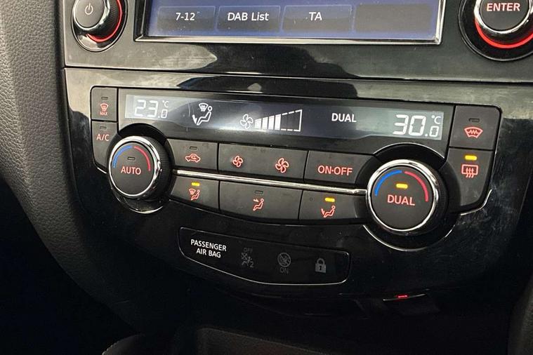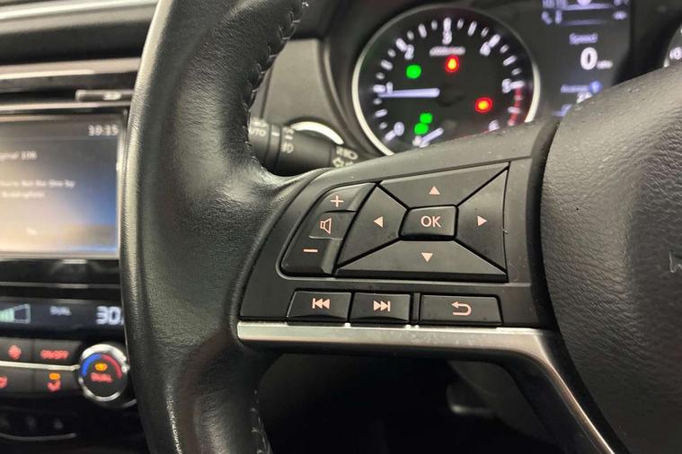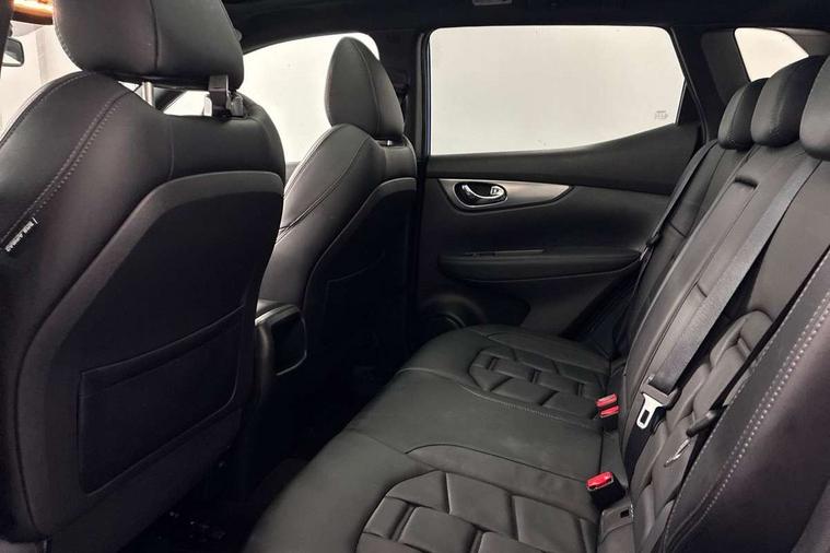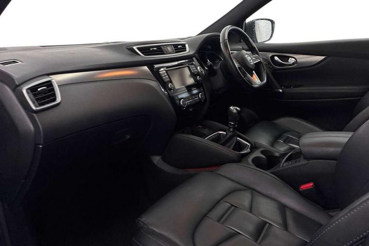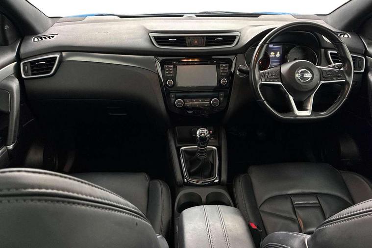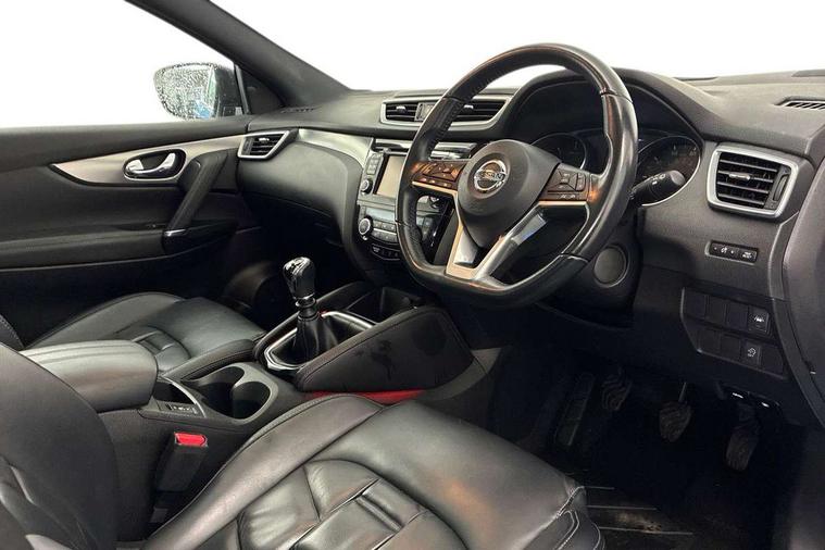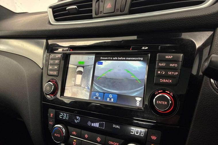 5" TFT driver information centre, Around View Monitor, Blind spot monitoring, Bluetooth phone integration system, Cruise control, Electric speed sensitive power steering, Front and rear parking sensors, Intelligent parking assist, Lane departure warning system, Nissan connect sat nav system, Outside temperature display, Push button starter, Rear view camera, Service interval indicator, Speed limiter, Traffic sign recognition, Trip computer, Diesel particulate filter, 'Shark fin' mobile antenna, Bose premium 8 speaker system, DAB Digital radio, Radio/CD, Smartphone apps, Steering wheel mounted audio controls, USB/aux input socket, Automatic headlamp activation, Body colour bumpers, Body colour door handles, Chrome window surround, Electric folding and heated door mirrors, High beam assist, Interior mirror with auto anti dazzle, LED indicators in door mirrors, One touch electric front/rear windows, Panoramic sunroof with one touch shade, Privacy glass, Rain sensor windscreen wipers, Rear roof spoiler, Rear wiper, Silver door mirrors, Silver roof rails, 2 X front 12v power sockets, 4 way lumbar support with memory function, 60/40 split folding rear seat, Ambient interior lighting, Centre console with armrest, Chrome interior door handles, Configurable luggage board system, Dark headlining, Dual zone climate control, Electric adjust driver's seat, Electric front passenger seat, Front and rear door pockets with bottle holders, Front headrests, Front seat belt pre-tensioners with load limiters, Illuminated electric window switch, Isofix child seat preparation, Leather gearknob, Leather interior door handles, Leather knee rest, Leather steering wheel, Luggage compartment lighting, Map reading lamp, Parcel shelf, Pollen filter, Rake/reach adjustable steering wheel, Rear headrests, Heat package - Qashqai, LED pack - Qashqai, ABS, brake assist and EBD, Child locks on rear doors, Curtain airbags, Driver/front passenger airbag, Electronic parking brake, ESP + traction control, Forward emergency braking, Front passenger airbag deactivation, Height adjustable front seatbelts, Hill start assist, Seatbelt warning, Side airbags, Three 3 point rear seatbelts, Tyre pressure monitoring system, Alarm, Immobiliser, Intelligent Key, Remote central locking, Graphite interior trim, Tyre puncture repair kit,