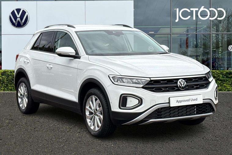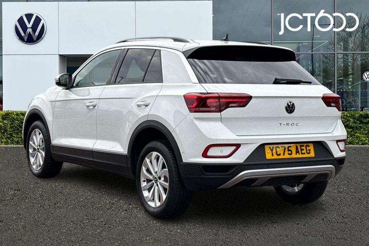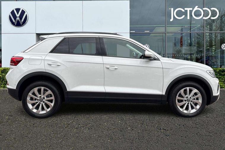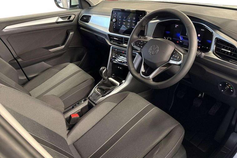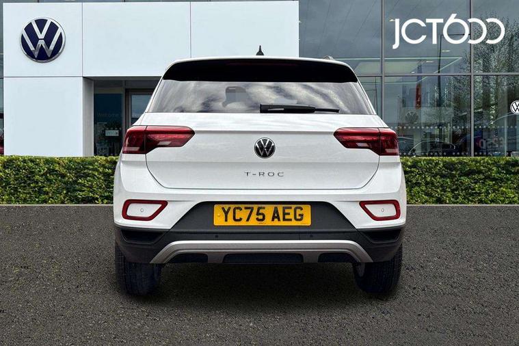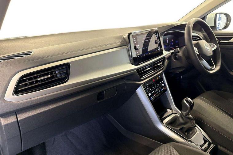 Advanced driver attention and drowsiness monitor, Dynamic road sign display, Emergency call service, Lane keeping system Lane Assist, Mobile phone interface, Modified key software - reduce switch off time for key status change to Long no motion, Online services, Park assist including front and rear parking sensors, Power assisted speed sensitive steering, Rear view camera, Service interval indicator, Tailgate/trunk lid release from outside, Think blue trainer driver tips and journey analysis, Warning sound and light for front seatbelts unfastened, Wireless app connect, Battery regeneration during braking, Front shock absorption, Rear shock absorption chassis with increased ride height, Start/stop function with battery regeneration, DAB Digital radio, Diversity antenna for FM reception, Music playback - MP3, WMA and AAC files, Premium USB cable in choice of either Apple or Android smartphone compatibility, SD card slot, Simultaneous pairing of 2 compatible mobile devices, Title and cover art display, We Connect and We Connect Plus functionality, Auto dimming interior rear view mirror, Automatic hazard lights activation under emergency braking, Automatic headlight control with LED separate daytime running lights with coming/leaving home function, Black roof rails, Body coloured bumpers and radiator grille with chrome trim and front fog lamps with chrome bezel, Body coloured exterior mirror housings and door handles, Electrically adjustable and heated door mirrors, Extended roof spoiler, Exterior mirrors aspherical on driver side, convex on front passenger side, External USB type C socket and charging sockets, Front windscreen wiper with intermittent wipe and 4 position delay, Heated rear window, LED 3rd brake light, LED rear combination lamps, LED rear number plate lights, Power windows with comfort operation and circuit breaker, Privacy glass for rear side windows and rear window, Rain sensor, Rear exhaust tailpipe, Rear fog light on one side and reversing lights on both sides, Rear side wing doors, Rear wash/wipe with intermittent wipe setting, Remote electrically foldable door mirrors, puddle lights and reverse activated passenger's door mirror, 12V power socket in centre console, 3 rear head restraints, 3 seat bench in 2nd row, 4 load lashing points in luggage compartment, Air care climatronic air conditoning system with active combination filter and 2-zone temperature control, Black stitching for floor mats, Ceramique roof liner, Cloth upholstery, Door and side trim panel in cloth, Drawer under drivers seat, Driver/front passenger seat height adjustment, Front centre armrest, Front comfort sports seats, Front cupholders x 2, Front reading light, Front seat back storage pockets, Glove compartment door with light, Instrument lighting, white adjustable panel illumination, Interior ambient lighting and surround lighting, Interior light delay, Isofix child seat preparation, Leather gearshift handle, Load-through provision with cup holder when folded down ('Unsplit rear seat bench, split folding backrest, with centre armrest), Luggage compartment lighting, Lumbar support for driver's and front passengers seat, Non-folding front passenger seat backrest, Single front passenger seat, Storage compartment in left and right luggage area, Storage compartment in rear doors, Storage compartments in driver and front passenger doors, Sunvisors with illuminated vanity mirrors, Variable boot floor, height adjustable and removable, Driver assistance pack without proactive passenger protection - T-Roc Life/Match, 3 point height adj front seatbelts + pretensioners, 3 point seatbelts in outer rear with ECE label, ABS, Child locks on rear doors, City emergency braking and pedestrian monitoring, Driver and front passenger airbag with front passenger airbag deactivation, Driver and front passenger safety-optimised head restraints, Drivers seatbelt reminder, Electronic parking brake, Electronic Stability Control (ESC) inc EDL (Electronic Differential Lock) and ASR (Traction Control), Front and rear passengers curtain airbag system including front side airbags, Front disc brakes, Hill start assist, Predictive pedestrian protection, Rear disc brakes, Two tone horn, Tyre pressure loss indicator, Volkswagen roadside assistance, Alarm with interior protection, Keyless locking and starting system keyless access with safelock, Pewter matt decorative inserts for intrument panel, centre console and door panels at the front, Trims for alloy wheels,