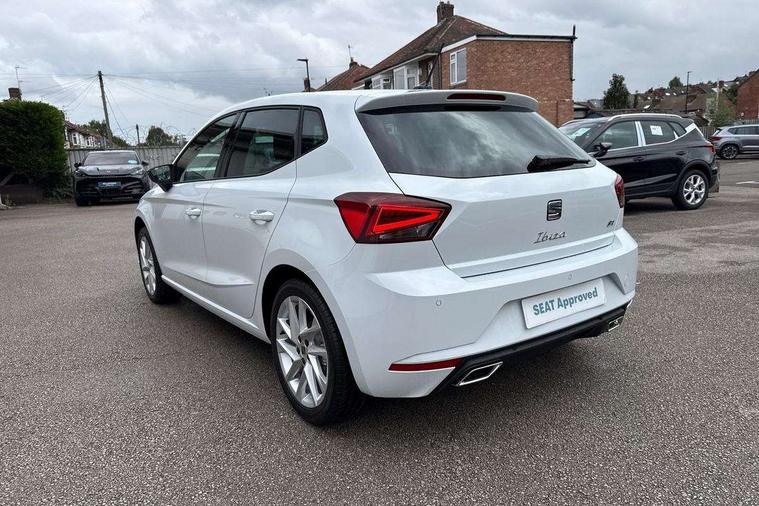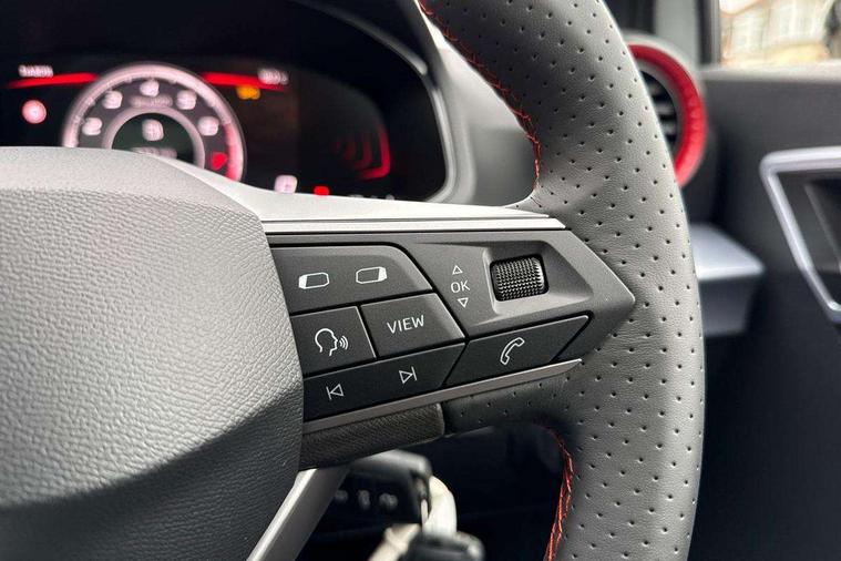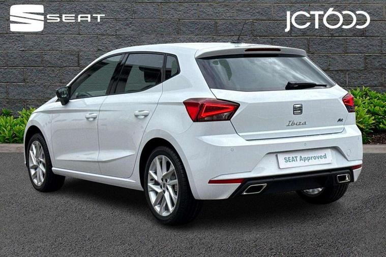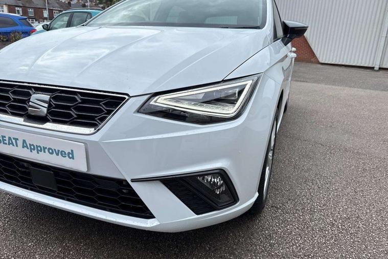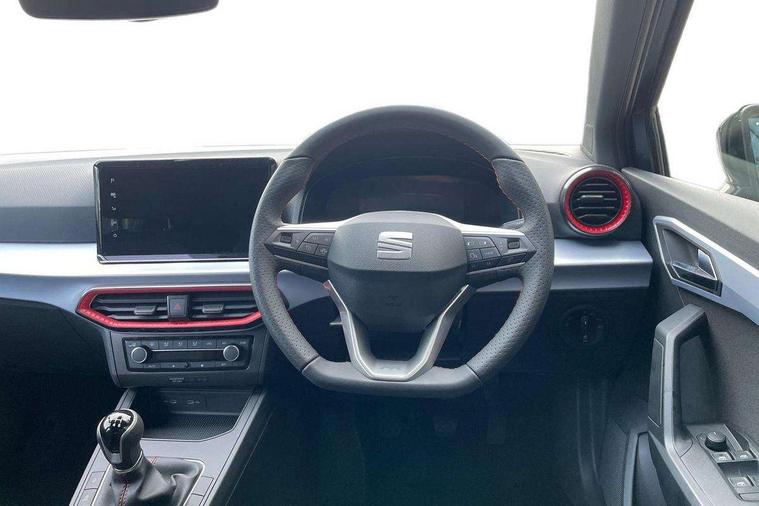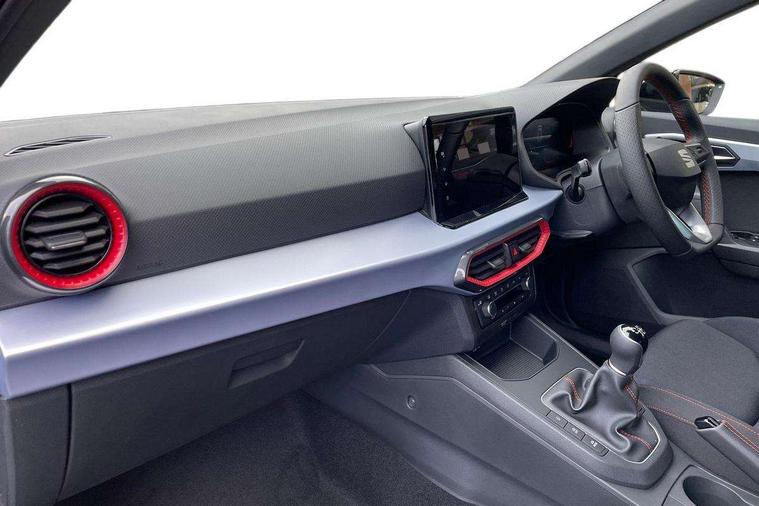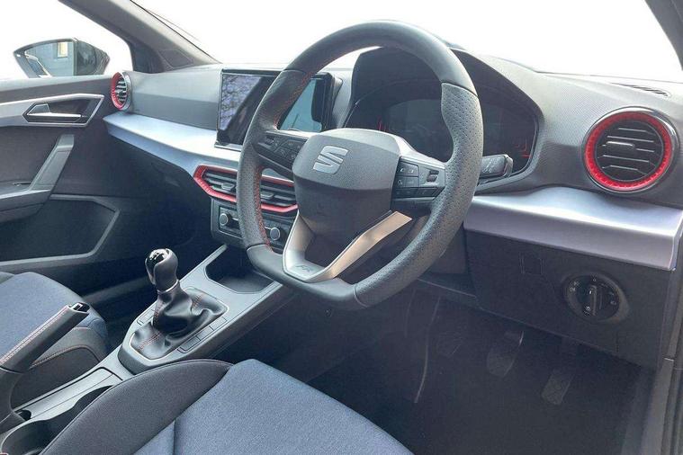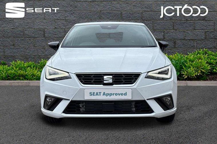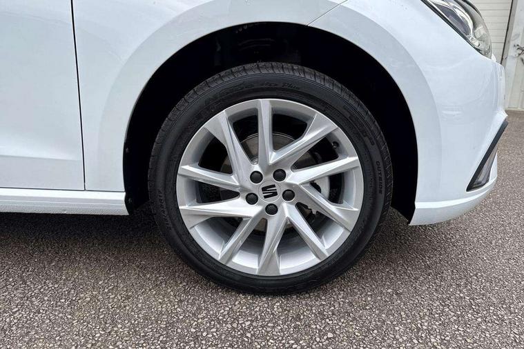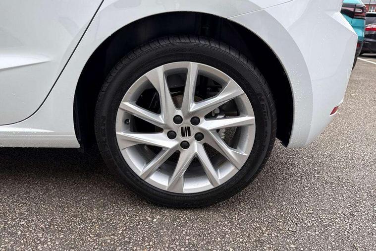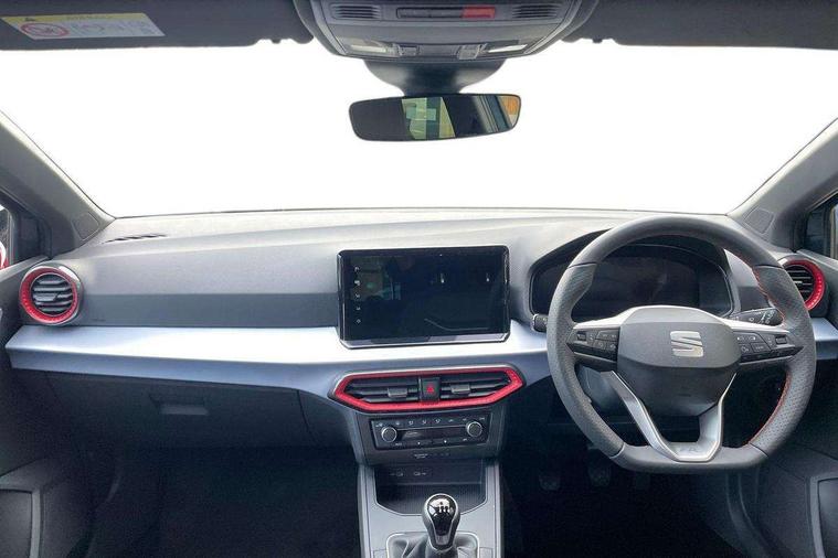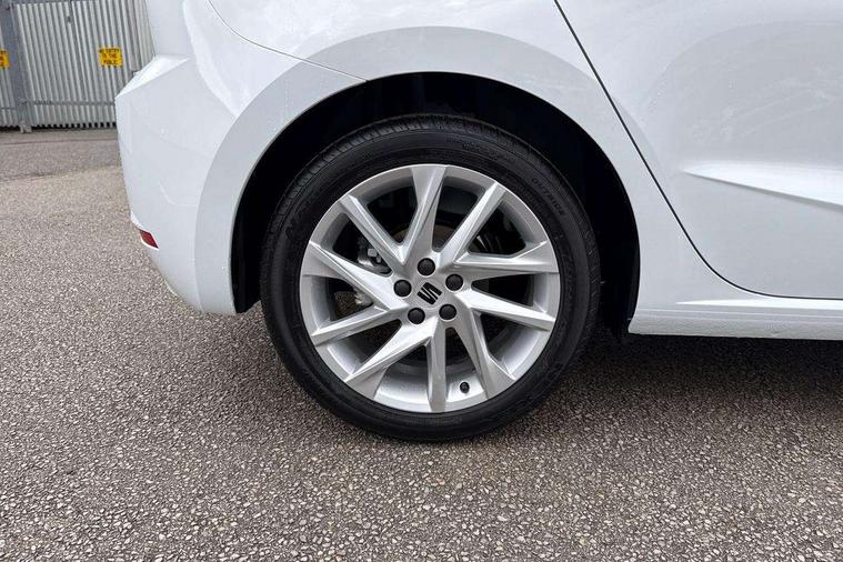 'Lights On' Reminder warning buzzer, 8" Digital cockpit, 9.2" touchscreen navigation system with type C USB socket, Voice control and DAB/AM/FM radio, Auto start and stop system, Bluetooth audio streaming with handsfree system, Digital clock, E-call, Full link smartphone integration with mirror link, wireless apple carplay, Google android auto + USB Type C cable for apple and android devices, Lane assist, Low fuel warning light, Outside temperature gauge, Power Steering, Rear parking sensor, Seat connect plus with safety, service, remote and online, SEAT drive profiles and ECO function, SEAT logo boot release, Speed limiter, Traffic sign recognition, Trip computer, Sports suspension, Auxiliary input socket, Radio/MP3 player, SD card slot, Steering wheel mounted controls, Anti theft roof antenna, Auto dimming rear view mirror, Automatic rain sensing wipers, Black door mirror caps, Body colour bumpers, Body colour door handles, Brilliant black window surrounds, Dark tinted rear windows, Electric adjustable/heated/folding door mirrors, Electric front windows, Electric headlight adjustment, Electric rear windows, Front/rear fog lights, FULL LED automatic headlights with dynamic headlight range control, coming and leaving home, LED daytime running lights, LED 3rd brake light, LED tail lights, Rear roof spoiler with FR twin exhausts, Rear side wing doors, Rear wiper, 3 seat bench in 2nd row, 60/40 split folding rear seat, Ambient interior lighting, Chrome detailing and black headlining, Cloth upholstery, Dual zone climate control with combination filter, Front courtesy lights, Front cupholders x 2, Front reading lights, Gear shift indicator, Glovebox, Height adjustable front and rear headrests (five), Height adjustable front seats, Height/reach adjust steering wheel, Illuminated air vent surrounds, Illuminated boot, Instrument lighting with brightness control, Isofix, Leather multifunction flat bottomed sports steering wheel, Passenger sunvisor, Single front passenger seat, Sports seats, Sunvisors with mirror and driver side card holder, Safety and driving pack (S) - Ibiza, 3 point seatbelts on all 3 rear seats, ABS, Active front headrests, Child locks on rear doors, Electronic stability control, Energy recovery system, Front driver and passenger side airbags with curtain airbag and front passenger airbag deactivation, Hill hold control, Multi-Collision braking, Seat belt reminder for front and rear seats, Tiredness recognition system, Tyre pressure monitoring system, Locking wheel bolts, Perimeter alarm and interior monitoring with backup horn and tow away protection, Remote central locking + deadlocks, 17" Alloy wheels in Brilliant silver,