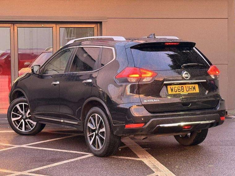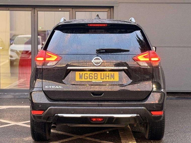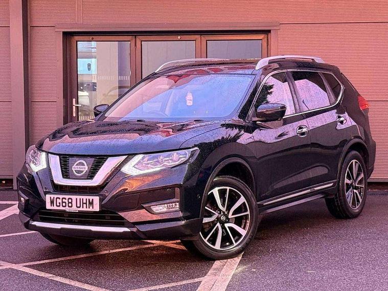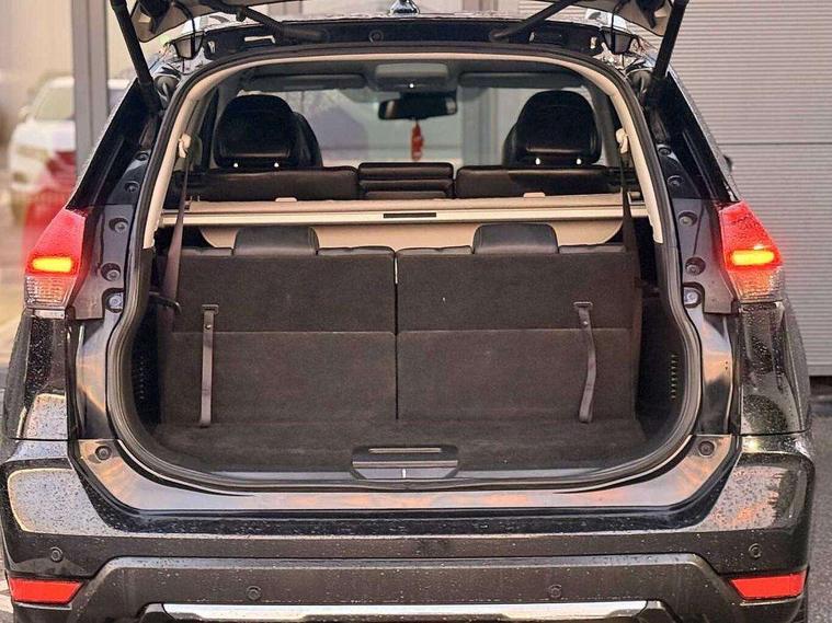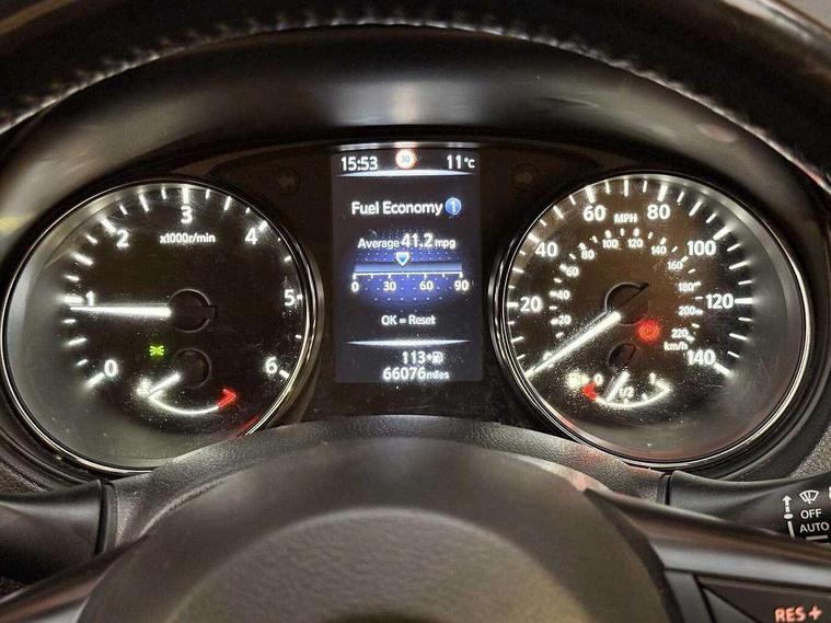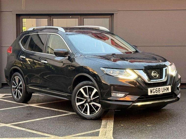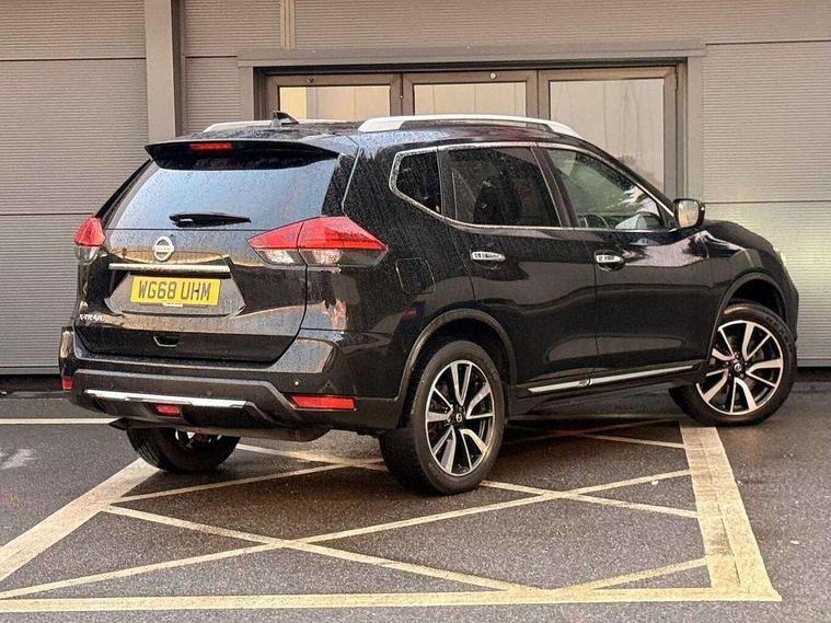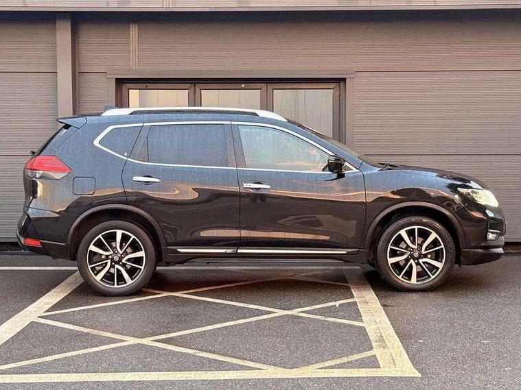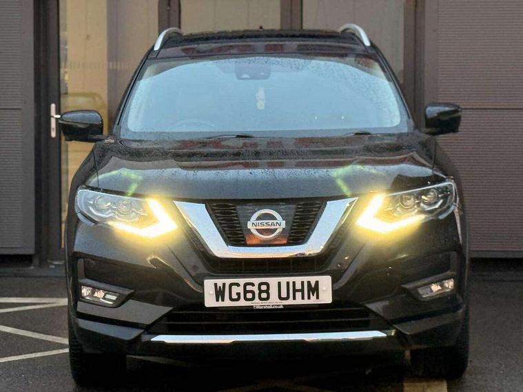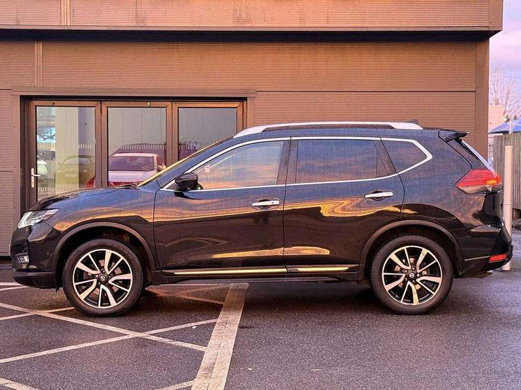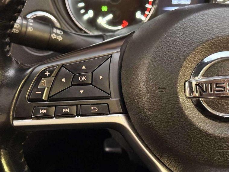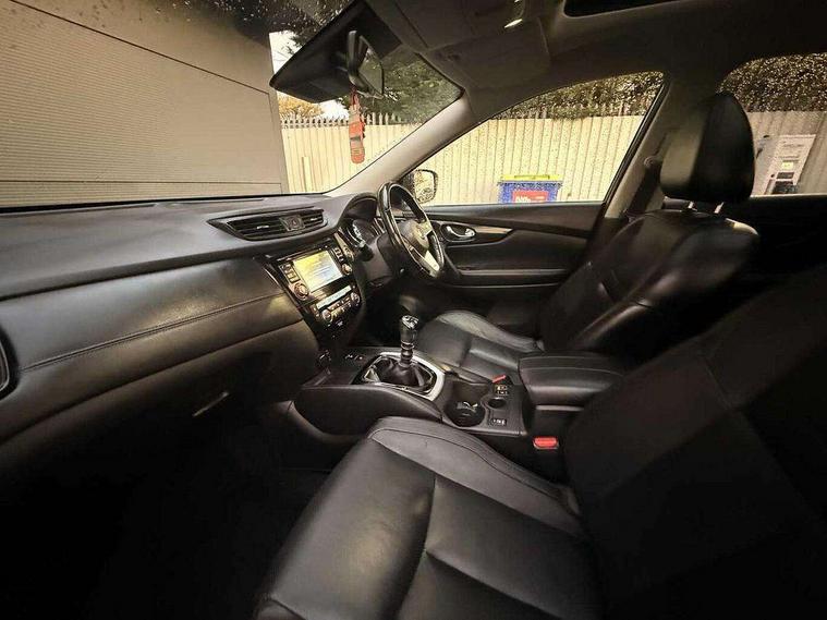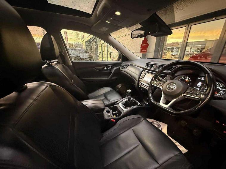 5" TFT driver information centre, Around View Monitor, Attention assist, Automatic tailgate opening, Blind spot monitoring, Bluetooth phone integration system, Cruise control + speed limiter, Engine start button, Front and rear parking sensors, Intelligent parking assist, Lane departure warning system, Moving object detection, Nissan connect sat nav system, PAS, Rear cross traffic alert, Traffic sign recognition, Trip computer, 6 speakers, Audio remote control in steering wheel, DAB Digital radio, Radio/CD, Smartphone apps, USB/aux input socket, Adaptive front lighting system, Auto dimming rear view mirror, Automatic headlights, Automatic rain sensing wipers, Black honeycomb front grille, Body colour door mirrors, Chrome door handles, Chrome side mouldings, Chrome window surround, Electric folding door mirrors, Electric heated door mirrors, Front and rear power windows, Front fog lights, High beam assist, LED daytime running lights, LED Headlights, Panoramic sunroof, Rear privacy glass, Satin silver roof rails, Shark fin roof aerial, 3 rear headrests, 60/40 split rear bench seat, Centre console storage box/armrest, Configurable luggage board system, Dual zone climate control, Electric adjustable front seats including height adjust, Front and rear door pockets with bottle holders, Front cupholders, Heated front seats, Heated rear seats, Heated steering wheel, Height adjustable front headrests, Individual rear reading lights, Isofix child seat attachment, Leather steering wheel and gear knob, Lumbar support, Pollen filter, Rake/reach adjustable steering wheel, Rear armrest, Synthetic leather instrumental panel inserts, Synthetic leather knee pad, 3 point seatbelts on all seats, ABS, Child locks on rear doors, Driver and passenger airbags, EBD + Brake Assist, Electronic parking brake, ESP + traction control, First aid kit, Front and rear curtain airbags, Hill hold assist, Intelligent emergency braking with pedestrian recognition, Seatbelt warning, Tyre pressure monitoring system, Warning triangle, Alarm, Immobiliser, Intelligent Key, Remote central locking, Full size spare wheel,